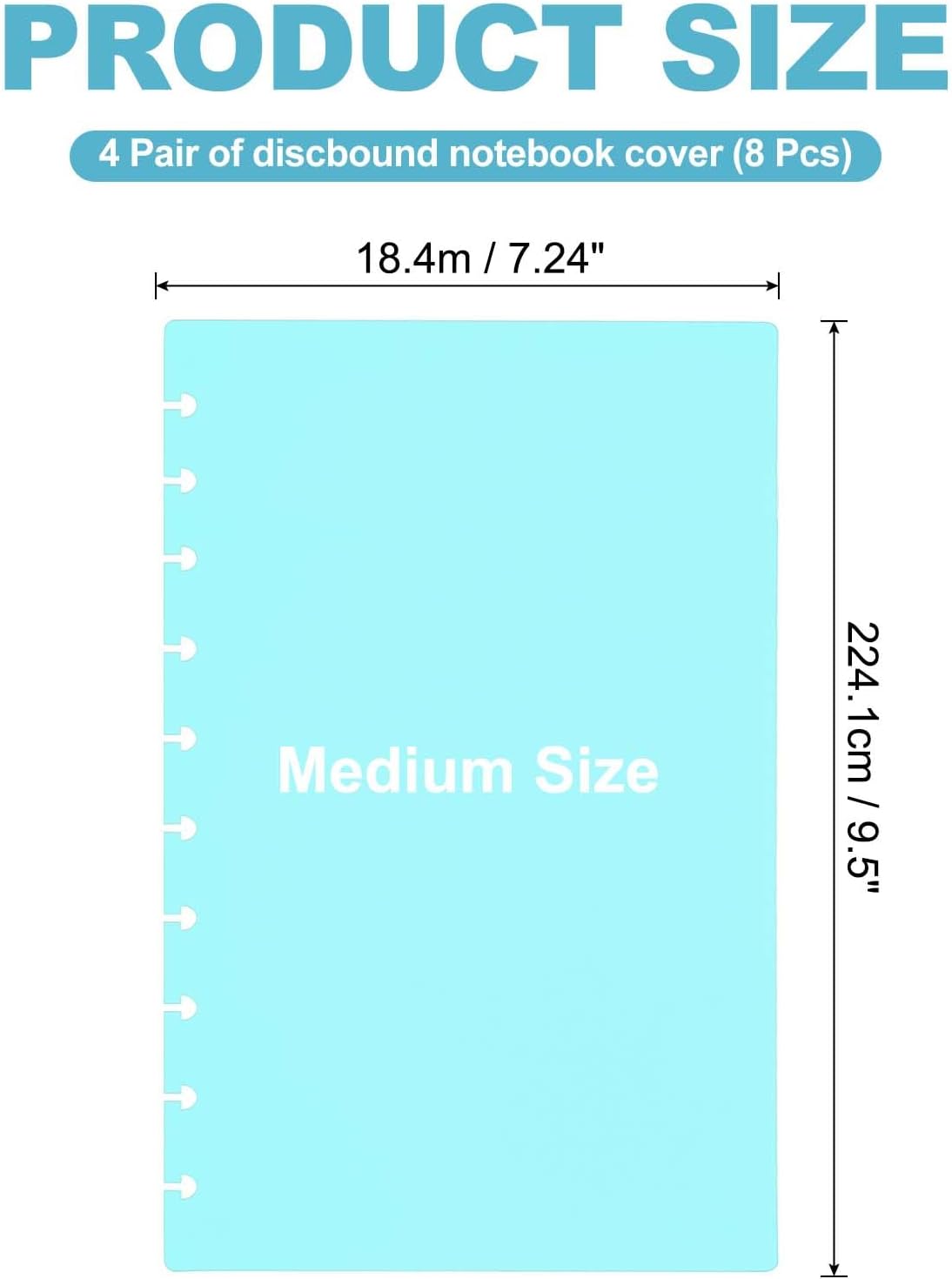 Materiale: PP; Colore: Blu Cielo; Dimensione: Media 18.4 x 24.1cm / 7.24 x 9.5inch; Lista Confezione: 4 Coppie di copertina notebook discbound (8pz) Vantaggio: Le nostre copertine per notebook discbound sono realizzate in polipropilene spesso, altamente resistente e duraturo, che può proteggere efficacemente i tuoi appunti da usura e strappi. Ogni copertina ha angoli arrotondati lisci sui bordi non perforati (in alto a destra e in basso) Istruzione: Adatto per Arc notebook e Happy Planner, notebook discbound Applicazione: Queste copertine per notebook discbound sono principalmente utilizzate per proteggere notebook e planner discbound. Hanno un aspetto sofisticato e alla moda, che può trasformare i tuoi notebook in un accessorio di moda accattivante Nota: La confezione contiene solo la copertina, non include i dischi e la carta. Si prega di scegliere la dimensione appropriata al momento dell'acquisto