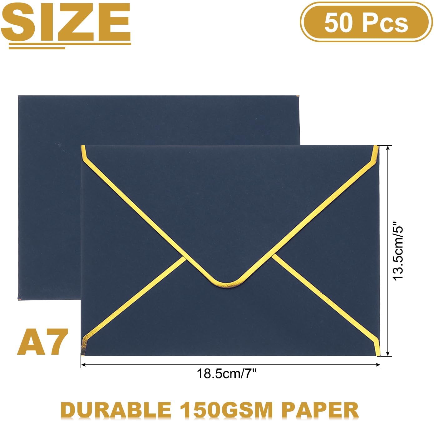 Materiale Carta Resistente 150gsm: Le nostre buste 5x7 hanno una superficie liscia e un colore vibrante per attirare l'attenzione e aggiungere eleganza, sono anche più spesse, robuste e resistenti. Riceverai 50 pezzi di buste per diversi usi, come inviti o spedizioni. BORDO ORO LUSSUSO - Il bordo in foglia oro delle nostre buste è davvero qualcosa di particolare. Il design con aletta a V aggiunge un tocco di fascino e sofisticatezza a ogni evento, facendo risaltare i tuoi inviti. Che tu stia inviando inviti di matrimonio o corrispondenza aziendale, queste buste lasceranno un'impressione duratura. Sigillatura Forte: Il bordo è progettato con aletta gommata. Aggiungi un po' d'acqua al bordo gommato, premi per qualche secondo e le buste saranno perfettamente sigillate per proteggere la tua privacy. Progetti Fai Da Te: Scegli il motivo che preferisci, stampalo sulla busta con una stampante o decorala con fiori secchi, adesivi e francobolli per personalizzare una busta unica e originale. Applicazione: Aspetto raffinato e qualità eccellente, le nostre buste si distinguono. Ampiamente utilizzate per biglietti di auguri, inviti di matrimonio, inviti per feste di compleanno, laurea, cartoline, foto, lettere, spedizioni, ecc. Ideali per esprimere ringraziamenti o inviti a feste, come Natale, Ringraziamento e altre festività.