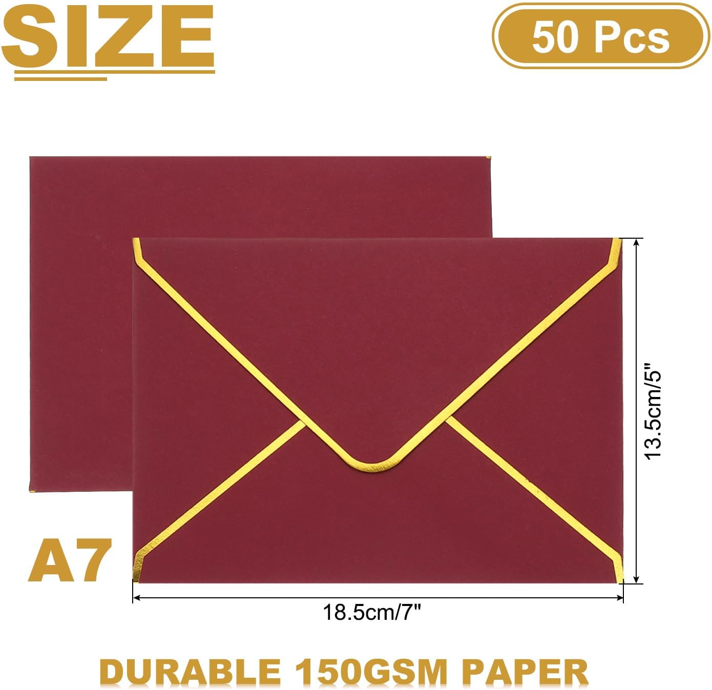 Materiale Carta Resistente 150gsm: Le Nostre Buste 5x7 Hanno Una Superficie Liscia E Colori Vivaci Per Attirare L'Attenzione E Aggiungere Eleganza, Sono Anche Più Spesse, Robuste E Durevoli. Riceverai 50 Pezzi Di Buste Per Diversi Usi, Come Inviti O Spedizioni. BORDO ORO LUSSOSO - Il Bordo In Oro Foil Delle Nostre Buste È Davvero Qualcosa Di particolare. Il Design Con Aletta A V Aggiunge Un Tocco Di Fascino E Raffinatezza Ad Ogni Evento, Facendo Risaltare I Tuoi Inviti. Che Tu Stia Inviando Inviti Di Nozze O Corrispondenza Aziendale, Queste Buste Lasceranno Un'Impressione Indimenticabile. Sigillatura Forte: Il Bordo È Progettato Con Aletta Gommata. Aggiungi Un Po' D'Acqua Al Bordo Gommato, Premi Per Qualche Secondo E Le Buste Saranno Perfettamente Sigillate Per Proteggere La Tua Privacy. Progetti Fai Da Te: Scegli Il Disegno Che Preferisci, Stampalo Sulla Busta Con Una Stampante O Decorala Con Fiori Secchi, Adesivi E Francobolli Per Personalizzare Una Busta Unica E Originale. Applicazioni: Aspetto Elegante E Qualità elevata, Le Nostre Buste Risaltano. Utilizzate Per Biglietti Di Auguri, Inviti Di Nozze, Inviti Per Feste Di Compleanno, Laurea, Cartoline, Foto, Lettere, Spedizioni, Ecc. Ideali Per Esprimere Gratitudine O Inviare Inviti Per Feste Come Natale, Ringraziamento E Altri Eventi Festivi.