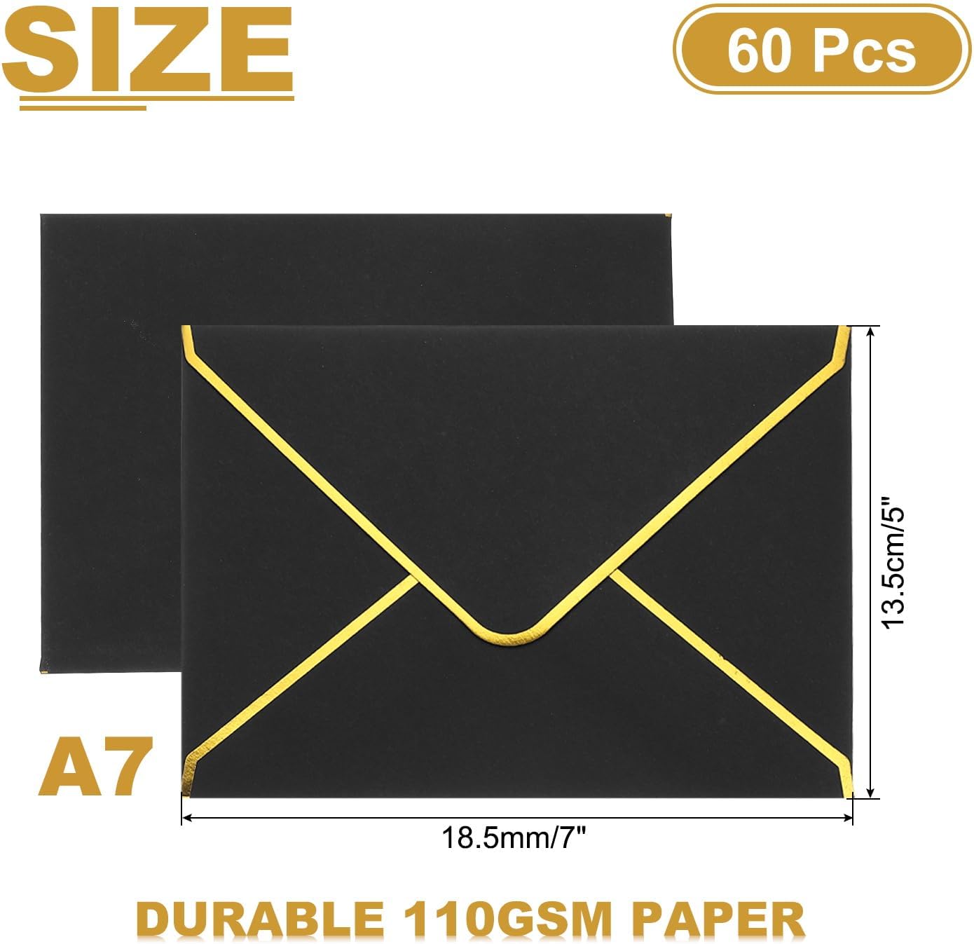 Materiale Carta Resistente 110gsm: Le nostre buste 5x7 hanno una superficie liscia e colori vivaci per attirare l'attenzione e aggiungere eleganza, oltre ad essere più spesse, robuste e durevoli. Riceverai 60 buste per diversi usi, come inviti o spedizioni. BORDO ORO LUSSO - Il bordo in foglia oro delle nostre buste è davvero particolare. Il design ad aletta a V aggiunge un tocco di fascino e raffinatezza a ogni evento, facendo risaltare i tuoi inviti. Che tu stia spedendo inviti di matrimonio o corrispondenza aziendale, queste buste lasceranno un'impressione duratura. Sigillatura Forte: L'aletta ha un design con bordo gommato. Aggiungi un po' d'acqua al bordo gommato, premi per qualche secondo e la busta sarà perfettamente sigillata per proteggere la tua privacy. Progetti Fai Da Te: Scegli il motivo che preferisci, stampalo sulla busta con una stampante o decorala con fiori secchi, adesivi e francobolli per personalizzare una busta unica e originale. Applicazione: Aspetto elegante e Qualità elevata, le nostre buste si distinguono. Utilizzate per biglietti d'auguri, inviti di matrimonio, feste di compleanno, laurea, cartoline, foto, lettere, spedizioni, ecc. Ideali per esprimere gratitudine o inviti a feste come Natale, Ringraziamento e altre occasioni festive.