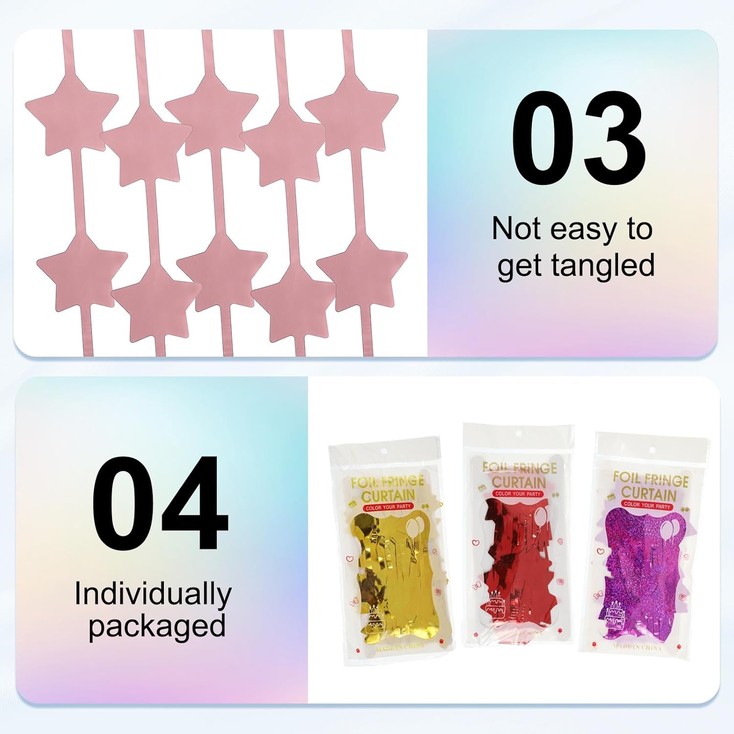 Materiale: plastica; Dimensioni Frangia Sfondo: 1m x 2m / 39,37 x 78,74 POLLICI; Stella: 5,5x5,5 cm / 2,16x2,16 POLLICI; Lista Pacchetti: 2Pack Party Backdrop Decoration Appendete le decorazioni a frangia sul soffitto, rami, recinzioni, finestre, pareti, ingressi per decorare la vostra festa. Questi accessori per decorazioni da appendere rendono la stanza piena di atmosfera festosa e sono un'ottima aggiunta a qualsiasi festa di compleanno o festa di laurea. Tende da sfondo per feste, decorazioni per feste, Natale, matrimoni, alberi di Natale o abbinati ad altre decorazioni Vantaggio: Questa decorazione per feste con frange in lamina ha un retro adesivo, togliete lo sfondo per feste dall'imballaggio, staccate il nastro e quindi attaccate la tenda a nappa in cima al muro o alla porta per la decorazione dello sfondo, potete scattare belle foto. Durevole, può essere conservato per lungo tempo. Superficie brillante e sfondo ondulato, adatto per decorazioni per feste per aggiungere brillantezza. 1. Potete usare le forbici per tagliare alla lunghezza e larghezza appropriate; 2. Utilizzare 2 confezioni di tende per sovrapporre per un effetto più spesso e densa.