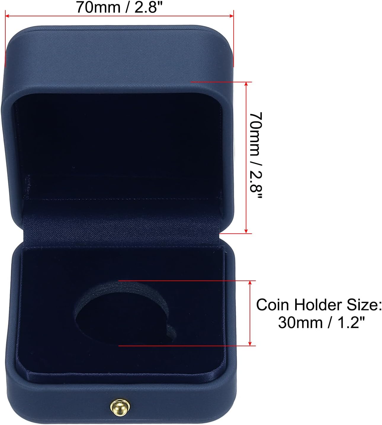 Colore: blu; Materiale: pelle PU; Dimensioni del portamonete: 30 mm / 1,2 pollici; Dimensioni della scatola: 70 x 70 x 47 mm / 2,8 x 2,8 x 1,9 pollici (L*P*A); Lista di imballaggio: 1 x portamonete quadrato da collezione Vantaggio: il raccoglitore di monete fornisce una cornice sicura e protettiva per le tue monete per proteggerle da graffi, polvere e altri possibili danni. Con il suo design trasparente, questo salvamonete consente una chiara visibilità e una facile identificazione della moneta all'interno. Il portamonete presenta un design elegante e raffinato, adatto a musei, collezioni e decorazioni. Istruzioni: il meccanismo di bloccaggio facilita l'inserimento e la rimozione delle monete e offre comodità ai collezionisti. Metti semplicemente le monete nella scatola. Applicazione: questa scatola per esposizione di monete è una soluzione versatile e affidabile per proteggere ed esporre la tua preziosa collezione di monete. Il deposito delle monete può esporre monete commemorative, campioni, francobolli, gioielli e altri piccoli oggetti. Il portamonete è adatto per collezionisti e decorazioni per la casa. Nota: controllare attentamente le dimensioni prima dell'acquisto.