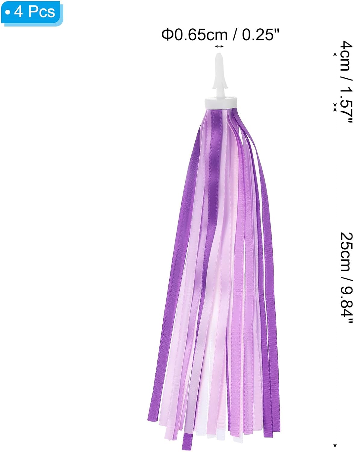 Lunghezza della frangia: 25 cm / 9,84 pollici; Lunghezza manico in plastica: 4 cm/1,57 pollici; Diametro punta: 0,65 cm / 0,25 pollici; Lista imballaggio: 2 set x accessori per biciclette Vantaggio: il nastro del manubrio è realizzato in fibra di poliestere e plastica, con una consistenza morbida e liscia, non facile da rompere. La base e il nastro sono saldamente incollati, non cadono facilmente e supportano un uso ripetuto a lungo termine. Le frange lucide e colorate appese alla bici che svolazzano nel vento ti faranno notare ai festival della bicicletta. Istruzioni: Con il design della testa di ancoraggio in plastica, si inseriscono e si fissano facilmente nei fori del manubrio delle biciclette, la compatibilità universale garantisce un'installazione senza problemi. Applicazione: Queste frange colorate per biciclette possono decorare biciclette, tricicli, scooter, mountain bike, biciclette elettriche, ecc. Adatte a varie occasioni, come feste per bambini, compleanni, lauree, decorazioni natalizie, matrimoni, riunioni di famiglia e altro ancora. I nastri con frange per bici da festa sono anche un ottimo regalo per amici e parenti. Avviso: non tirare il nastro con troppa forza.