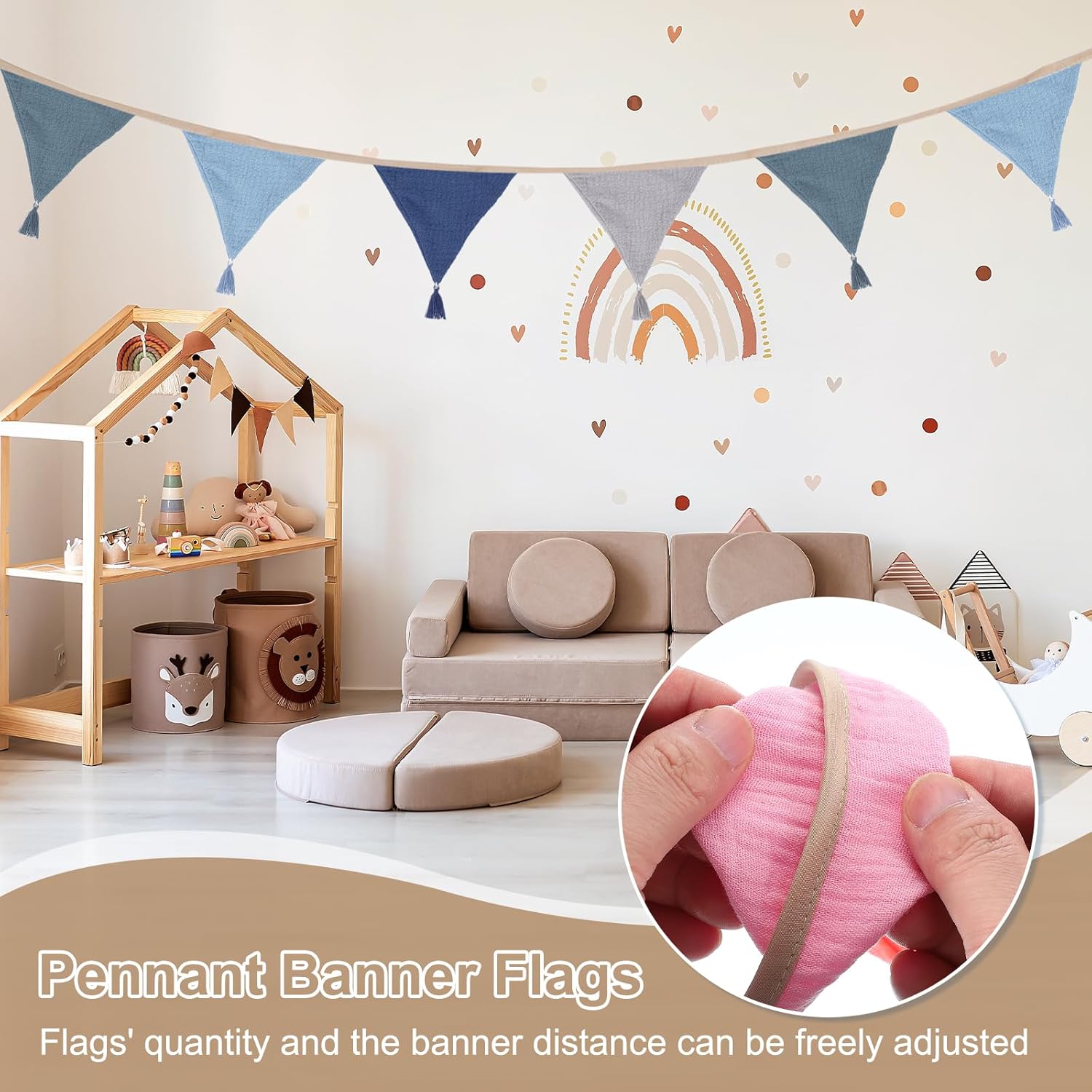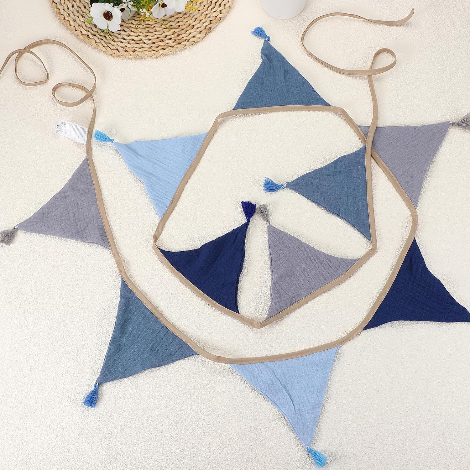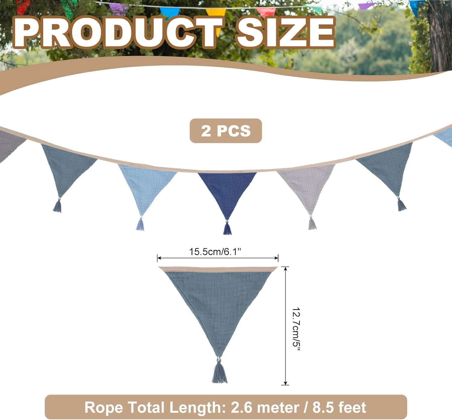 Lista Imballaggio: Forniamo stendardi lunghi 8.5 piedi (2.6m) con 10 pezzi di bandiere triangolari con nappe, un totale di 2 confezioni, ogni stendardo misura 15.5 x 12.7 cm / 6.1 x 5 pollici (L*H) Materiale Resistente: Questo stendardo con nappe è realizzato in cotone crespato a doppia faccia resistente, leggero, morbido, duraturo, riutilizzabile e può essere lavato in acqua fredda, asciugato in asciugatrice o all'aria per mantenere la sua morbidezza. Applicazione: Lo stendardo triangolare aggiunge un tocco di gioia e festa alla tua celebrazione, creando momenti indimenticabili e un'atmosfera festosa. Perfetto per feste, matrimoni, compleanni e decorazioni per la casa, Halloween, Ringraziamento, Carnevale, feste di Pasqua e decorazioni natalizie Istruzioni: Il numero di bandiere e la distanza tra gli stendardi sono fissi. Ci sono 10 bandiere su una corda, e le cinghie alle estremità sono lunghe circa 45 cm (17.7 pollici), la lunghezza e le dimensioni sono perfette per decorazioni appese Questa adorabile ghirlanda di stendardi è in una serie blu e grigia che si abbina alla maggior parte delle decorazioni per camere bohemien. (Nota: A causa della luce naturale e delle differenze nella risoluzione del display, il colore dell'oggetto mostrato nella foto potrebbe variare leggermente dall'oggetto reale)