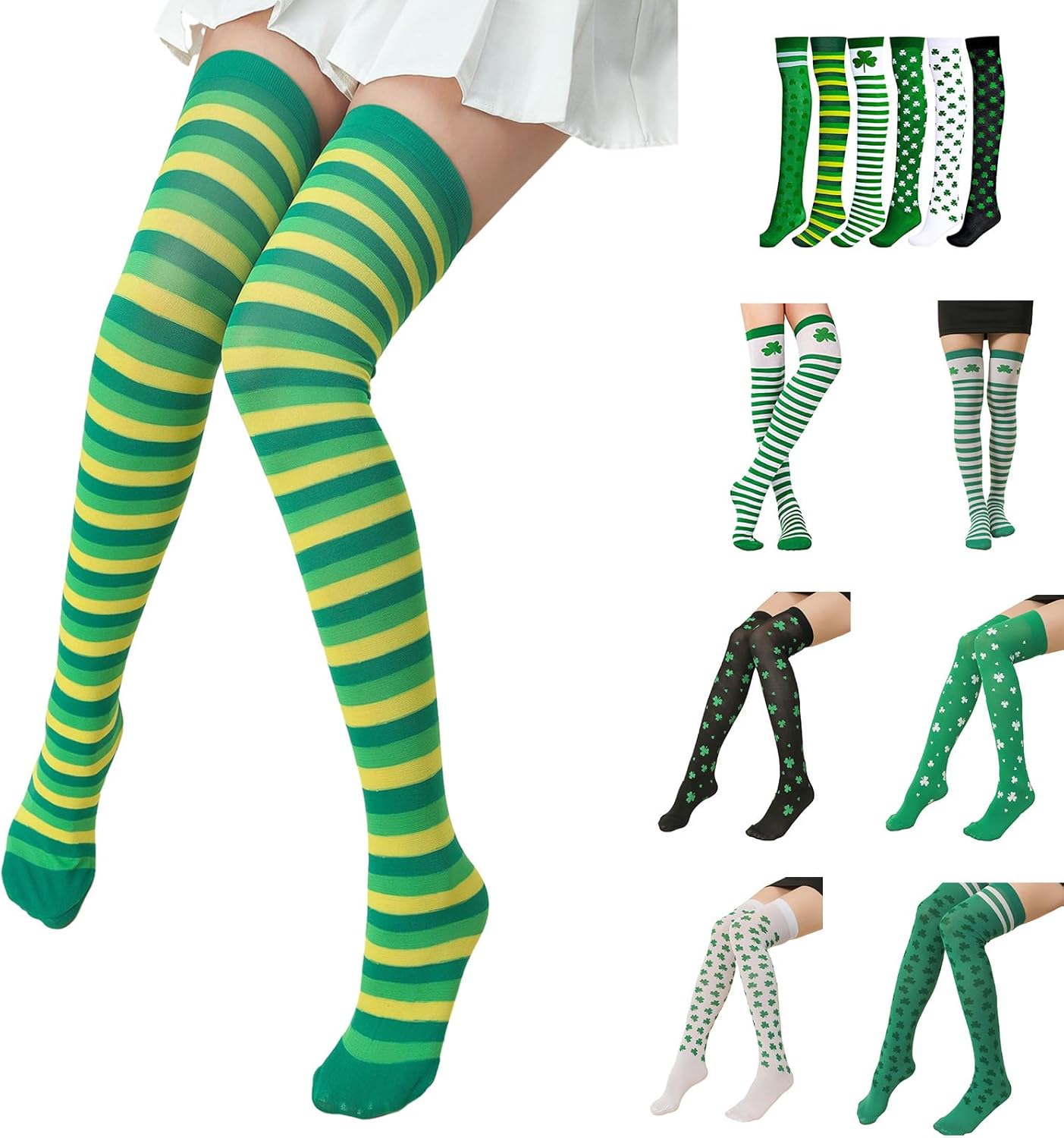 Patricks Day Decorazioni Trifoglio A Righe Sopra il Ginocchio Calze Lunghe Calze Alte Coscia Per Le Donne Accessori Del Partito Caratteristiche: e Migliora l'outfit con queste calze alte alla coscia di ispirazione irlandese con stampe tradizionali a trifoglio e a righe. Per donare fascino a ogni occasione. Realizzate in tessuto di poliestere, queste calze offrono una vestibilità comoda e traspirante. Sono elastici, morbidi e garantiscono una lunga durata. Progettate per adattarsi alla maggior parte delle donne, queste calze sono per coloro che apprezzano accessori unici ed eleganti. Che tu stia partecipando a un festival o a un evento speciale, queste calze porteranno divertimento ed eccitazione al tuo look. Abbina queste calze alte alla coscia con il tuo costume, vestito, pantaloncini o gonne preferiti per mostrare la tua individualità e personale per l'uso quotidiano, feste e appuntamenti. Specifiche tecniche: poliestere. Misura del piede consigliata: 35-40. Colori opzionali: 1, 2, 3, 4, 5, 6, 7, 8 La confezione include: 1 paio (2 pezzi) di calzini lunghi. Nota: Transizione: 1 cm = 10 mm. Non confezione al dettaglio. Si prega di considerare un margine di errore di 1-3 cm dovuto alla misurazione Assicurarsi che questo non sia un problema prima di effettuare l'ordine. A causa della differenza tra i diversi monitor, l'immagine potrebbe non riflettere esattamente il colore dell'articolo.