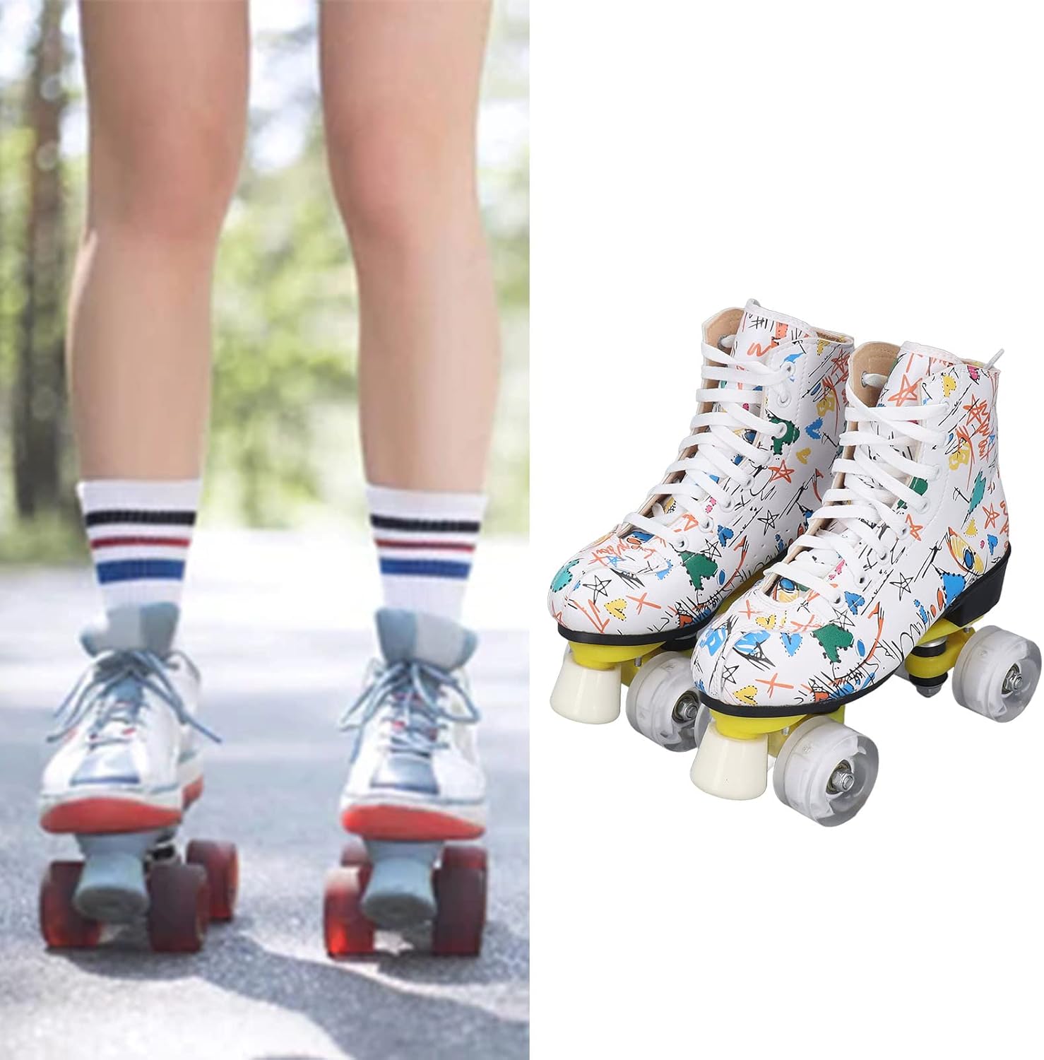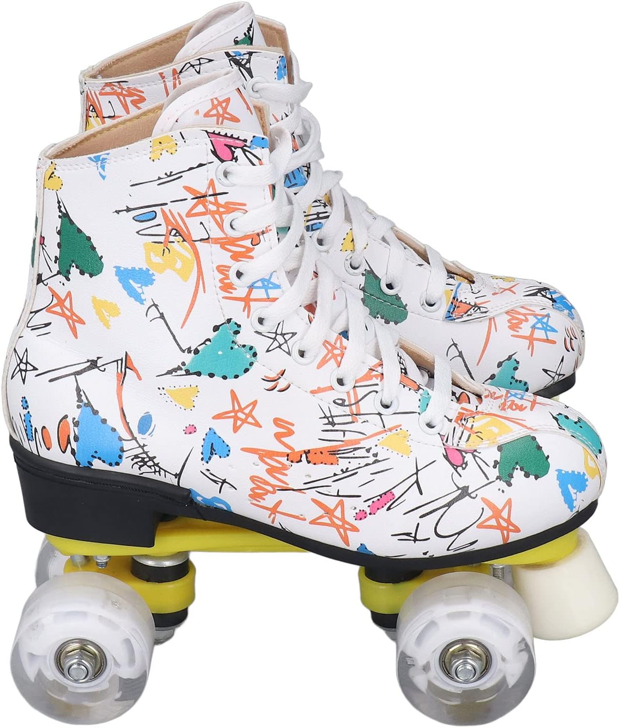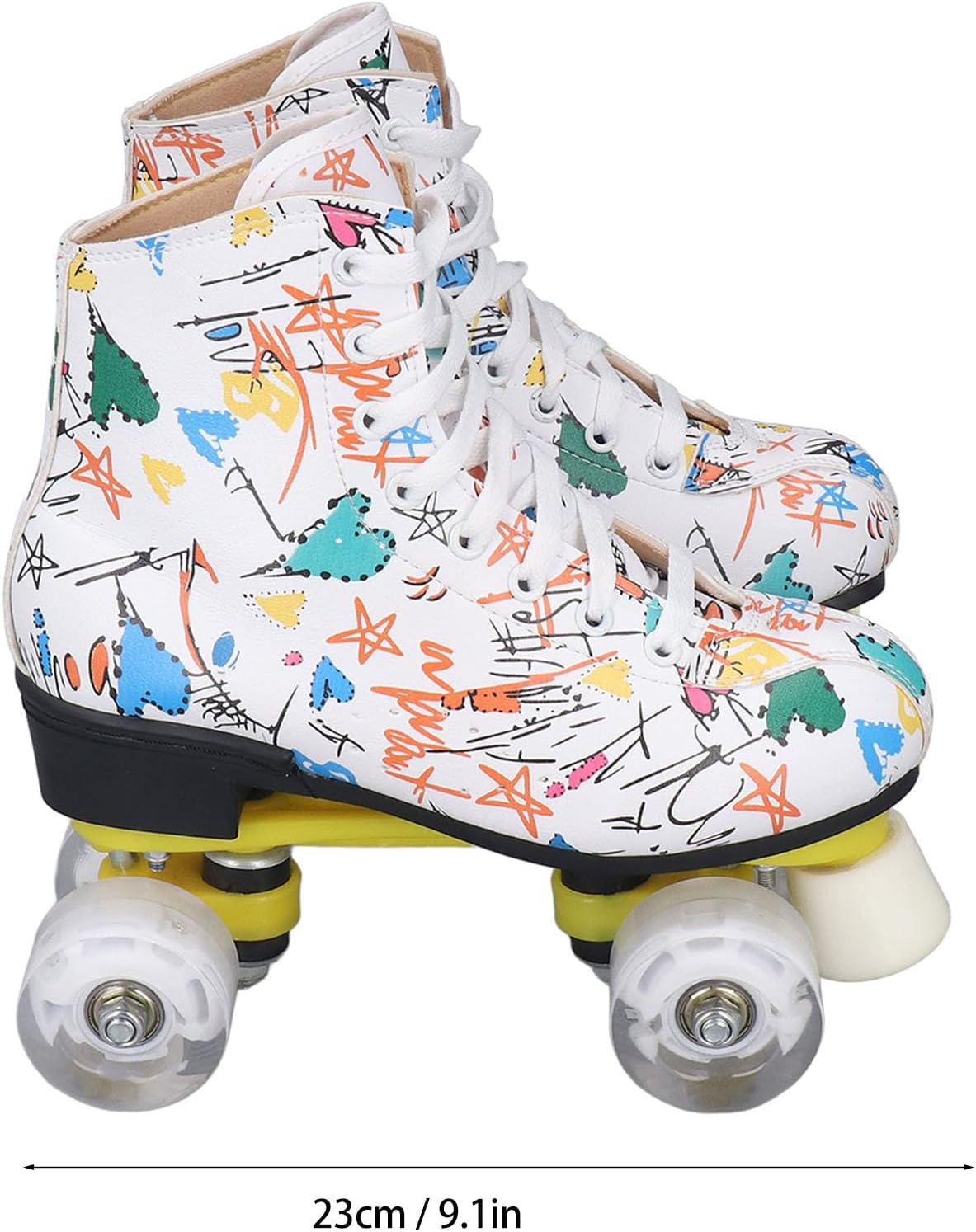 Robusto e materiale: i pattini a rotelle sono dotati di robusti pattini a quattro ruote realizzati con materiali stampati, che possono fornire prestazioni di pattinaggio sicure e affidabili. Le ruote lucide ti rendono più fresco quando pattini. Colonna di supporto anteriore: nella parte anteriore è presente una colonna di supporto, molto adatta ai principianti. Può mantenere meglio il controllo e la frenata rapida. Questa struttura garantisce che la staffa non venga danneggiata. Comfort e sicurezza: questi pattini a rotelle utilizzano scarpe alte controllabili per garantire una sicurezza ottimale, mentre i lacci premium offrono la massima protezione per garantire comfort e sicurezza del piede. Traspirabilità interna: la traspirabilità interna dei pattini a rotelle a doppia fila può aiutare i tuoi piedi a dissipare rapidamente il calore, prevenire l'odore del piede e prevenire il sudore, permettendoti di goderti appieno lo scivolamento. Ampie applicazioni: i pattini a rotelle colorati sono il regalo perfetto per bambini, ragazzi, ragazze e amici, fidanzate o familiari. È anche la scelta ideale per il pattinaggio indoor e outdoor.