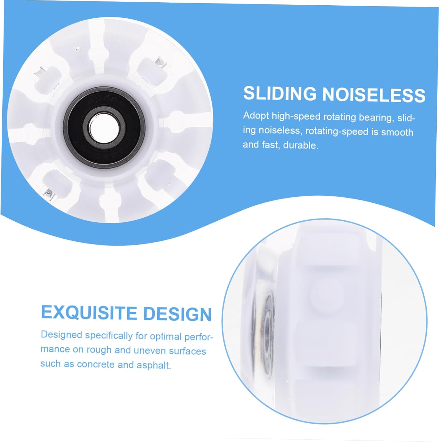 Ruote luminose per pattini a rotelle: sia sulla pista di pattinaggio, sul marciapiede o in strada, i pattini a rotelle garantiscono una presa duratura. Ruote da skate per esterni: generalmente applicabili per skateboard, pattinaggio a rotelle, scooter. Questi pattini da ghiaccio con cuscinetti a sfera fanno al caso tuo. Ruote da skate: materiale sicuro, adatto per un uso a lungo termine. Sviluppato appositamente per superfici ruvide e irregolari come cemento e asfalto. Fornitura di ruote: queste ruote forniscono una base stabile e di supporto quando si pattina su superfici esterne. Ruote da pattinaggio luminose: funzionano bene su strade pianeggianti e rampe. adatto a principianti e professionisti.