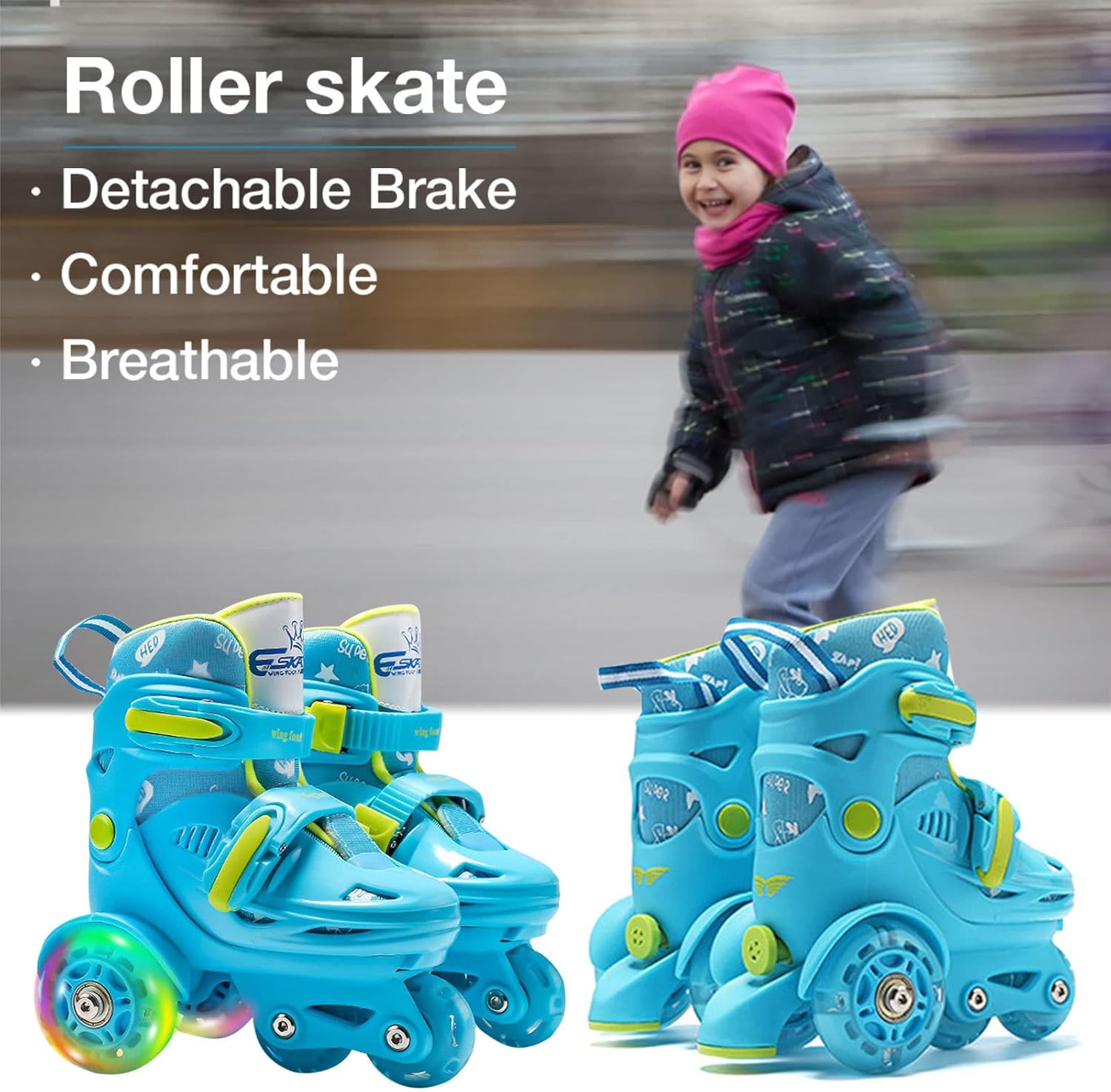 [Dimensione libera] Con design a dimensione regolabile, più adatto ai bambini in crescita, adatto a bambini dai 2 agli 8 anni. I pattini a rotelle sono pattini in linea regolabili, fai riferimento alla nostra tabella delle taglie per vedere quali pattini sono adatti ai piedi del tuo bambino. . [Comodo da usare] Il pattino a rotelle per bambini è comodo e sicuro, ha interni morbidi, confortevoli, traspiranti e resistenti e utilizza cuscinetti selezionati silenziosi in acciaio cromato ABEC-7 per godersi una guida sicura, fluida e silenziosa su un telaio in alluminio rinforzato. [Design multiuso] I bambini che fanno attività fisica regolarmente dormono meglio e hanno un'immunità più forte. I pattini a rotelle regolabili hanno molte funzioni in modo che i bambini possano godersi il divertimento dello sport e aiutarli ad allenare articolazioni e muscoli forti. [Servizio sicuro] I pattini da esterno adottano un sistema di fibbie di sicurezza a regolazione rapida e ruote a doppia faccia per garantire la sicurezza dei bambini, sicura e duratura con un elevato fattore di sicurezza di frenata per una migliore usura e velocità moderata, dotati di PVC. Doppio freno. Buoni regali: dotati di uno spesso cuscinetto per proteggere le dita dei piedi all'esterno dello stivale, i pattini a rotelle per ragazze sono adatti per compleanni, Natale, Ringraziamento e altri giorni speciali. Il regalo migliore e più premuroso per i bambini.