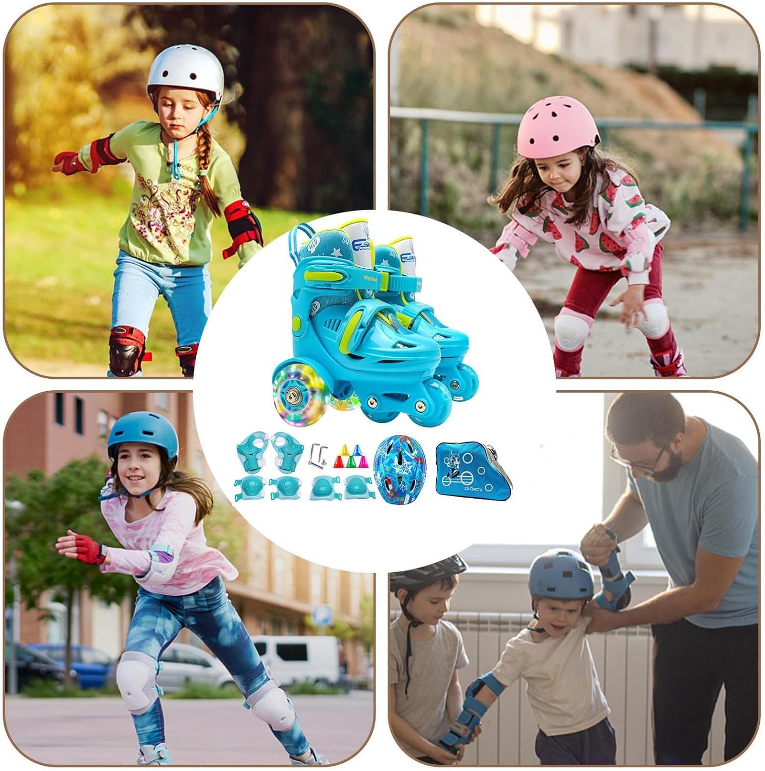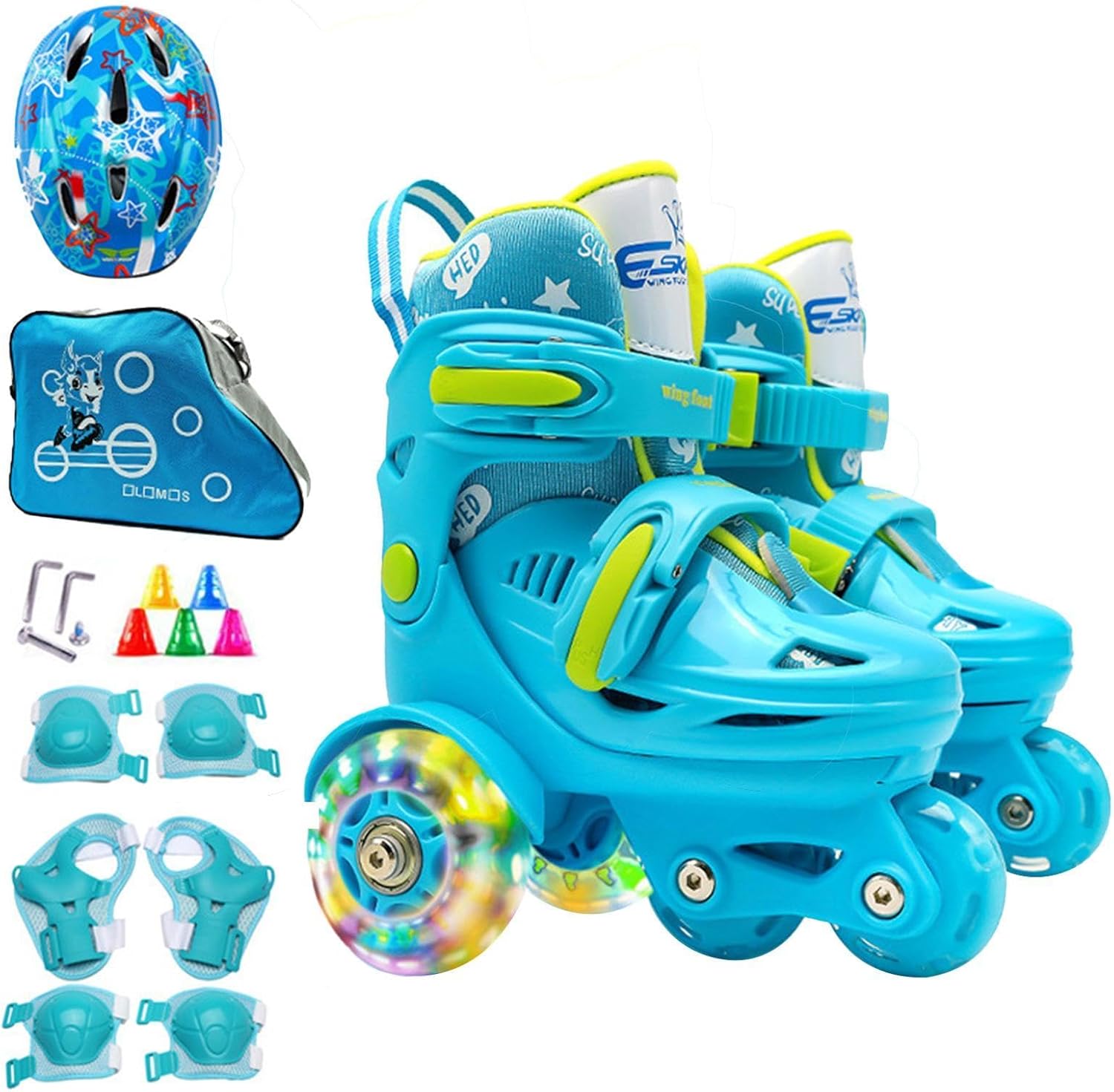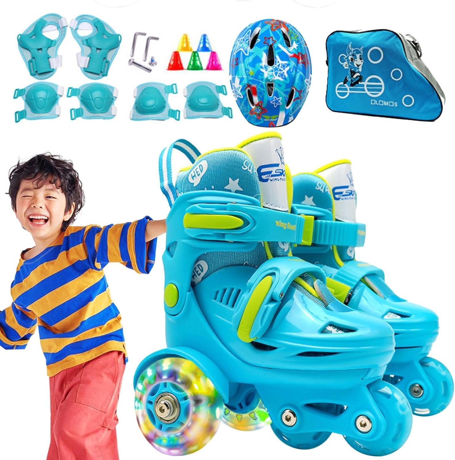 Maggiore sicurezza: i pattini a rotelle a tre punti per principianti offrono un facile controllo grazie al loro design stabilizzato a tre punti e al doppio sistema di frenata sulla ruota posteriore. Rallenta o fermati con facilità, rendendo il pattinaggio divertente per i principianti. Costruzione affidabile: lascia che il tuo bambino si ribalti con i pattini a rotelle a tre punti realizzati con un robusto guscio in PP e materiali affidabili, così potranno divertirsi a pattinare a lungo. La fodera interna confortevole e traspirante garantisce una guida confortevole. Produzione abile: i nostri pattini a rotelle a tre punti per bambini sono sapientemente realizzati con ruote in gomma PU altamente elastiche per una scivolata fluida e senza interruzioni su tutte le superfici. Porta il tuo set da pattinaggio all'aperto grazie alla comoda custodia e resta al sicuro con le ginocchiere, i gomitiere e il copricapo inclusi. Ampia applicazione: ideali per i principianti, questi pattini a rotelle scivolano senza problemi in molteplici scenari, come il parco, la palestra, il parco giochi o la pista di pattinaggio