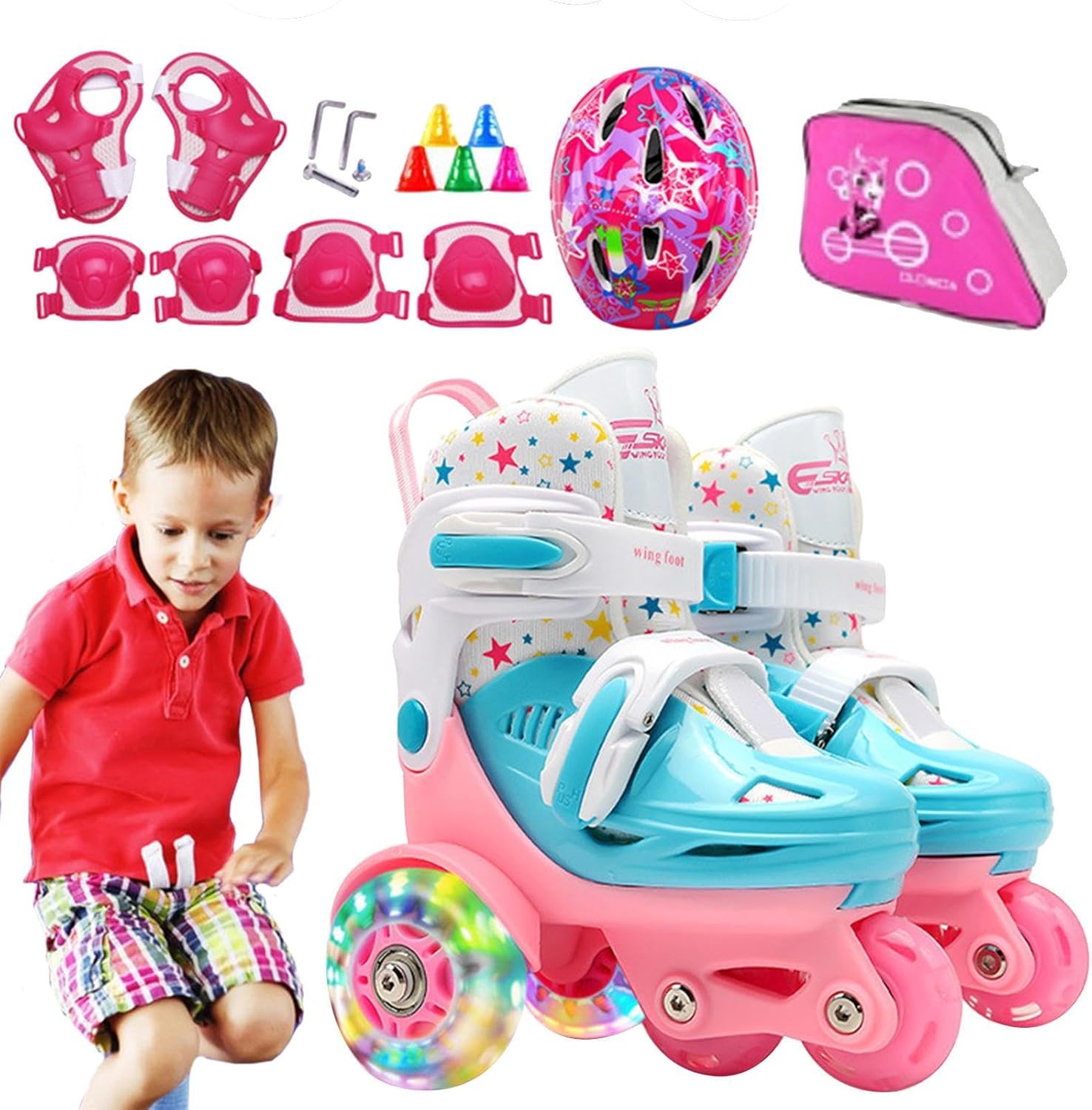 Adatto ai principianti: pattini a rotelle a tre punti, appositamente progettati per i principianti, offrono un design a tre punti stabilizzato e un doppio sistema frenante sulla ruota posteriore. Questo porta a una semplice frenata o arresto e dà ai pattinatori inesperti la fiducia necessaria Aumenta il divertimento del tuo bambino: con un guscio in polipropilene, questi pattini a rotelle garantiscono ai bambini un divertimento duraturo grazie ai materiali affidabili e alla comoda fodera interna traspirante Pregevole fattura: sii tranquillo, perché i nostri pattini a rotelle a tre punti per bambini sono caratterizzati da pregevole fattura e ruote in gomma PU altamente elastiche per una stabilità e una sicurezza senza precedenti Kit completo di pattinaggio: i nostri pattini a rotelle a tre punti offrono una guida fluida e personalizzabile per qualsiasi abilità. Portate il vostro set da pattinaggio all'esterno grazie alla pratica custodia e rimanete al sicuro con le ginocchiere, gomitiere e copricapo in dotazione Ampio utilizzo: per chi vuole imparare a pattinare a rotelle, questi pattini a tre punti sono adatti a diversi scenari come il parco, la palestra, il parco giochi o la pista di pattinaggio e offrono un'esperienza versatile e senza soluzione di continuità