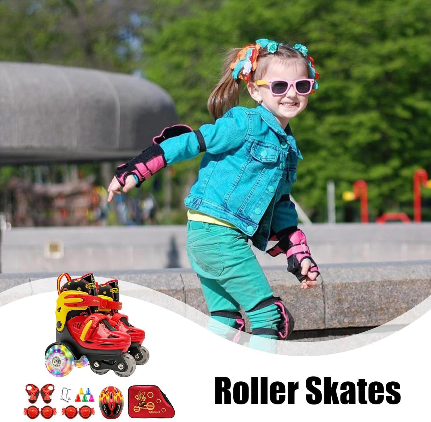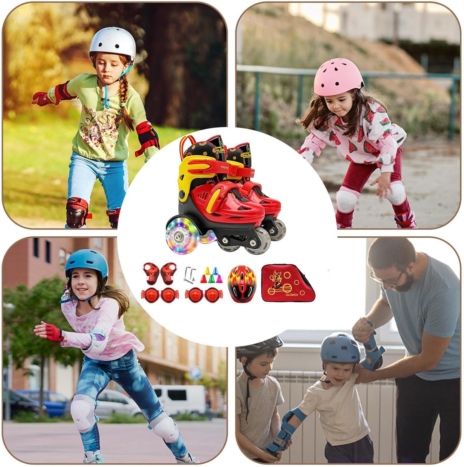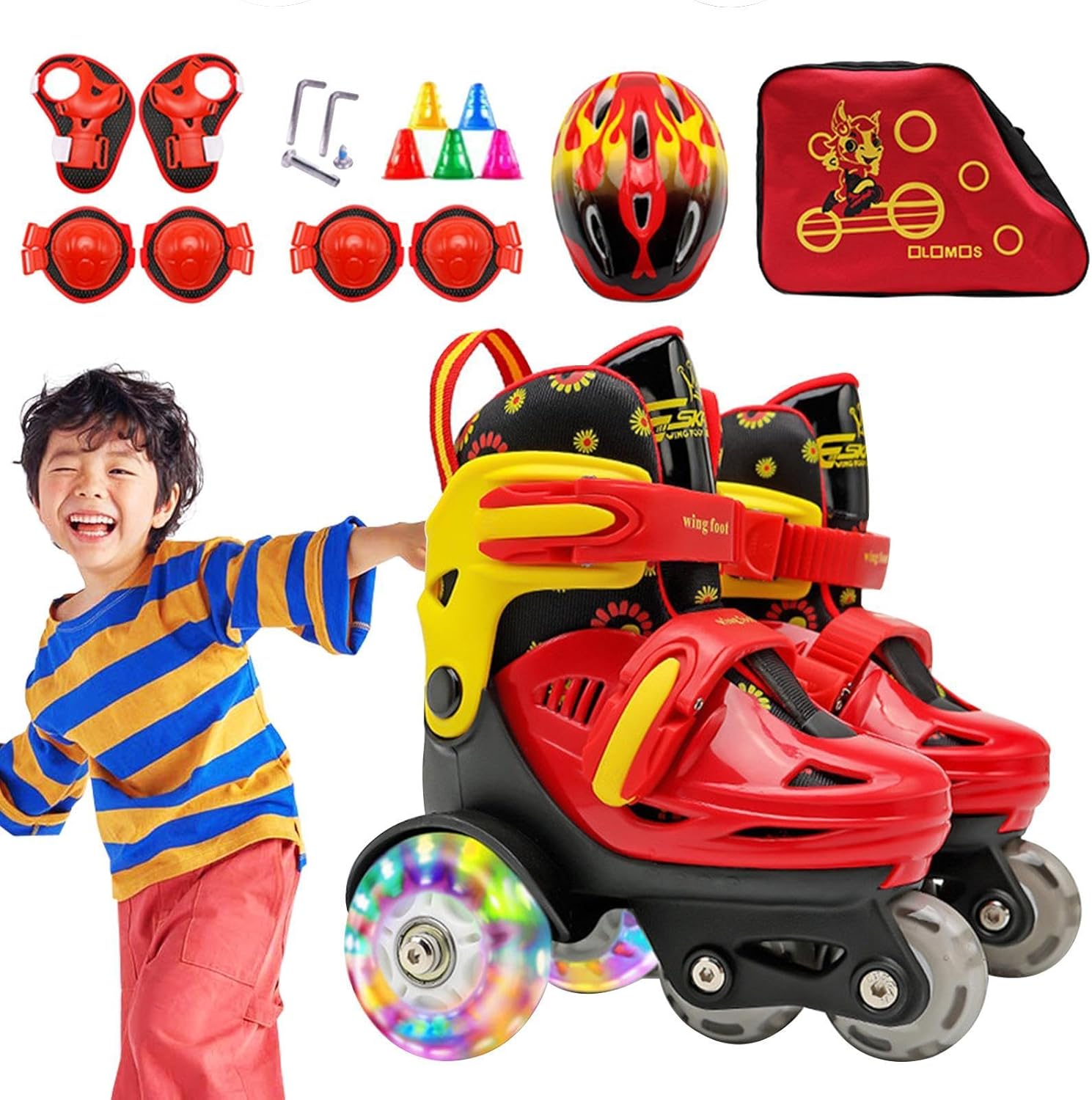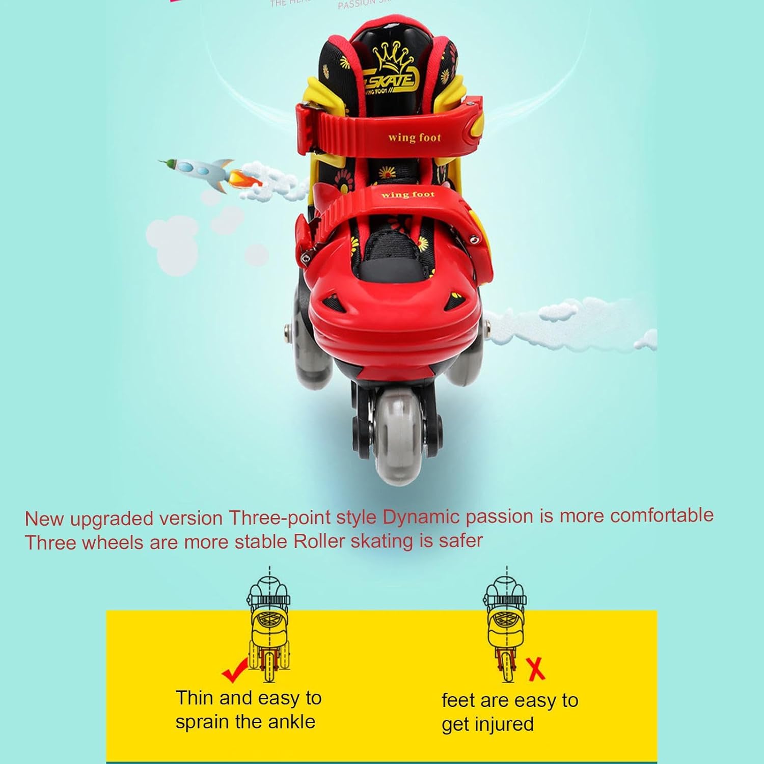 Adatto ai principianti: i pattini a rotelle a tre punti appositamente progettati per i principianti offrono un design stabilizzato a tre punti e un doppio sistema di frenata sulla ruota posteriore. Ciò si traduce in un facile rilascio o arresto, dando sicurezza ai principianti KUL DUREVOLE - Realizzati con materiale e rivestimento interno traspirante, questi pattini a rotelle a tre punti offrono un'avventura di pattinaggio di lunga durata grazie al loro robusto guscio in PP Ottima fattura - Stai tranquillo sapendo che i pattini a tre punti hanno una raffinata lavorazione artigianale e ruote in gomma PU con elevata elasticità per stabilità e sicurezza senza precedenti. Pattini a rotelle portatili: i pattini a tre punti offrono una guida fluida e regolabile per i pattinatori. Altamente portatile grazie alla custodia inclusa e completo di ginocchiere, gomitiere e copricapo per la sicurezza. Ampia applicazione: per coloro che vogliono imparare a pattinare a rotelle, questi pattini a rotelle a 3 punti sono adatti a molteplici scenari come parco, palestra, parco giochi o ghiaccio, offrendo un'esperienza versatile e fluida