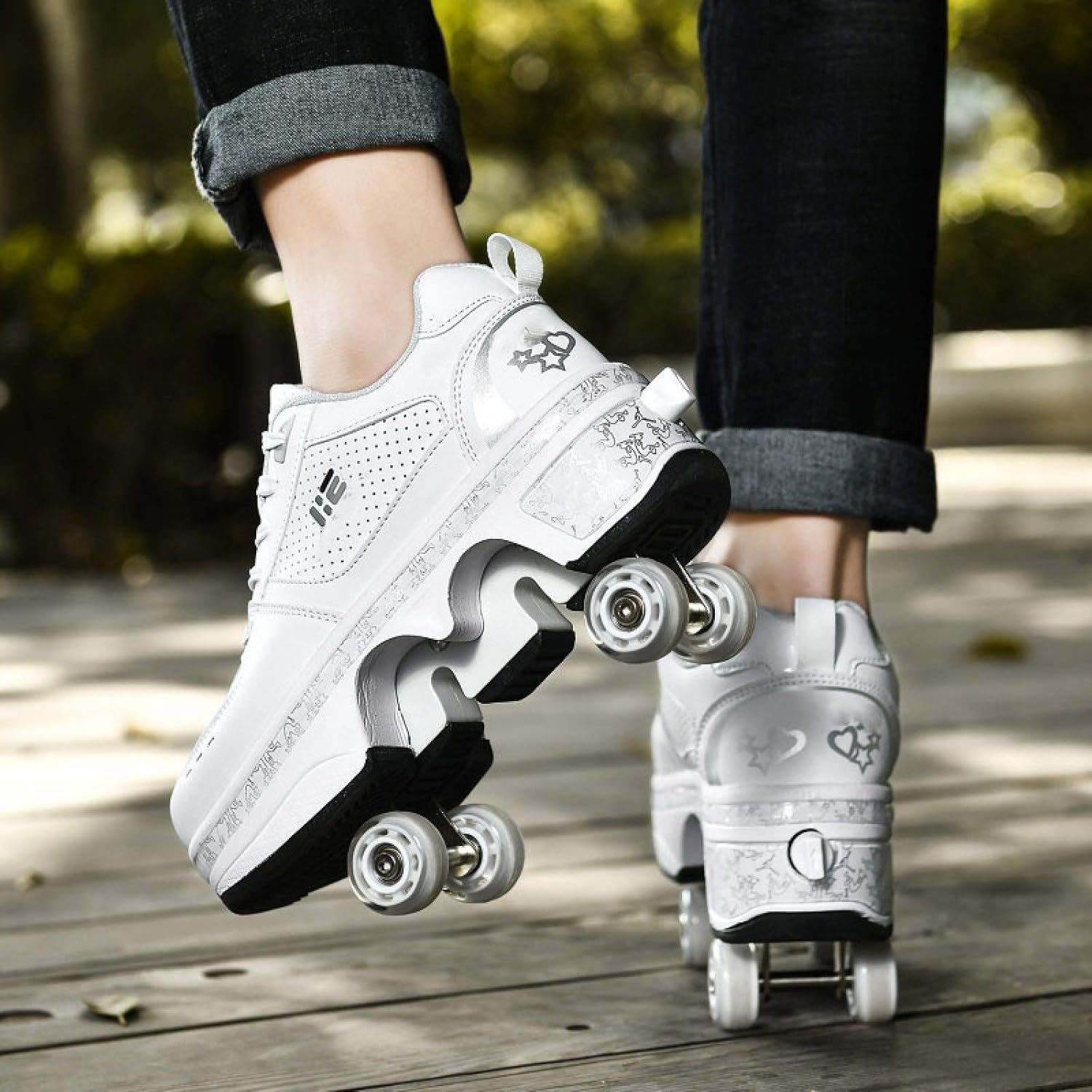 ★ Pattini A Rotelle Due In Uno: I Pattini Multiuso Regolabili Sono Diversi Dai Pattini A Rotelle Tradizionali Sul Mercato. Le Ruote Nascoste Possono Essere Nascoste Come Normali Scarpe Da Ginnastica, Quindi Puoi Regolare I Pattini A Rotelle, Che Non Solo Possono Pattinare Ma Anche Correre. ★ Design Luminoso Unico: I Nostri Pattini A Rotelle Sono Diversi Dalle Altre Scarpe, 7 Luci LED A Colori Disponibili E USB Ricaricabile, La Porta Di Ricarica USB E L'interruttore Sono Nascosti All'interno Della Scarpa. Sembra Bello, Non è Vero? ★ Materiale: Materiale Superiore (microfibra), Suola (gomma), Materiale Della Ruota (PU). Usa I Lacci Delle Scarpe Tradizionali. Puoi Regolare Il Laccio Delle Scarpe Per Scegliere La Sensazione Più Comoda. ★ Prestazioni Antiscivolo: La Ruota Ha Una Buona Presa E Migliora La Capacità Antiscivolo Del Pneumatico Imitando La Funzione A Dente Di Sega Del Rullo. Garantire La Stabilità E La Sicurezza Del Movimento. ★ Regali Speciali: I Pattini A Rotelle Regolabili Multifunzionali Sono Adatti Per Amici Di Tutte Le Età, Sport Unisex. Puoi Giocare Con Amici O Bambini O Regalarli Come Regali Di Natale.