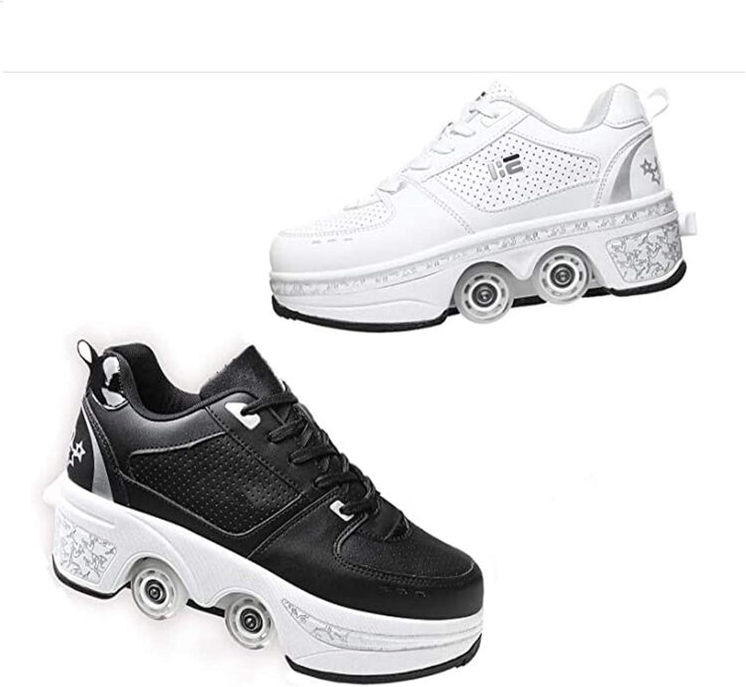 Pattini Deform Pattini A Rotelle Scarpe Casual Deformazioni Sneakers Camminate Pattini Uomo Donna Pattini Fuggitivi A Quattro Ruote,con Luce Led,EUR35-White
