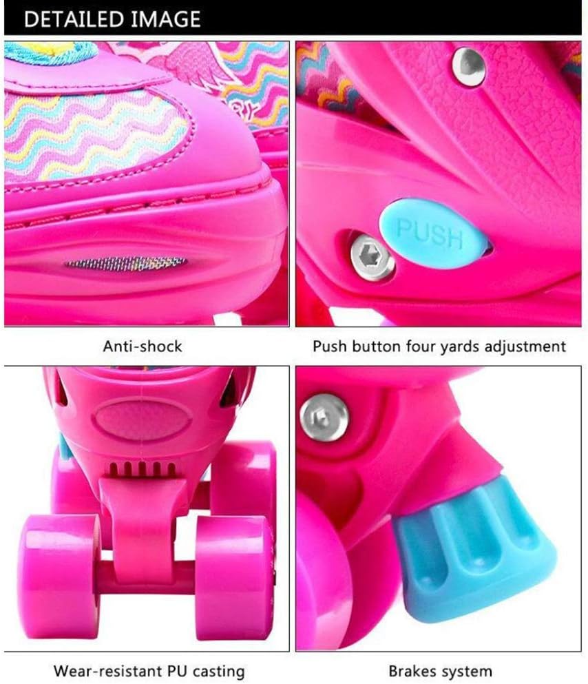 ★ Pattini Quad Fashion: sono pattini a rotelle classici, ruote in PVC e facili da rotolare. Ciò riduce efficacemente la potenza dello shock ★ Taglie regolabili: codice S (30-33), adatto per età 3-6 anni, codice M (34-37), adatto per 6-11 anni, codice L (38-41), adatto per età 11 anni - adulto. ★ Puntale anti-collisione: il puntale anti-collisione può essere utilizzato per proteggere i piedi del bambino quando colpisce un muro o un oggetto duro durante lo scivolamento. ★ Superficie in rete di poliestere: la rete è traspirante, ti senti fresco mentre pattini, liberi i piedi e divertiti senza ostacoli ★ Sistema di tripla protezione: dotato di laccio standard, velcro, fibbia ad alta resistenza, protegge efficacemente i tuoi bambini quando giocano con i pattini a rotelle. Un buon intrattenimento per i bambini che potranno divertirsi all'aria aperta