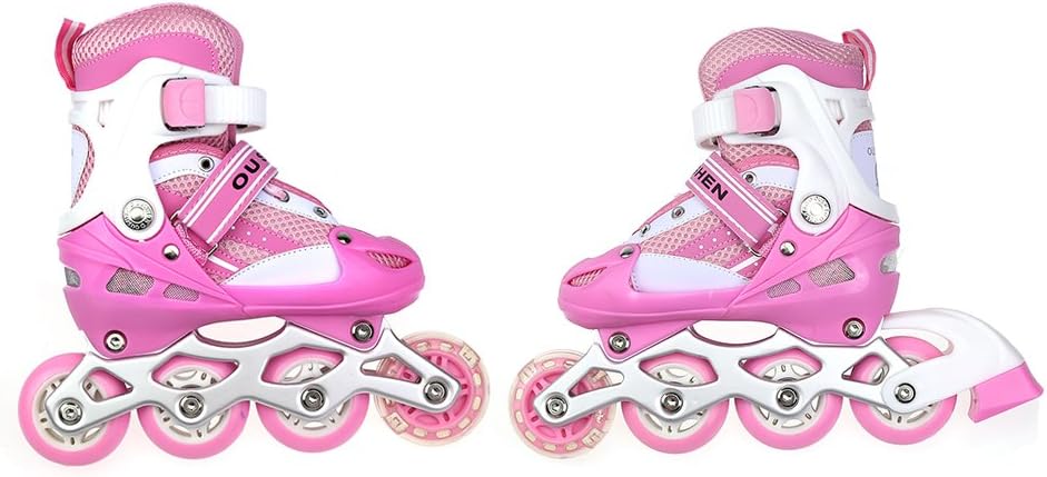 Pattini per bambini comodi con ruote luminose, pattini a ruote allineati per ragazze e ragazzi, rulli online mesh traspirante, pattini a rotelle misura regolabile (S/(31-34), rosa)