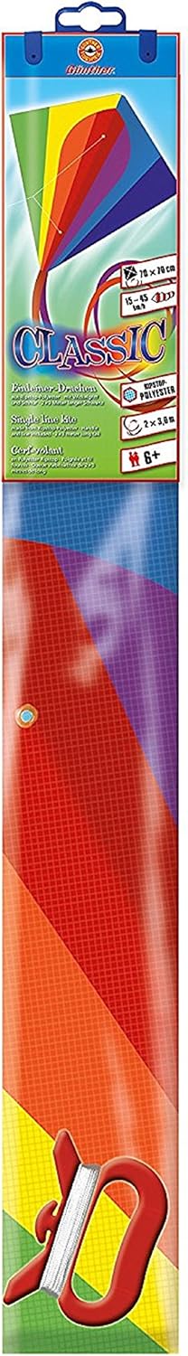Classico aquilone malese in poliestere ripstop, pronto a volare in pochi passi Dimensioni: ca. 70 x 70 cm, con coda lunga 2 x 3 m Bellissima vela dai colori vivaci e aste in fibra di vetro infrangibili Completa di maniglia per avvolgicavo, corda e polybag, montaggio semplice, pronta al volo velocemente Adatta per bambini dai 6 anni in su