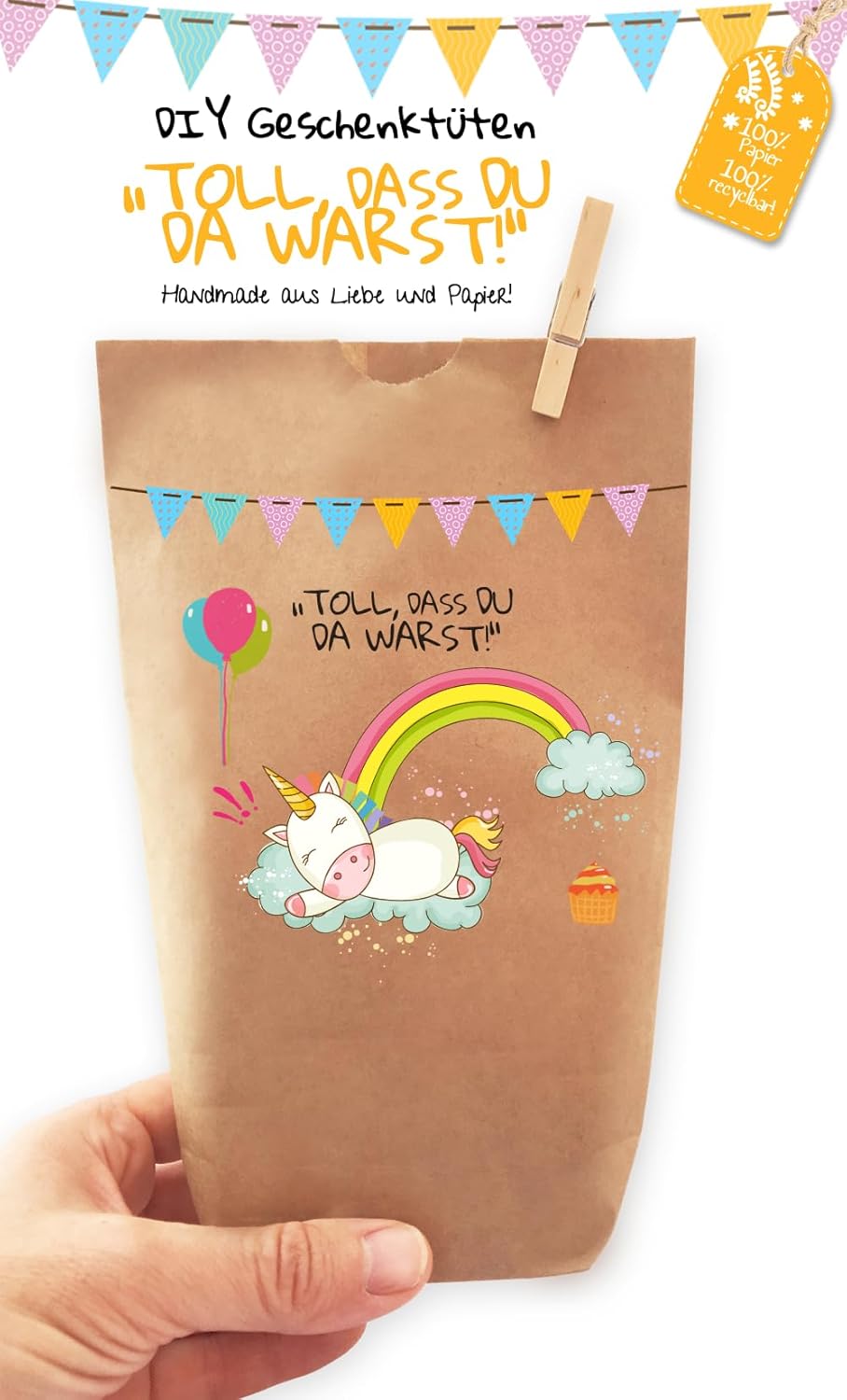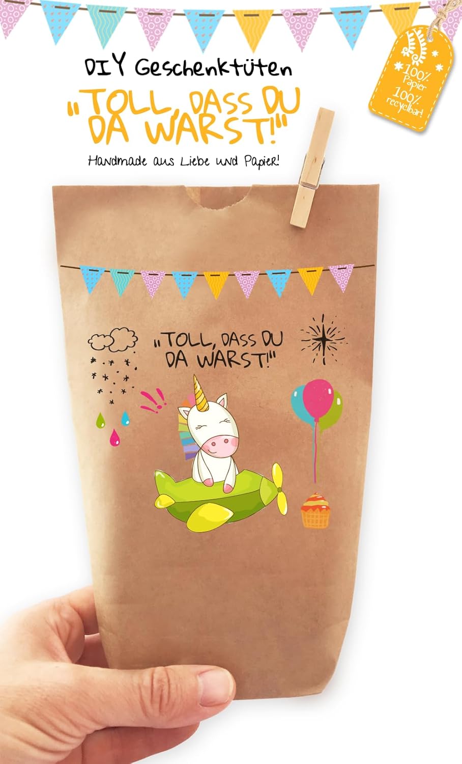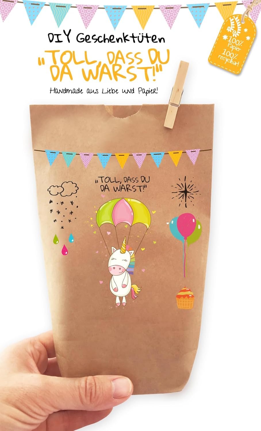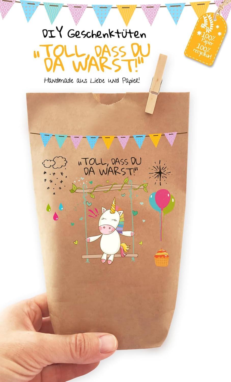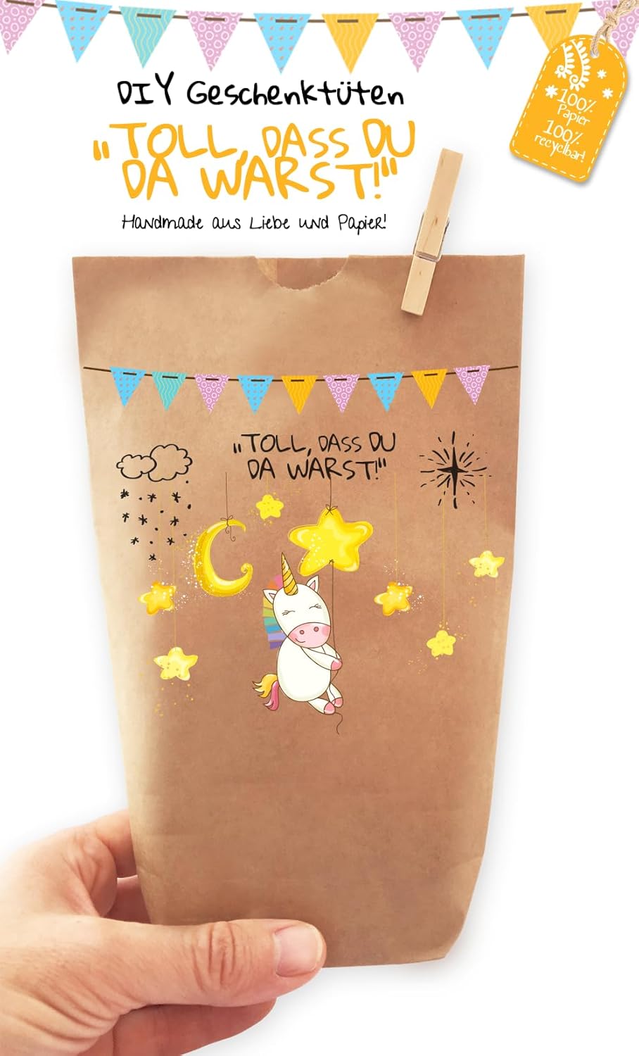6 bellissimi sacchetti regalo "È fantastico che TU fossi lì!" - stampata individualmente con amore, ogni borsa è un pezzo unico, comprese clip di legno, borse in carta kraft marrone naturale, dimensioni 14 x 22 cm - profondità della base ca. Sacchetti di carta Kraft da 5,4 cm per confezionare regali, per lavori manuali o per realizzare calendari dell'Avvento fai da te. Adatto per matrimoni, compleanni e tutte le celebrazioni. Paul's Papierfabrik sviluppa e progetta tutti i suoi prodotti in Germania. Realizzato con qualità eccezionale con amore e carta! Per amore, rispetto e preoccupazione per il nostro ambiente, non utilizziamo imballaggi in plastica: cartone o carta riciclabili al 100%! Inserisci PAULSPAPIERFABRIK nel campo di ricerca in alto e troverai molte altre bellissime borse della nostra cartiera.