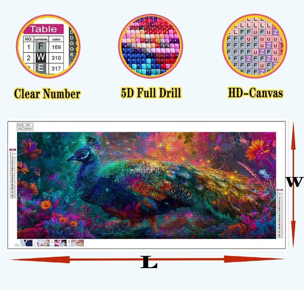 Pavone Diamond Painting Kit Completo, Animale Diamond Painting Bambina 60x120cm DIY Full Drill Crystal Art , 5D Bambini Per Pittura Diamante Adulti Principianti Per Pittura Diamante Wall Decor A-U324