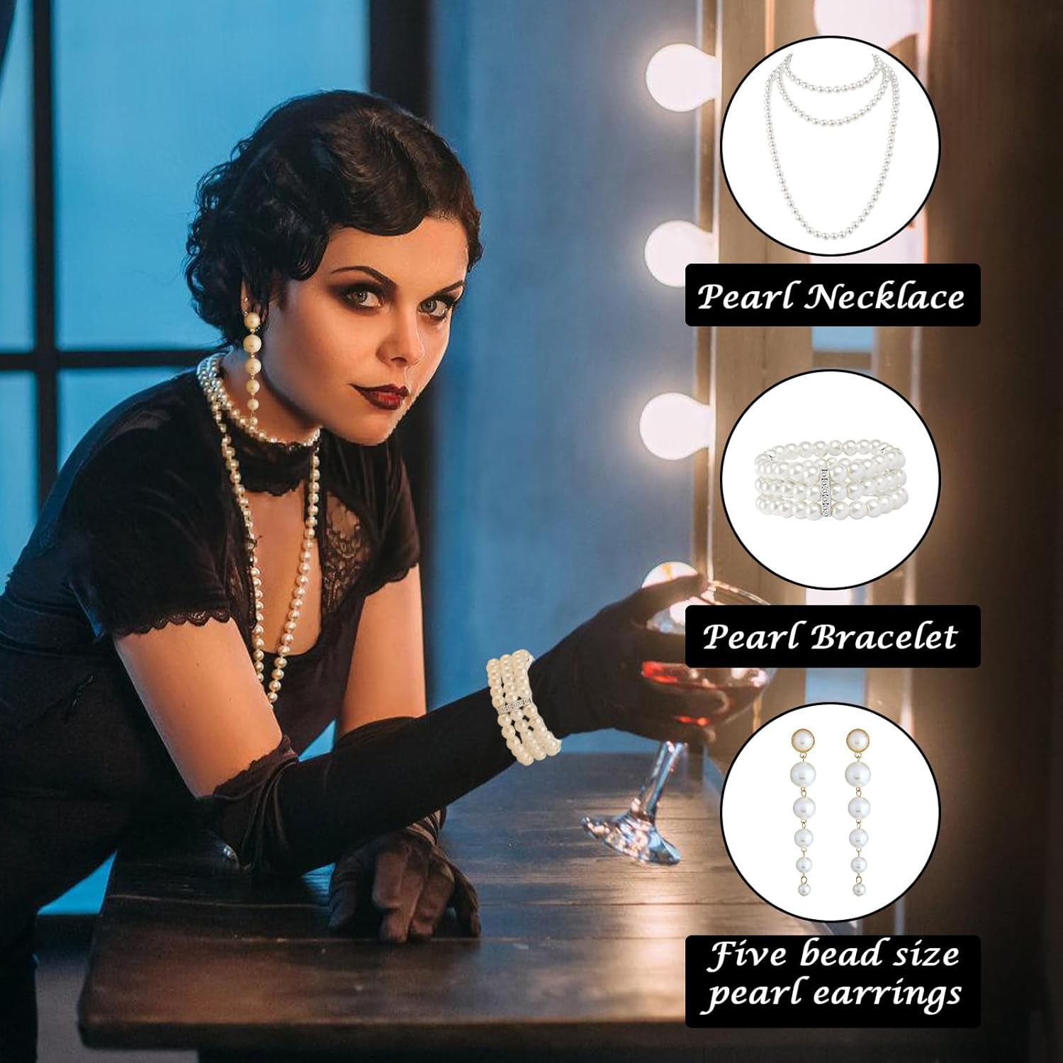 Caratteristiche: 1. Copricapo Gatsby con piume, perfetto per una serata anni '20, ha un'elevata elasticità e si adatta a un'ampia gamma di dimensioni della testa. 2. I guanti neri classici vintage in raso a dita piene sono dotati di cinghie elastiche, facili da indossare per tutte le occasioni. 3. Accessori anni 20 donna gatsby set ottimo per feste di matrimonio anni '20, cosplay, feste in maschera, proms e altre occasioni art deco. Specifiche: Quantità: 6 pezzi Colore: Nero, Bianco Guanti 52 cm/20.47in Orecchini di perle: 9 cm/3,54 pollici Stecca di sigaretta finta: 33 cm/12,99 pollici Collana di perle: Può essere avvolto 2-3 volte Bracciale di perle imitazione: 6.8x2.5cm/2.67x0.98in Fascia per capelli: Alta elasticità (adatto per molti circonferenza della testa) Il Pacchetto Include: 1PC Collana Di Perle 1PC Bracciale Di Perle 1PC Orecchini Di Perle 1PC Finto Bastone Di Sigaretta 1PC Guanti Neri A Dita Piene 1PC Fascia Per Capelli Con Fiori Gatsby