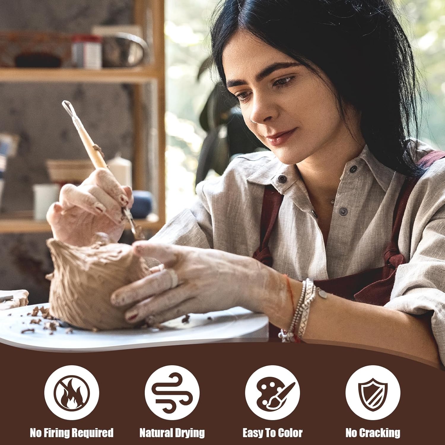 【La Confezione Include】Riceverai un set completo di kit argilla senza cottura , che include 1 kg di argilla (2 x 500 g), 13 utensili per argilla, 1 flacone spray da 30 ml, 1 smalto da 5 ml, 1 tavoletta di argilla pressata acrilica, 12 colori di colori acrilici, 1 tavolozza, 4 timbri, 1 confezione inglese, 2 pennelli a punta piatta, 2 pennelli a punta appuntita. Non vedi l'ora di realizzare i tuoi fantastici capolavori in argilla con questo set argilla da modellare. 【Argilla Essiccante All'aria】Kit ceramica fai da te è realizzata in argilla essiccante all'aria di alta qualità, dalla consistenza morbida, che si asciuga naturalmente all'aria con una superficie liscia per una facile colorazione, l'argilla si asciuga entro 24-48 ore senza screpolarsi, non c'è bisogno di bruciarla, viene fornita in un sacchetto sigillato per una facile conservazione. 【Accessori Completi】Il nostro argilla senza cottura fornisce 13 pezzi di strumenti per scolpire per arricchire le tue creazioni in ceramica, usali per tagliare, intagliare, levigare e modellare per aiutarti a ottenere dettagli intricati, 12 colori di colori acrilici per aggiungere colore alle tue creazioni e 5 ml di olio lucido per un effetto lucido simile alla ceramica e un effetto impermeabile. 【Prova Il Divertimento Della Ceramica】Quando possiedi questo set di creta da modellare senza cottura, puoi dare libero sfogo alla tua immaginazione e divertirti a creare ceramiche a casa con il tuo partner. Puoi usare argilla da modellare senza cottura per creare tutte le bellissime tazze in ceramica, ciotole in ceramica, decorazioni, portachiavi e altri bellissimi oggetti che desideri. 【Regalo Ideale】Kit argilla è perfetto per principianti e appassionati di ceramica che desiderano realizzare bellissime ceramiche a casa, porcellana fredda da modellare può essere utilizzato come regalo di compleanno, regalo di Natale, regalo di Capodanno o regalo di festa per la tua famiglia e i tuoi amici per godersi il tempo di riunione in famiglia.