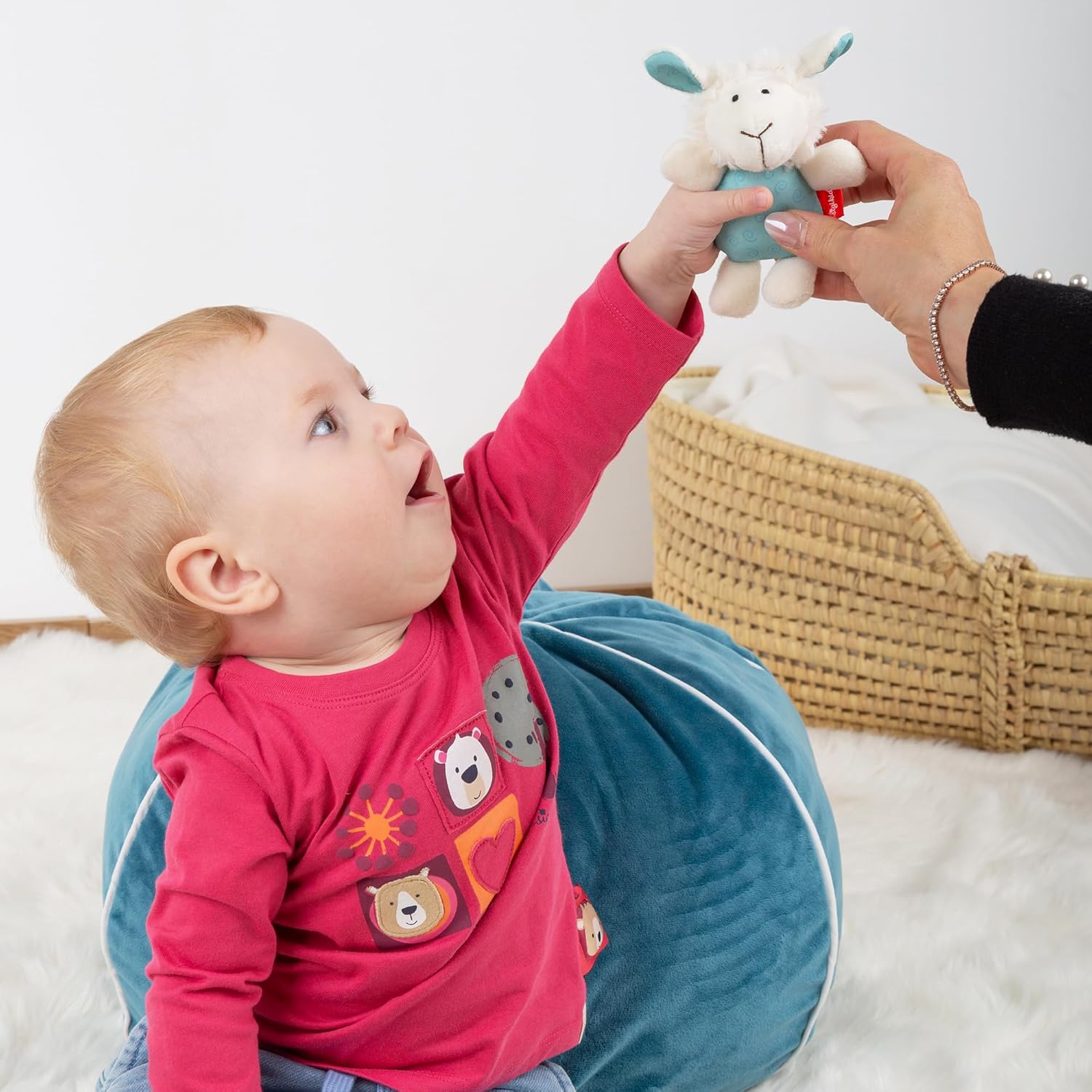 Afferra e scopri con tutti i sensi: molteplici possibilità di afferrare, succhiare e mordere; il sonaglio all'interno garantisce esperienze acustiche e invita a scoprire Maneggevole e leggero: il sonaglio leggero da 13 cm con la sua forma sottile è facile da afferrare e tenere in mano dalle piccole mani del bambino Regalo per nascita o battesimo – Dolce sonaglio per neonati e bambini, graziosa pecora in bianco/turchese Sicurezza e manutenzione: sicurezza testata secondo la normativa europea attualmente in vigore. Lavabile in lavatrice a 30 °C Contenuto della confezione: 1 Sigikid pecora turchese; età consigliata: 3 – 24 mesi, massima qualità e sicurezza nel materiale e nella lavorazione: testato più volte, sostenibile e durevole; lavabile a 30 °C; codice articolo: 43539