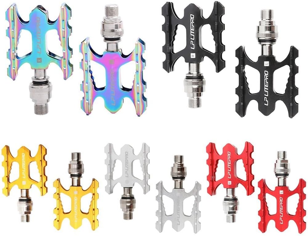 Ultraleggeri e realizzati in lega di alluminio, questi pedali per bici non sono solo leggeri, ma anche molto elevati. Sono antigraffio e resistenti all'usura, un'esperienza di guida sicura e duratura. Presa e stabilità migliorate: caratterizzati da un design antiscivolo e cuscinetti sigillati DU, questi pedali offrono una presa e una stabilità superiori. I chiodi antiscivolo offrono un calpestio sicuro, mentre la lubrificazione risparmio di lavoro dei cuscinetti DU migliora l'efficienza. Design resistente alle intemperie: dotati di coperture antipolvere in lega di alluminio, questi pedali impediscono efficacemente l'ingresso di polvere e pioggia, prolungando la durata del pedale. Guida senza preoccupazioni in varie condizioni atmosferiche. Ampia compatibilità: con un diametro di installazione di 14 mm, questi pedali sono adatti per biciclette pieghevoli, mountain bike e bici da strada. Goditi la versatilità e la funzionalità su diversi tipi di bici. Comodo sgancio rapido: progettati con un meccanismo di sgancio rapido, questi pedali possono essere facilmente installati o rimossi utilizzando la testa a sgancio rapido. La fibbia a sgancio rapido garantisce un funzionamento senza problemi.