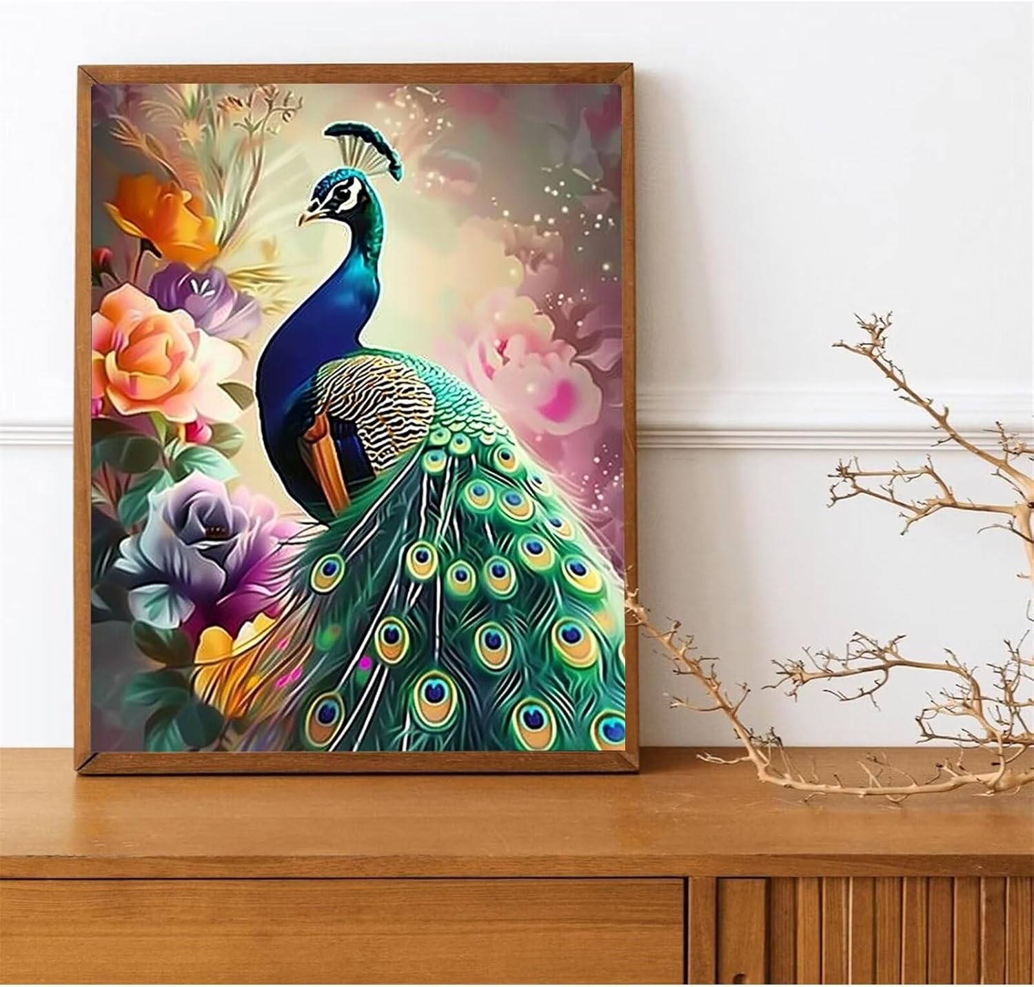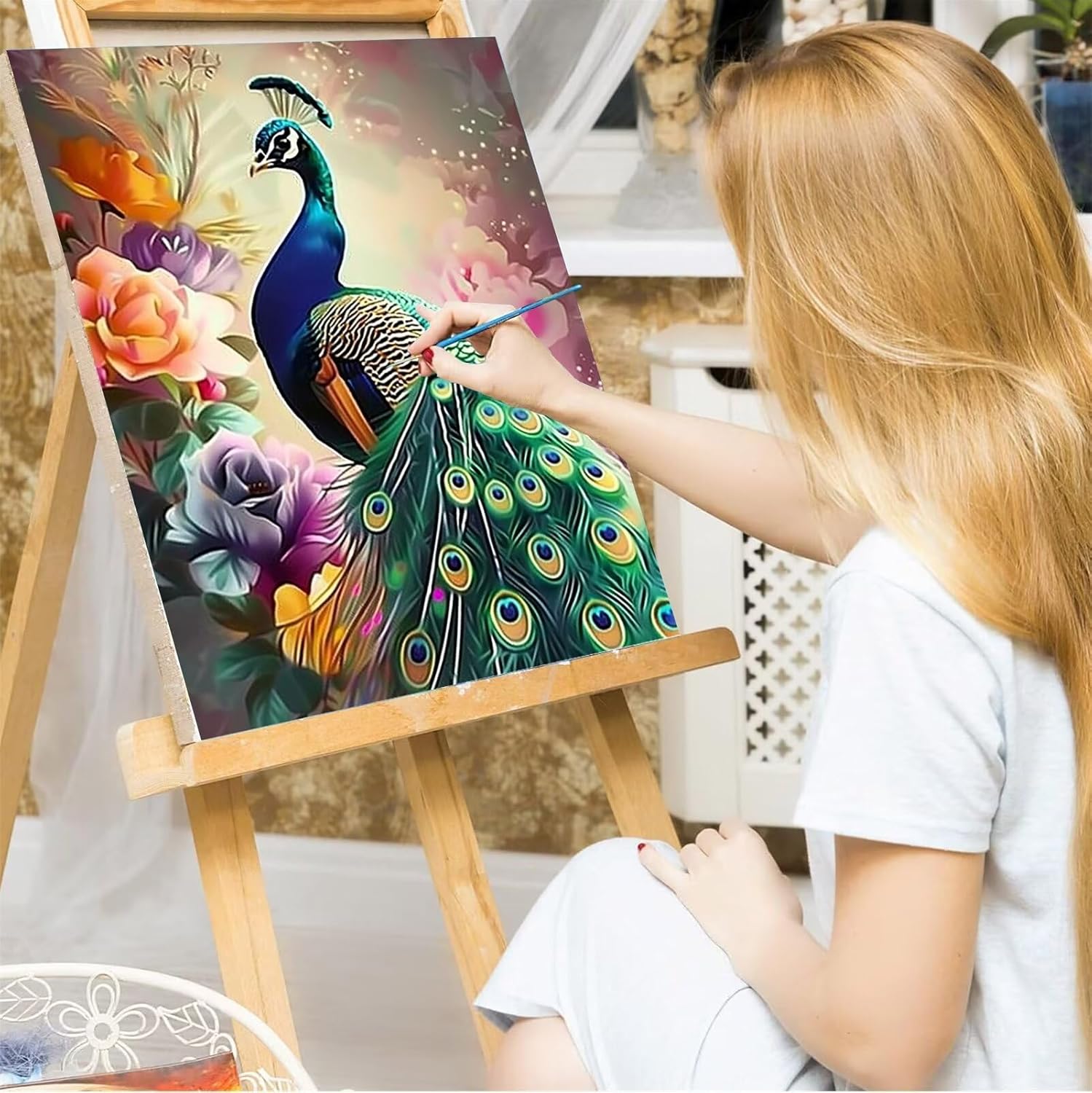 Peepezo Dipingere con i Numeri Pavone Cornice di Legno Pittura su Tela per Adulti e Bambini con Colori Acrilici e spazzole (Nuvole) 40x50cm (Con Scatola)