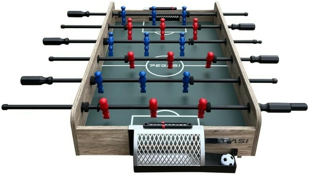 ALTA QUALITÀ: questo tavolo da biliardino Pegasi è di alta qualità. La struttura robusta del tavolo consente molti giochi intensivi! MINI CALCIO BALILLINO: Questo mini calcio balilla della Pegasi è adatto a tutti coloro che amano fare una veloce partita a calcio balilla! Grazie al suo design compatto, puoi posizionarlo facilmente sul tuo tavolo o tavolino. GIOCA CON I TUOI AMICI: il design compatto rende facile portare questo mini biliardino ai tuoi amici per una bella partita a biliardino. DIMENSIONI: Misurando 81 x 51 x 23 cm, questo mini calcio balilla si adatta perfettamente a tavoli e tavolini. Il formato mini rende ancora più divertente giocare contro i tuoi amici! PACCHETTO COMPLESSO: Tutto il necessario per una bella partita a calcio balilla è compreso in questo pacchetto. Include palline e una rete cromata per un divertimento ancora maggiore!