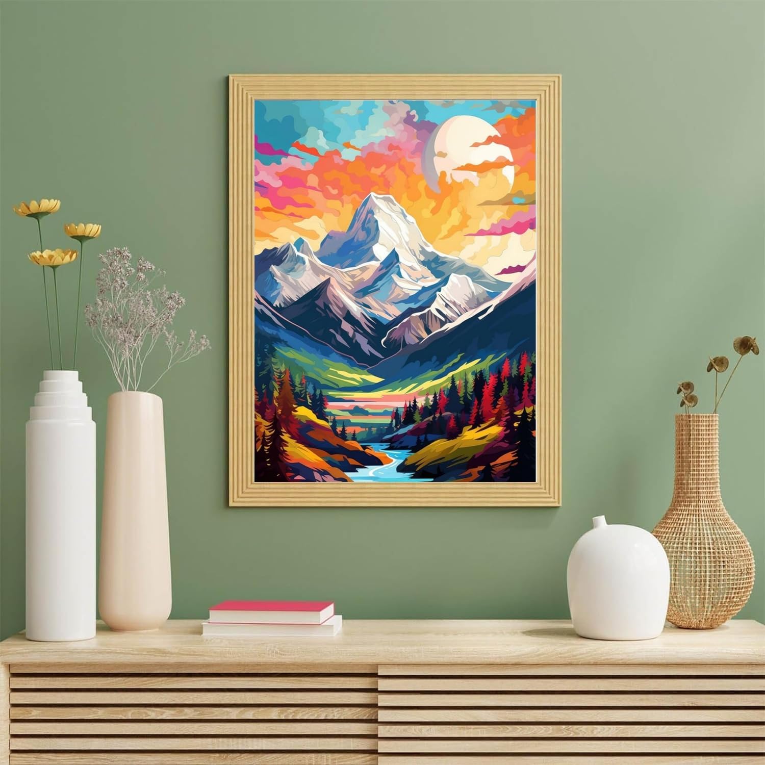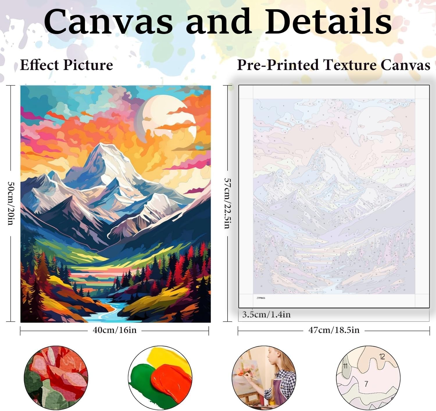 🎨KIT DI PITTURA PER NUMERO - Riceverete 1 tela testurizzata (senza cornice), 3 pennelli di qualità superiore, 1 set di pigmenti acrilici, 1 versione cartacea numerata di riferimento, 1 immagine cartacea del prodotto, 2 set di viti e ganci metallici per l'appendimento. 🎨COLORI ACRILICI AMBIENTALI - Vernice acrilica di alta qualità, sicura e non tossica, ma non commestibile. Il colore è sufficiente e può coprire bene linee e numeri. 🎨COLORI ACRILICI AMBIENTALI - Vernice acrilica di alta qualità, sicura e non tossica, ma non commestibile. Il colore è sufficiente e può coprire bene linee e numeri. 🎨DIVERTIMENTO E RILASSAMENTO - Vi piacerebbe possedere un capolavoro creato da voi? Questo set di pittura a olio fai da te è perfetto per rilassarsi. Potrete godere appieno della pittura, rilassarvi, alleviare lo stress e sviluppare la pazienza per la pittura. 🎨GRANDE REGALO - Questo PAINT BY NUMBER viene fornito in una bellissima custodia ed è il regalo perfetto per Natale, festa della mamma, compleanni e altro ancora.