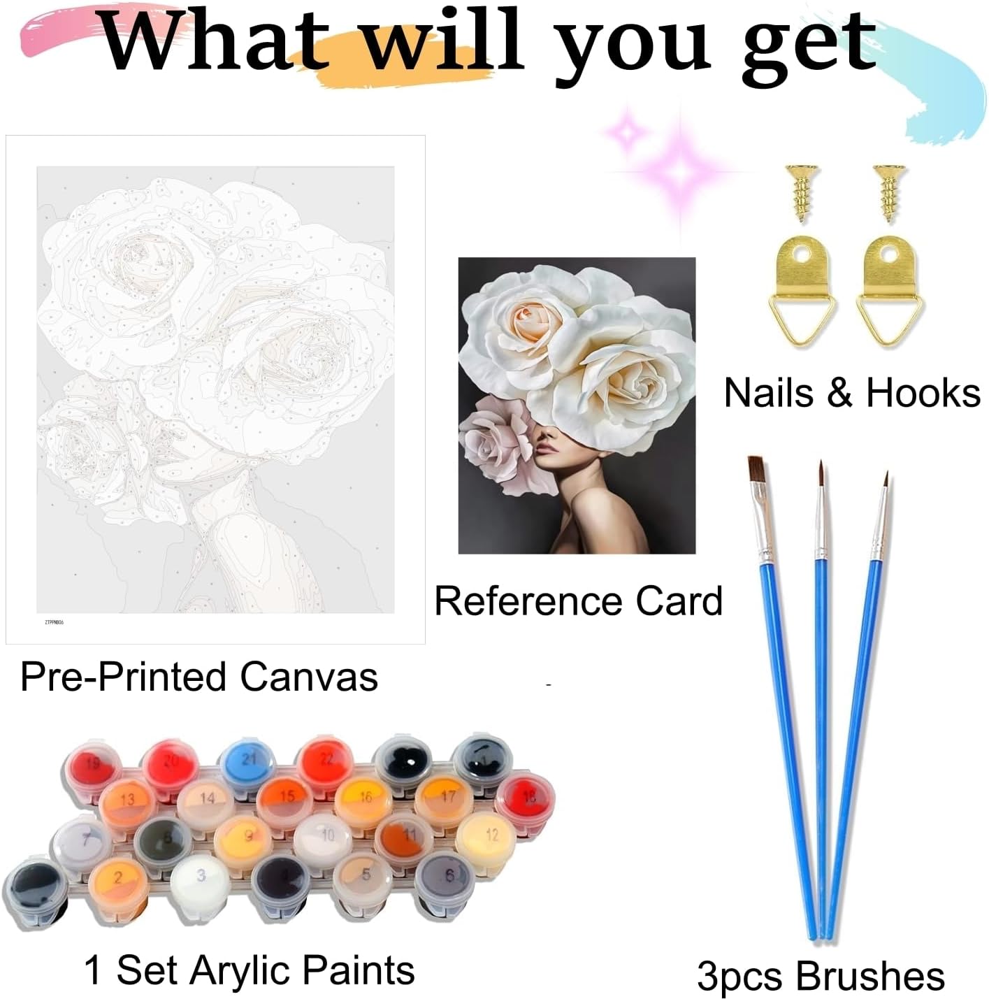 🎨KIT DI PITTURA PER NUMERO - Riceverete 1 tela testurizzata (senza cornice), 3 pennelli di qualità superiore, 1 set di pigmenti acrilici, 1 versione cartacea numerata di riferimento, 1 immagine cartacea del prodotto, 2 set di viti e ganci metallici per l'appendimento. 🎨COLORI ACRILICI AMBIENTALI - Vernice acrilica di alta qualità, sicura e non tossica, ma non commestibile. Il colore è sufficiente e può coprire bene linee e numeri. 🎨COLORI ACRILICI AMBIENTALI - Vernice acrilica di alta qualità, sicura e non tossica, ma non commestibile. Il colore è sufficiente e può coprire bene linee e numeri. 🎨DIVERTIMENTO E RILASSAMENTO - Vi piacerebbe possedere un capolavoro creato da voi? Questo set di pittura a olio fai da te è perfetto per rilassarsi. Potrete godere appieno della pittura, rilassarvi, alleviare lo stress e sviluppare la pazienza per la pittura. 🎨GRANDE REGALO - Questo PAINT BY NUMBER viene fornito in una bellissima custodia ed è il regalo perfetto per Natale, festa della mamma, compleanni e altro ancora.