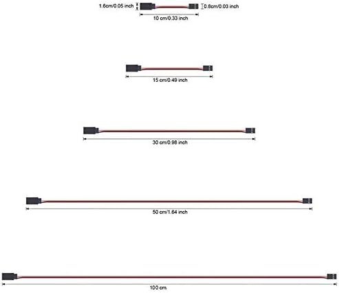 Buon connettore: il connettore di questi fili è un connettore in stile Futaba a 3 pin, e ha un angolo, nel caso in cui venga installato in modo errato, molto conveniente Caratteristica: di prolunga servo femmina-: dotato di connettore femmina da un lato e connettore dall' lato, può essere collegato al set ricevente e al motore dello sterzo Quantità: questo pacchetto include 25 pezzi di prolunga per servo femmina / , sufficienti per l'uso, lunghezze diverse per soddisfare le diverse esigenze Ampia applicazione: questi cavi di estensione servo possono essere applicati per servo Futaba e JR, collegamento servo aereo o elicottero o collegamento ricevitore, auto , auto RC