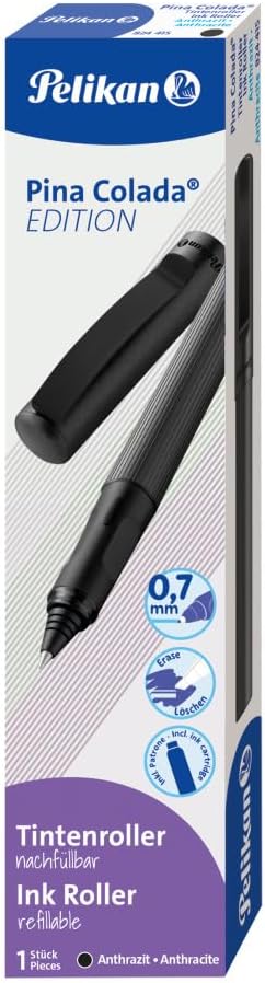 Penna roller Pina Colada Edition; colore antracite metallizzato Fusto strutturato Incl. 1 piccola cartuccia d'inchiostro blu, cancellabile Ricaricabile, super leggero Impugnatura sagomata adatta per mancini e destrorsi