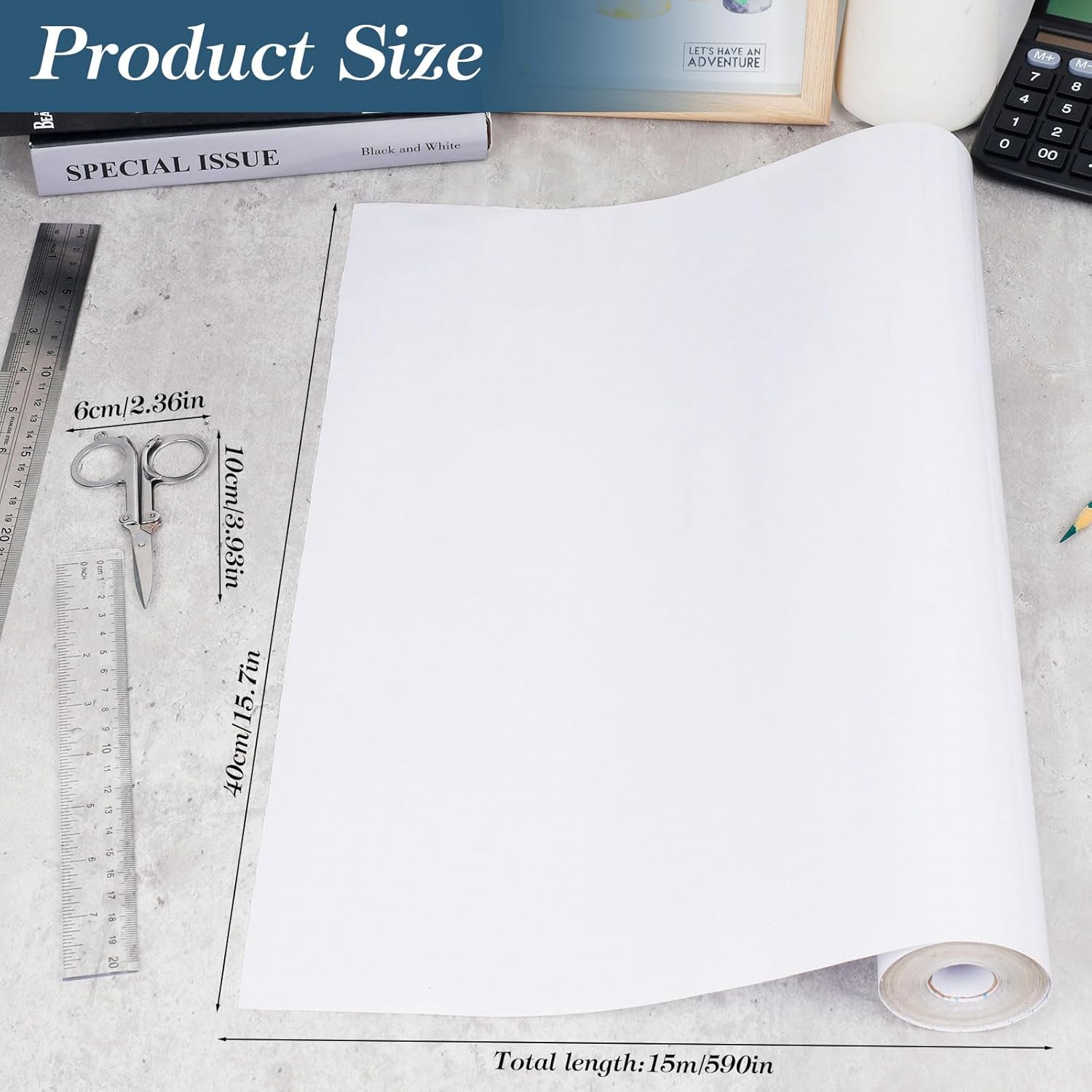 PELLICOLA ADESIVA IMPERMEABILE: la pellicola autoadesiva per libri è realizzata in cpp con uno spessore di 0,08 mm, trasparente e lucida, incollata in modo permanente. Protegge efficacemente i libri da strappi, umidità, polvere e acqua. Inoltre, può essere facilmente rimossa senza lasciare residui di colla. STRUMENTI INCLUSI: il kit comprende un coltello pieghevole e un righello oltre al rotolo di pellicola autoadesiva. Il coltello pieghevole misura 10*6 cm ed è realizzato in acciaio inossidabile, mentre il righello misura 20 cm di lunghezza. PROTEZIONE DURATURA: la pellicola autoadesiva per libri fornisce una protezione permanente per la copertina del libro. Con una semplice applicazione e l'aiuto del coltello pieghevole e del righello, è possibile eliminare facilmente le bolle d'aria e ottenere una finitura uniforme per la copertina del libro. Protegge i libri da pieghe, strappi e angoli piegati. ADATTA A TUTTI I TIPI DI LIBRI: questa pellicola è adatta a qualsiasi tipo di libro, compresi quaderni, mappe, libri di testo, diari e altro ancora. È ideale per l'uso in case, scuole, uffici, biblioteche e archivi. FACILE DA USARE: la pellicola autoadesiva presenta linee di griglia sulla carta di supporto per facilitare il taglio e la misurazione. Il coltello pieghevole e il righello aiutano a tagliare e ad adattare la pellicola con precisione. Si prega di notare che il coltello pieghevole presenta uno strato di olio sulla superficie per facilitare il taglio, basta pulirlo prima dell'uso.