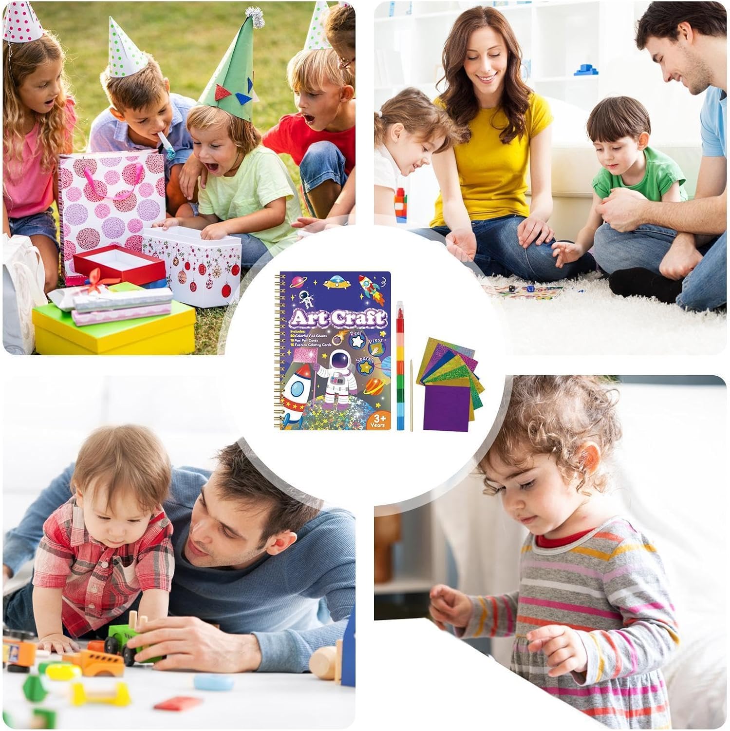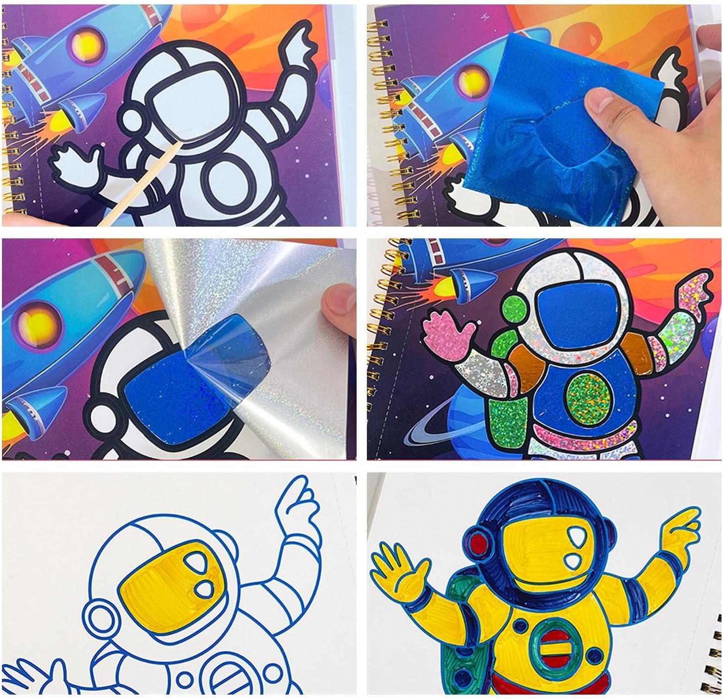 Promuove splendide opere d'arte: il nostro kit di pellicole per bambini include una varietà di adesivi e materiali ricchi che consentono ai bambini di creare capolavori unici. Con una serie di scene e sfondi diversi, questo set stimola la creatività e crea splendide opere d'arte Qualità sicura: con materiali sicuri che garantiscono una lunga durata e prevengono danni, la nostra arte della pellicola per bambini lascia libero sfogo all'immaginazione. La lavorazione della nostra carta e adesivo di alta qualità favorisce la creatività con colori brillanti e resistenti allo sbiadimento Design multifunzionale: un set di pellicole versatili per la creatività dei bambini ed è perfetto per progetti artigianali a casa, a scuola o durante i giochi. Utilizzabile come decorazione per diario, confezione regalo o decorazione della stanza. Puntelli o premi ideali per le attività in classe Incoraggia l'apprendimento interattivo: con questo set interattivo di arte diapositiva puoi dare libero sfogo alla tua immaginazione e stimolare la tua creatività. Progettato per promuovere lo sviluppo completo dei bambini, migliora la coordinazione occhio-mano e il riconoscimento del colore e della forma, garantendo un gioco divertente ed educativo Facile da trasportare: il nostro set di pellicole artistiche per bambini è progettato per ore di divertimento a casa o in viaggio. Grazie alle sue caratteristiche portatili e leggere, è facile da trasportare e riporre e giocare in qualsiasi momento. Scatena la creatività del tuo bambino e divertiti all'aperto con questa emozionante attività