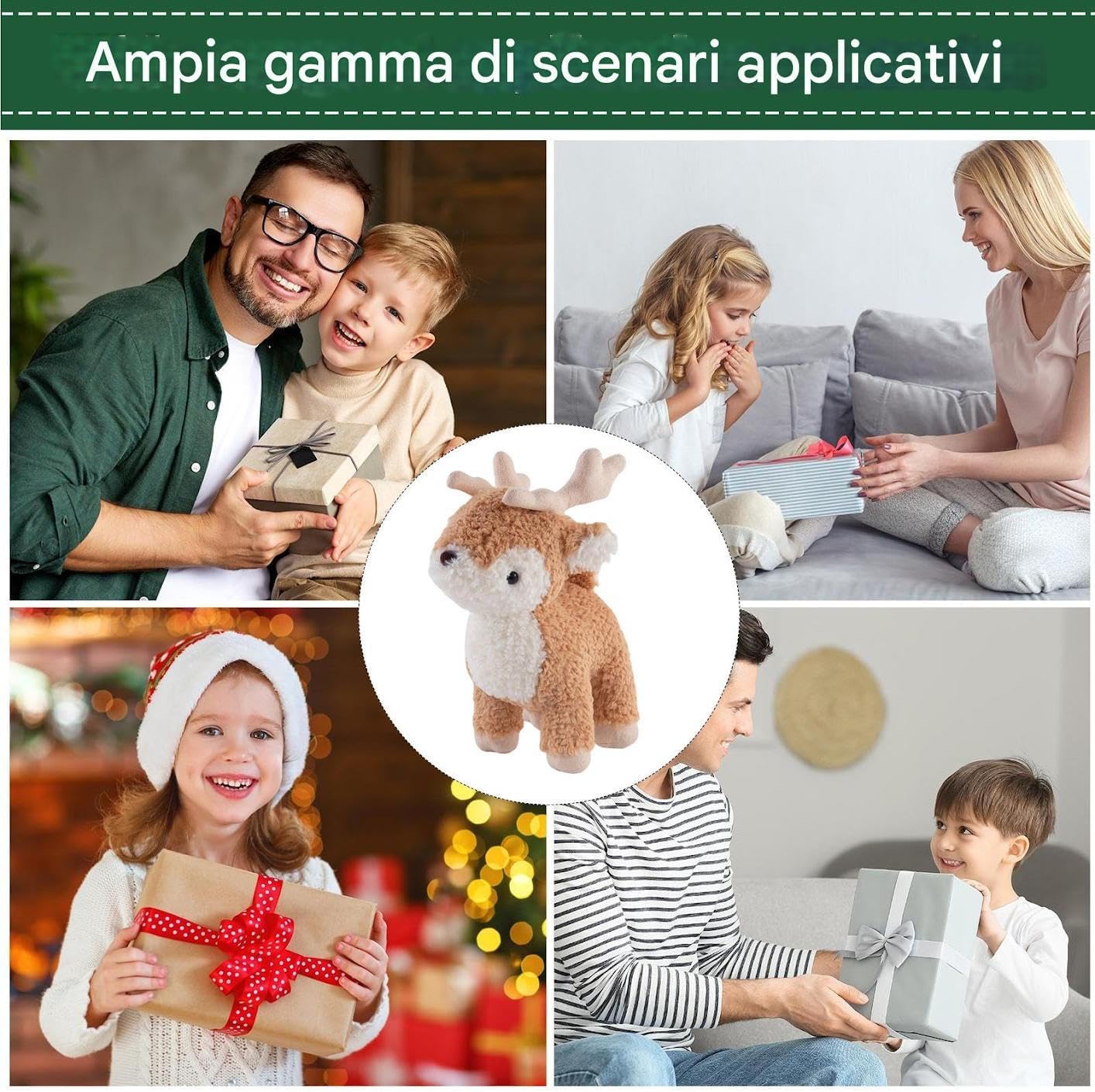 Dettagli Realistici del Peluche: Questo peluche renna è realizzato con una lavorazione meticolosa, focalizzata sulla riproduzione fedele di ogni dettaglio minuzioso, creando un design che valorizza i momenti di narrazione o le esposizioni festive in casa. La sua attenzione ai particolari realistici lo rende adatto per arricchire storie serali o abbellire gli spazi durante le ricorrenze, offrendo un tocco di autenticità e dolcezza per giochi o decorazioni stagionali. Arricchimento per Ambienti: Il peluche renna aggiunge carattere e creatività alla tua decorazione, rendendolo ideale per ravvivare le collezioni negli spazi vivibili come ambienti divano, camera da o auto. Offre un tocco accogliente e immaginativo ovunque venga posizionato, trasformando ogni area in un luogo più vivace e ispirante con la sua presenza unica e coinvolgente. Texture Delicata e Soffice: Caratterizzato da un tocco vellutato e morbidissimo, questo peluche renna offre una morbidezza e un comfort ineguagliabili, accentuando il suo appeal come articolo decorativo versatile o giocattolo da . Porta calore e benessere a soggiorni, camerette o stanze da , creando un'atmosfera di pace in ambienti quotidiani e favorendo il relax in ogni momento della giornata. Conforto nei Momenti di Noia: Il peluche di renna è creato per donare ai bambini un senso di vicinanza e calore, servendo come partner coinvolgente che apporta felicità e mitiga la monotonia durante le giornate lunghe o poco stimolanti, favorendo relax e serenità attraverso il suo abbraccio morbido e piacevole che trasforma istanti noiosi in occasioni di gioia. Vasta Gamma Applicativa: Questo peluche renna è ampiamente utilizzato da bambini e adulti, offrendo divertimento aggiuntivo per compleanni, San o come regalo per ragazze e piccoli. La sua versatilità lo rende un compagno ideale in molte situazioni, portando gioia e serenità in casa o durante gli spostamenti, sempre pronto a essere un tesoro quotidiano che unisce praticità e allegria senza sforzo.