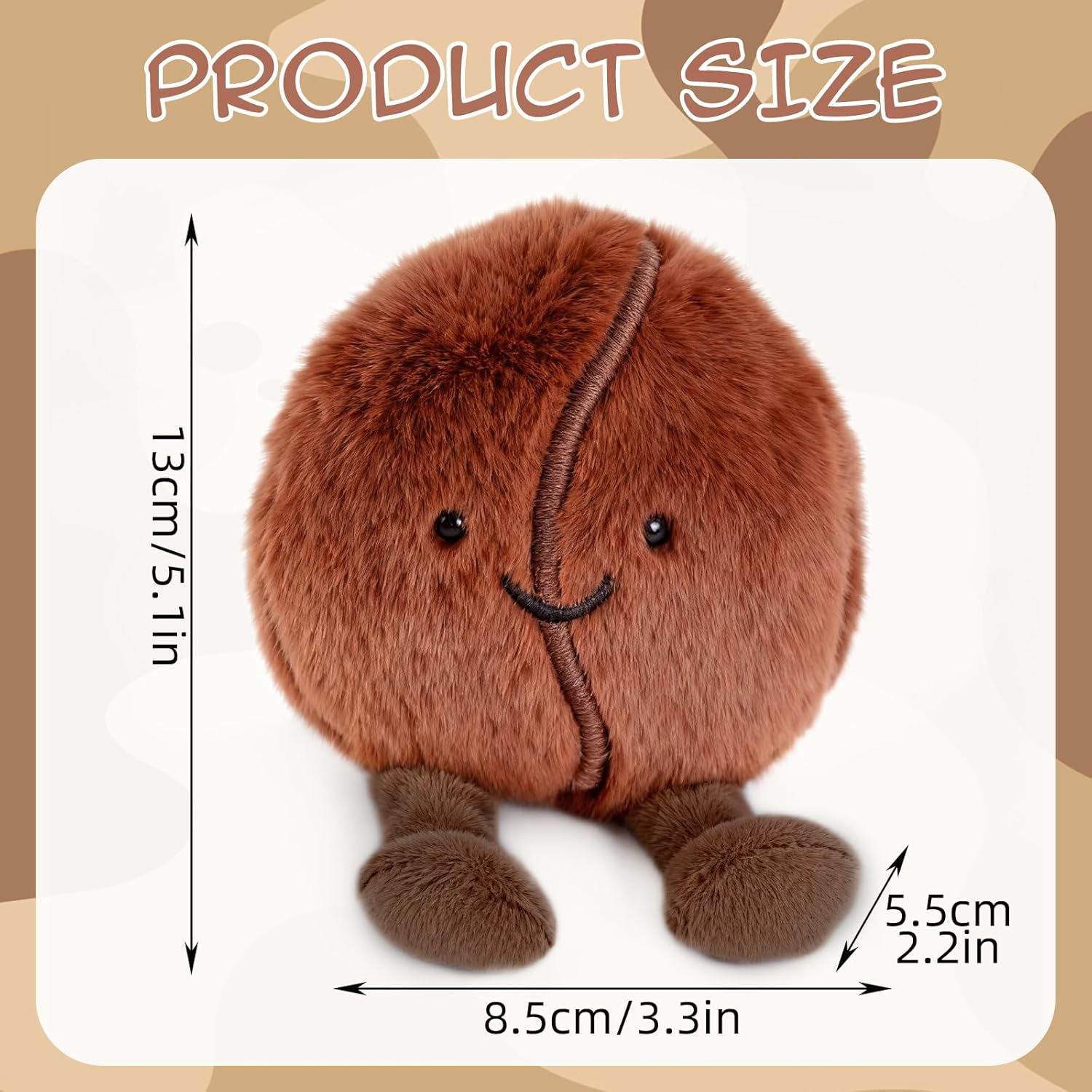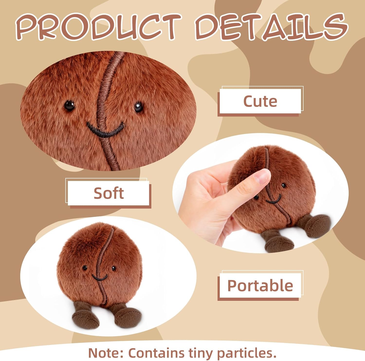 Design morbido e accattivante: questo grazioso peluche a forma di chicco di caffè colpisce per il suo design accattivante e la consistenza soffice, rendendolo ideale come compagno quotidiano per bambini e adulti. Materiali di alta qualità: realizzato in peluche piacevolmente morbido e resistente, la meticolosa lavorazione artigianale garantisce un aspetto curato nei dettagli e accattivante. Versatile: perfetto come decorazione per la camera da letto, l'ufficio o come compagno di viaggio; porta gioia e comfort nella vita di tutti i giorni ed è anche un'ottima idea regalo. Facile da pulire: facile da pulire e dimensionalmente stabile, mantiene il colore e la consistenza anche con un uso regolare grazie alla sua struttura robusta. Regalo ideale: che sia per un compleanno, Natale o altre occasioni speciali, questo peluche a forma di chicco di caffè strapperà un sorriso a chiunque ed è un adorabile oggetto da collezione.