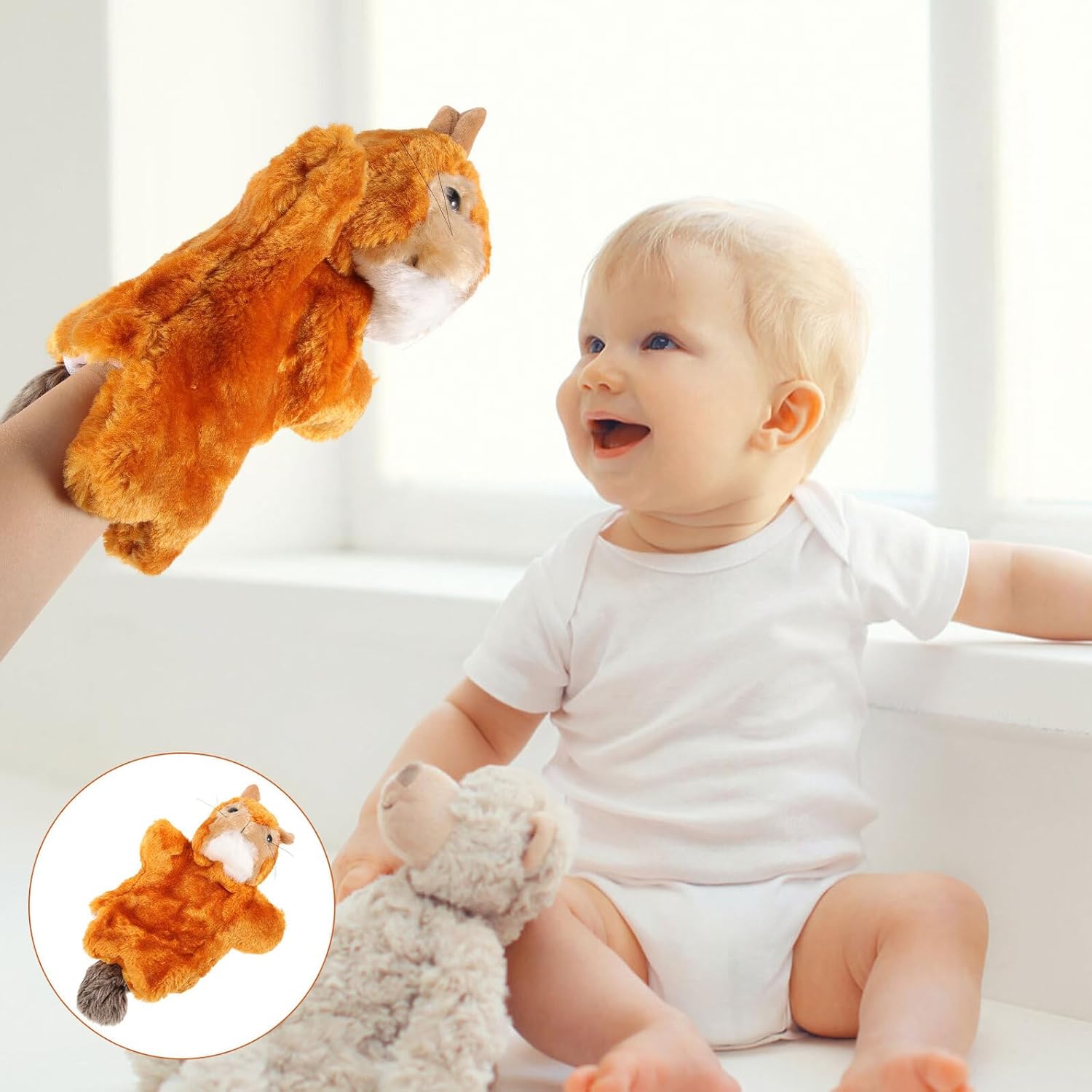 Bambola narrativa - utile per migliorare la relazione genitore-figlio e aiutare i genitori a legare con i loro figli, Marionette a mano con animali Giocattoli narrativi - Con questa marionetta di peluche puoi portare più sorpresa e sorpresa ai tuoi bambini, Marionette a mano Marionette a mano per - perfette per o compleanno, possono essere usate anche come per la prima educazione, Marionette da dito scoiattolo - possono essere condivise con gli amici o gli adulti interagiscono attraverso le marionette per bambini quando sono a casa, in classe o a una festa, marionette da dito scoiattolo giocattoli per bambini: il bellissimo burattino da dito può attirare l'attenzione del bambino e anche calmare le emozioni del bambino, simpatico burattino imbottito