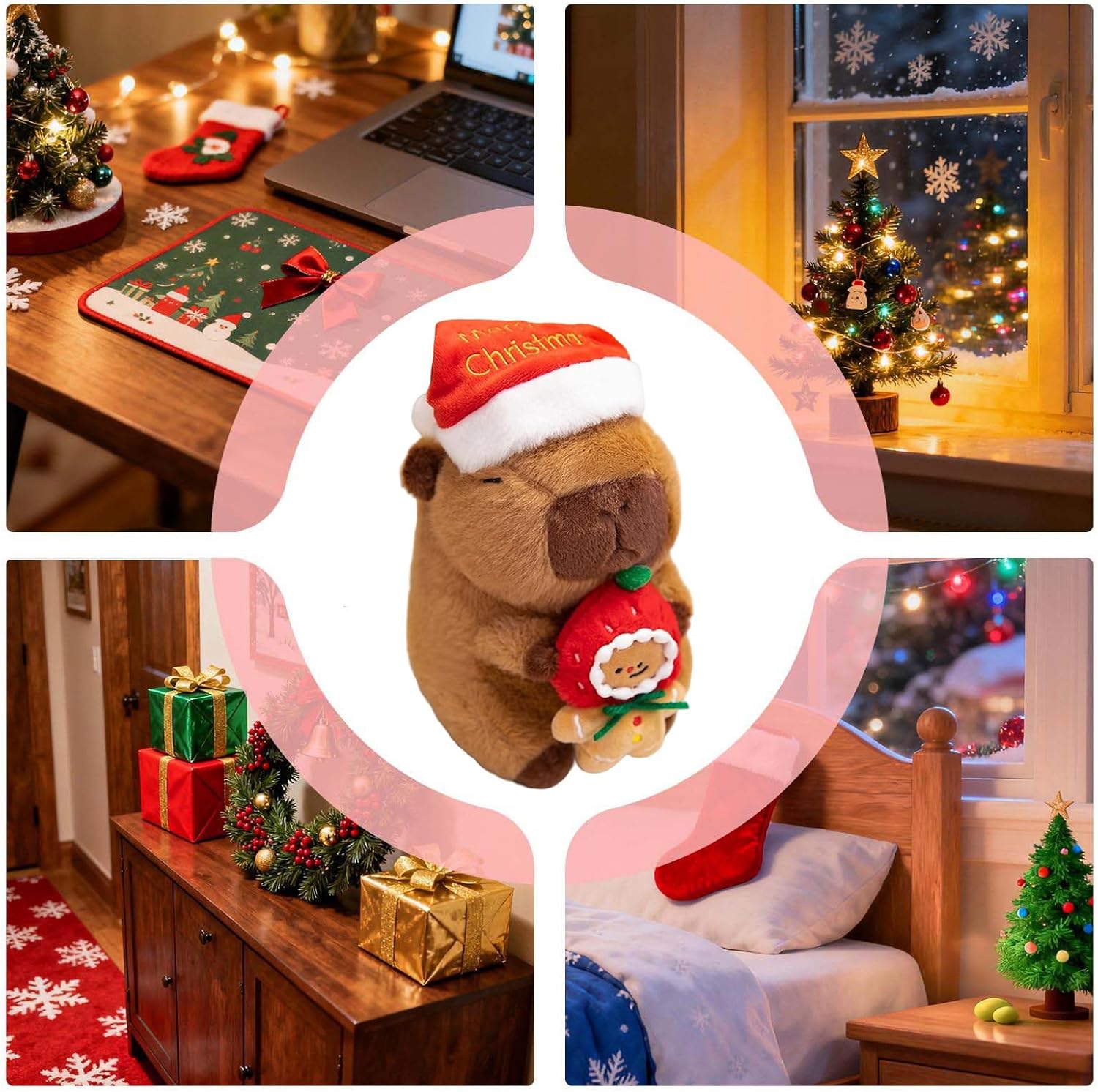 Comfort emotivo del peluche: questo tenero peluche capibara è stato progettato per servire come aiuto per il sonno notturno e fornisce una sensazione di sicurezza grazie alla sua consistenza morbida e alla presenza calmante. Assicura ai bambini un sonno tranquillo e l'equilibrio emotivo durante il passaggio al letto o durante le paure notturne, rendendolo un compagno ideale per la nanna e fornendo comfort emotivo. Durata e stabilità dimensionale: il simpatico peluche Capybara ha una cucitura rinforzata che garantisce stabilità dimensionale e durata a lungo termine durante un uso intensivo. È resistente all'usura durante il gioco quotidiano o la decorazione e mantiene il suo aspetto affascinante per bambini e collezionisti in vari ambienti come la casa o l'aula. Grazie a questa lavorazione robusta, offre un piacere duraturo e rimane attraente per anni, senza essere eccezionalmente morbido: progettato con una consistenza di peluche morbida come una nuvola, il peluche Capybara garantisce il massimo comfort ed è un compagno affidabile per addormentarsi in sicurezza. Fornisce una luce calda per alleviare lo stress durante le serate tranquille o le riunioni di famiglia. L'eccellente morbidezza garantisce un confortevole relax e gioia. Stimolatori dell'umore stagionali: caratterizzato dal design del cappello natalizio Capybara, questo peluche Capybara è progettato per migliorare le decorazioni natalizie festive aggiungendo calore a qualsiasi ambiente. Il suo ruolo di decorazione per albero di peluche lo rende un pezzo decorativo ideale che porta gioia e intimità alle riunioni di famiglia o agli eventi stagionali e migliora naturalmente lo spirito natalizio. Aspetto accattivante: questo peluche Capybara offre una presenza visiva giocosa combinata con una simpatica espressione di peluche, elevando il fascino della stanza con il suo aspetto paffuto e carino. Pensato per portare fortuna, è ideale per le camerette dei bambini, le sale giochi o le zone living condivise. L'aspetto attraente attira l'attenzione e diffonde gioia.