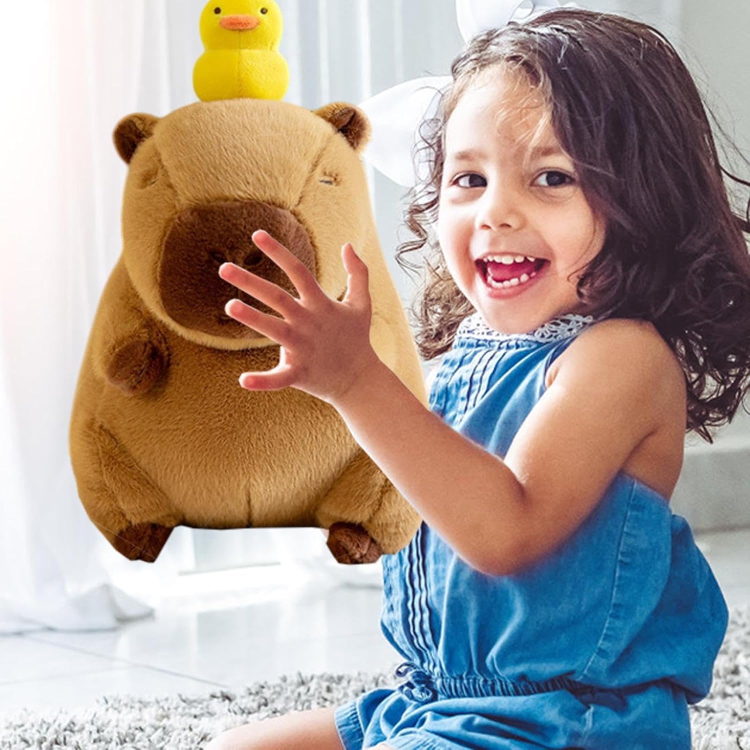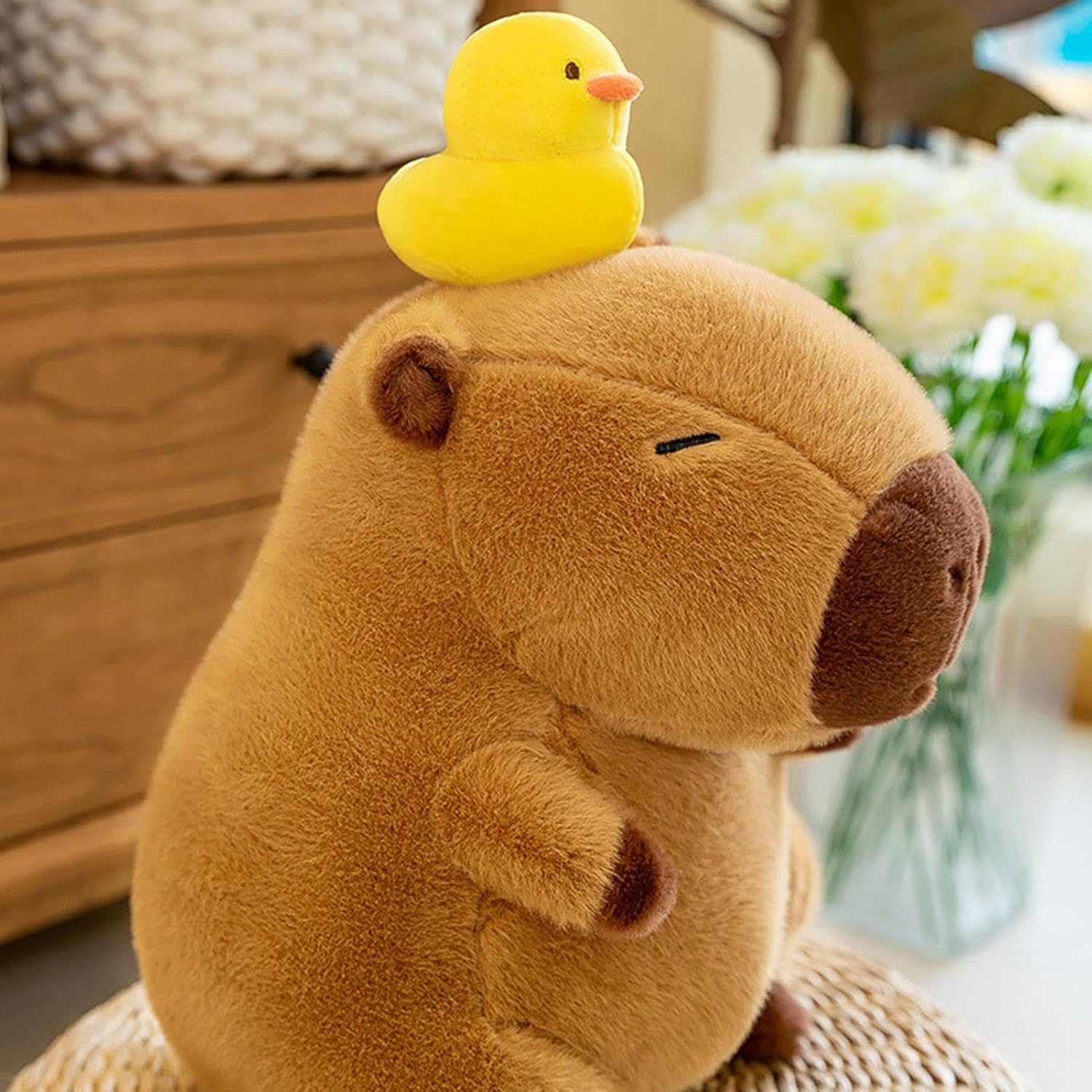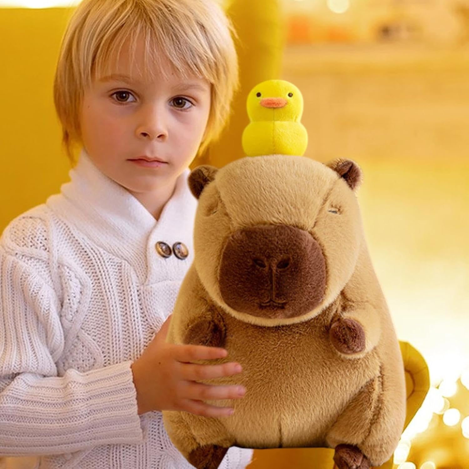 Materiale confortevole: goditi il comfort del peluche Capybara, realizzato in peluche corto e imbottitura in cotone PP. Questo peluche è progettato per il massimo comfort senza compromettere la durata. Design elegante: il nostro peluche Capybara presenta un adorabile design di capibara da cartone animato con un'anatra gialla in testa, perfetto per aggiungere un tocco giocoso e divertente alla tua vita quotidiana. Morbido e tenero, questo compagno peloso ti farà sicuramente sorridere. Pulizia senza sforzo: mantieni il tuo peluche Capybara come nuovo con una facile manutenzione in modo che non rimanga lanugine. Dì addio al fastidio della pulizia e risparmia tempo senza sforzo. Ampiamente usato: questo peluche Capybara non è solo una bambola, è una fonte di conforto per tutti. È ideale come cuscino o decorazione e delizierà ogni stanza e per tutte le età. REGALO IDEALE: il nostro peluche Capybara offre una gamma versatile di opzioni regalo allegre e pratiche per ogni occasione. È il regalo perfetto per compleanni e festività, rendendolo il regalo ideale per qualsiasi fascia d'età