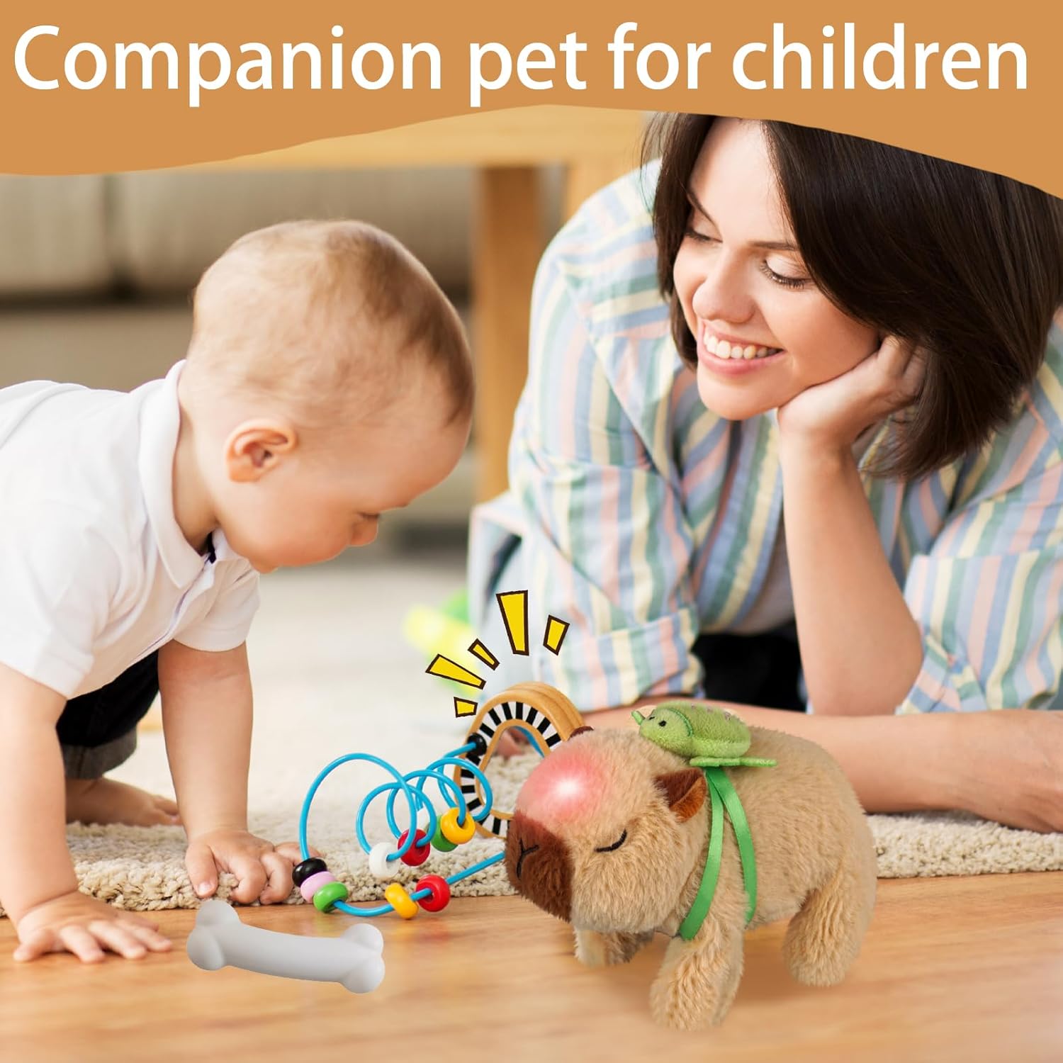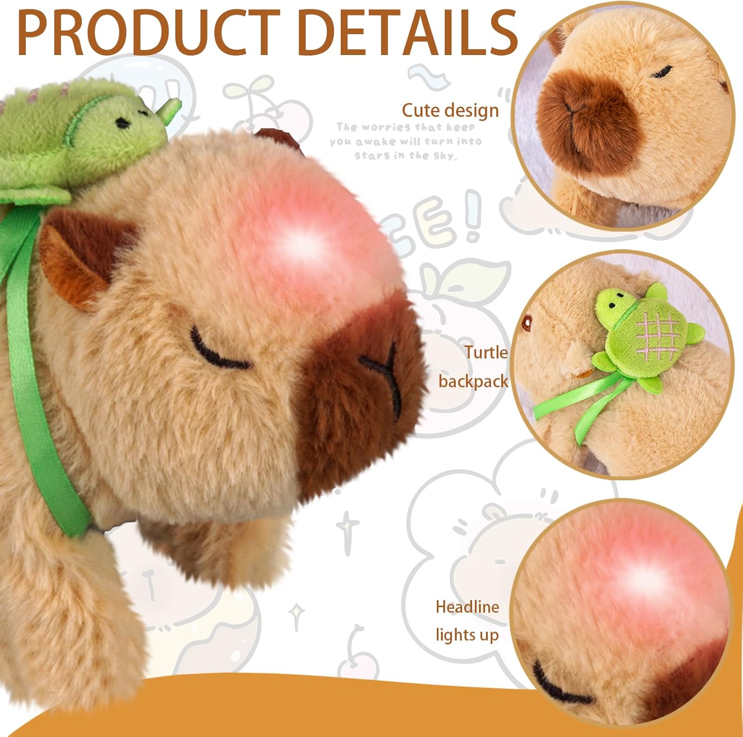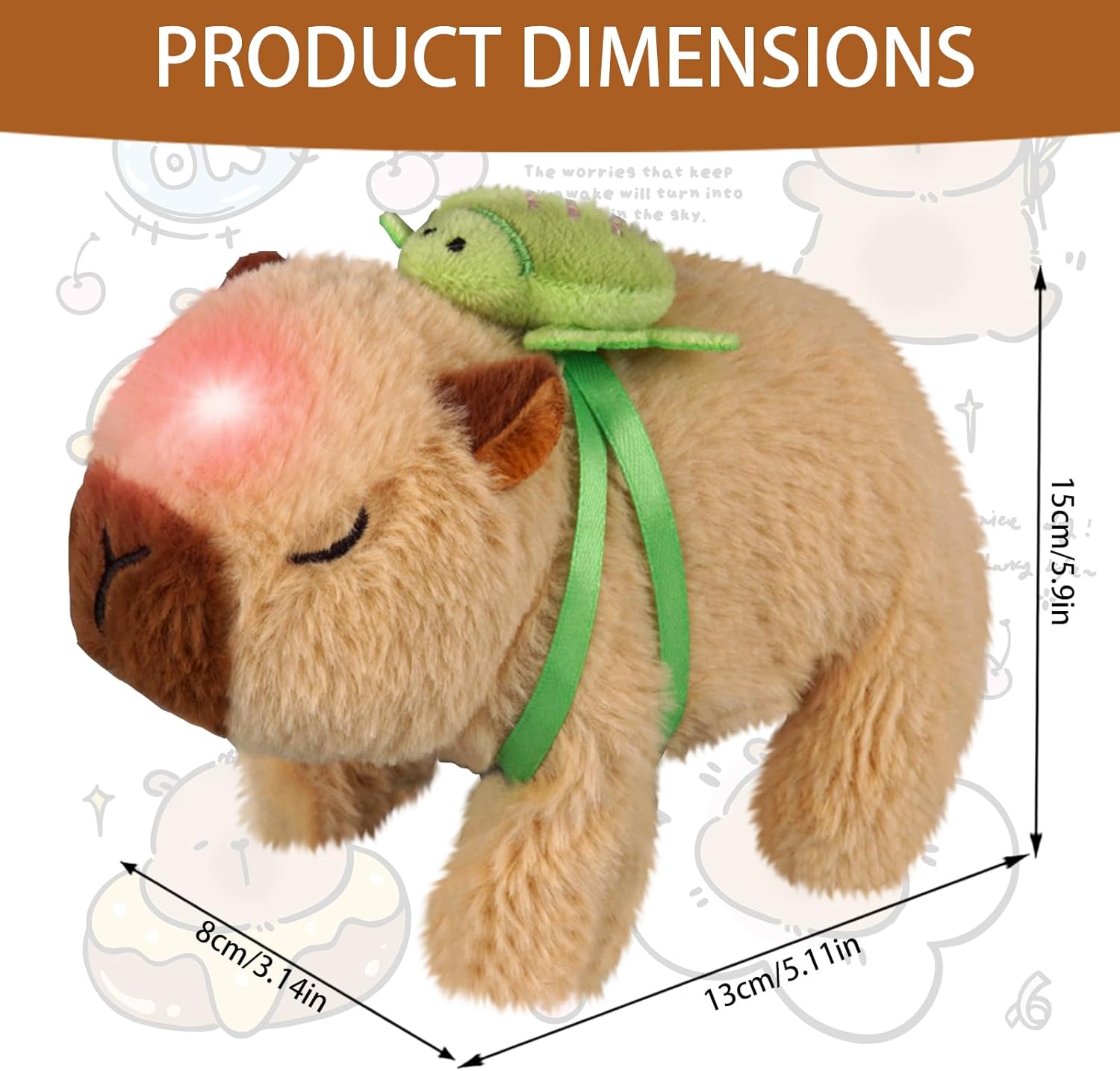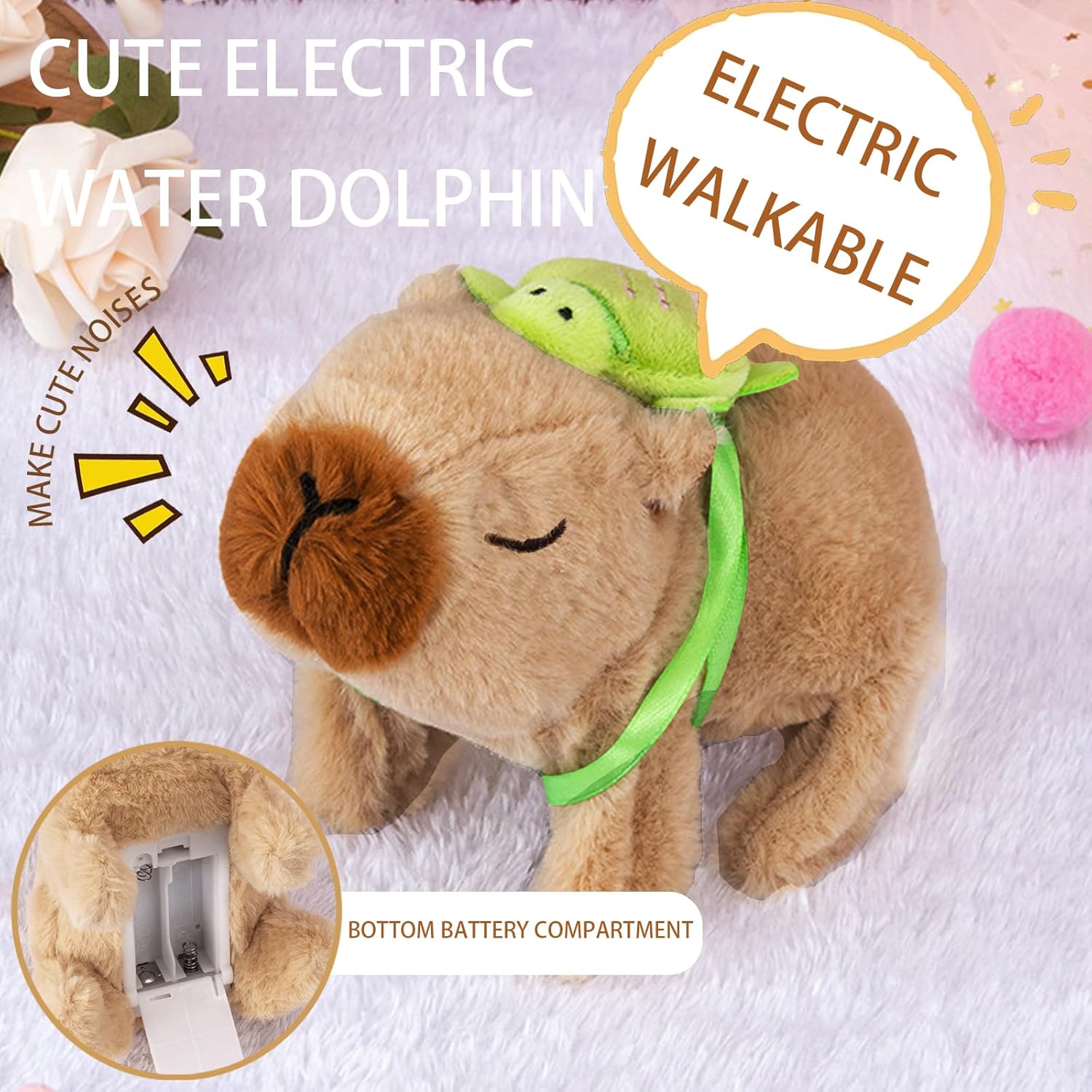 【Modellazione simulata】Il capibara peluche è realizzato in morbido tessuto a pelo corto, comodo e delicato sulla pelle. La forma riflette le caratteristiche del capibara, con il suo corpo rotondo, gli arti corti e l'espressione iconica. 【Cammina e abbaia】Il peluche capibara è dotato di un motore di precisione integrato che, una volta acceso, simula i movimenti lenti e veloci del capibara con movimenti delicati e carini. (Batterie non incluse: 2 batterie AA) 【Richiami carini】Fai scorrere l'interruttore sul fondo del peluche del capibara per emettere un dolce suono. Masticarlo aumenta l'interattività e dona un senso di comfort. È più di un semplice giocattolo statico: è un vivace animale domestico elettronico che porta vita e divertimento senza fine nella tua stanza. 【Accompagnare e guarigione】Il peluche capybara tartaruga non è solo un giocattolo, ma anche un veicolo di compagnia emotiva. Il suo rilassamento e la sua stabilità emotiva possono aiutare ad alleviare lo stress e fornire conforto psicologico, soprattutto per i giovani. 【Regalo perfetto e decorazione creativa】Questo giochi neonato, che combina il popolare tema del capibara, divertenti funzioni elettriche e un tocco morbido, è una scelta unica per compleanni, feste e regali di laurea. Non è solo un giocattolo da sogno per i bambini, ma anche un compagno di scrivania antistress e rilassante per gli adulti, ed è perfetto per video creativi sui social media.