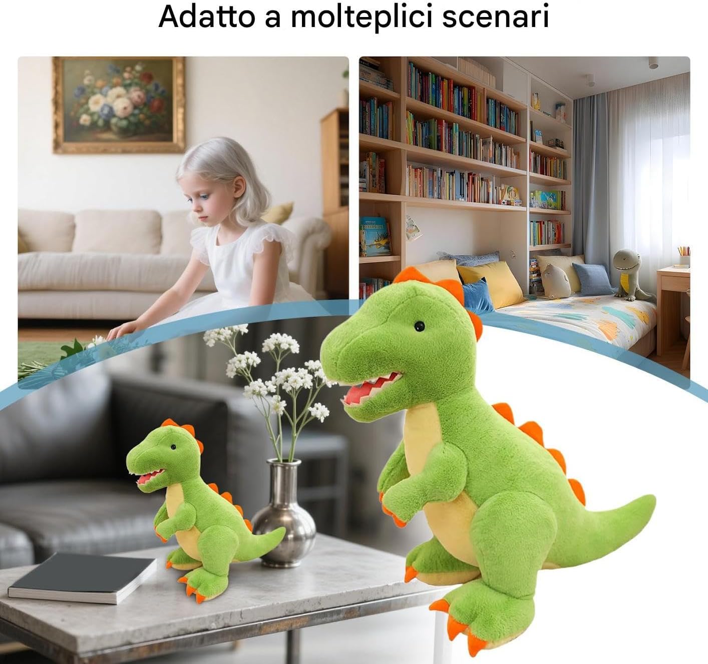 Design Stimolante Immaginazione: Morbidi giocattoli dinosauri stimolano creatività e curiosità come strumenti immaginativi, combinano interazioni divertenti con caratteristiche coinvolgenti per ore di intrattenimento Peluche Morbido: Realizzati in materiale soffice, questi dinosauri portatili sono perfetti per creare un'atmosfera serena, offrendo conforto emotivo e integrandosi con stile in ambienti decorativi allegri Compagno Divertente:Fedele amico di viaggio e decorazione accogliente per la camera questo peluche dinosauro offre momenti di gioco coinvolgenti ed è un'idea regalo versatile per ogni occasione speciale Esperienza Sensoriale Morbida: Peluche dinosauro con tessuto ultra soffice che offre una piacevole esperienza tattile calmante, ideale come compagno di rilassante per bambini e adulti di ogni età Compagno Affettivo: Favorisce i legami emozionali e arricchisce le relazioni familiari, questo peluche di dinosauro funge sia da giocattolo decorativo che da ricordo memorabile per regali tra genitori e figli.
