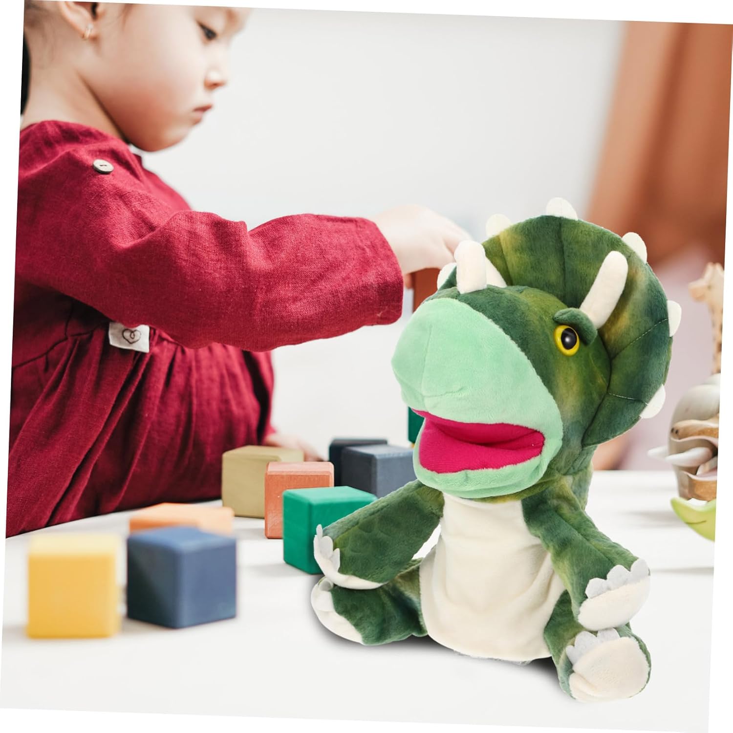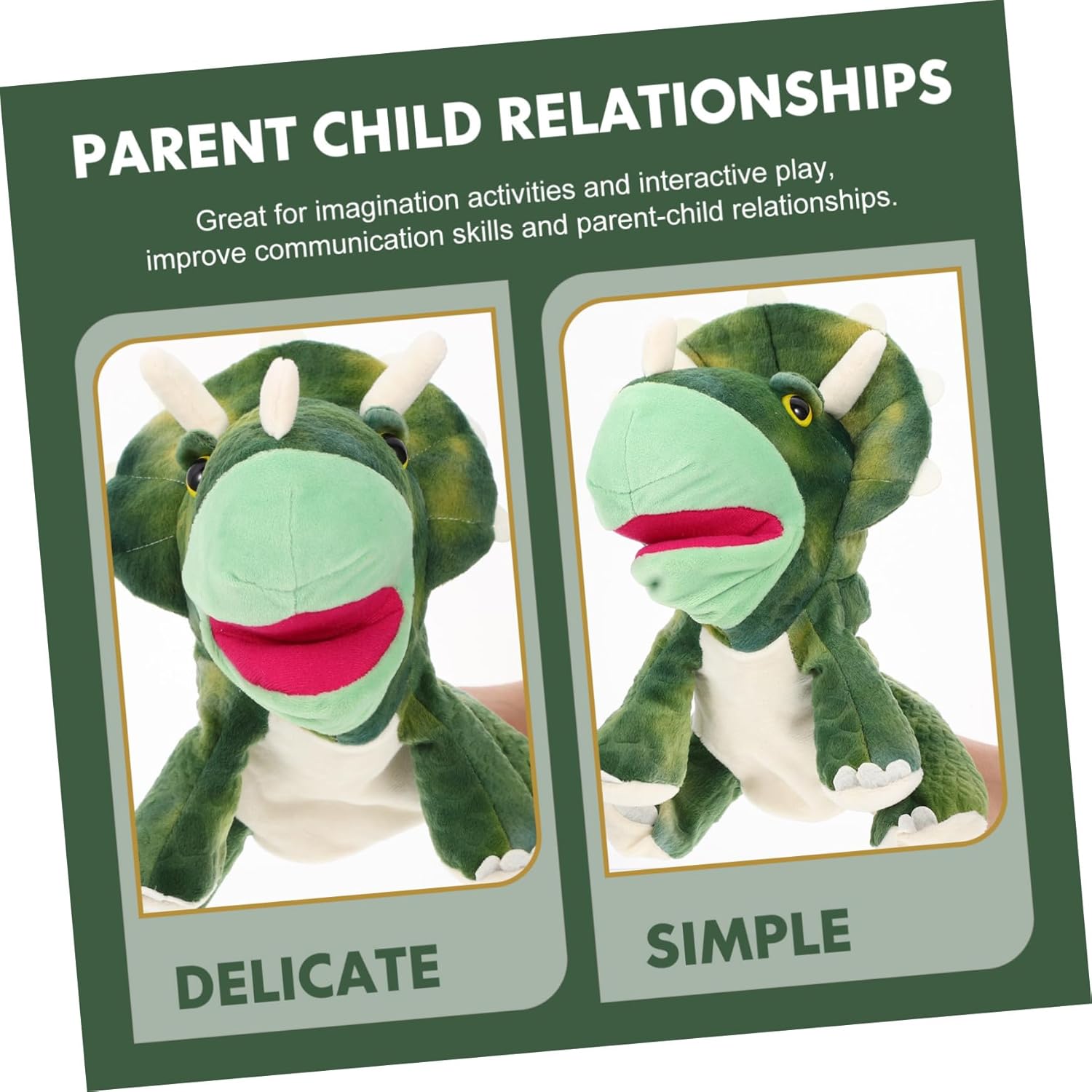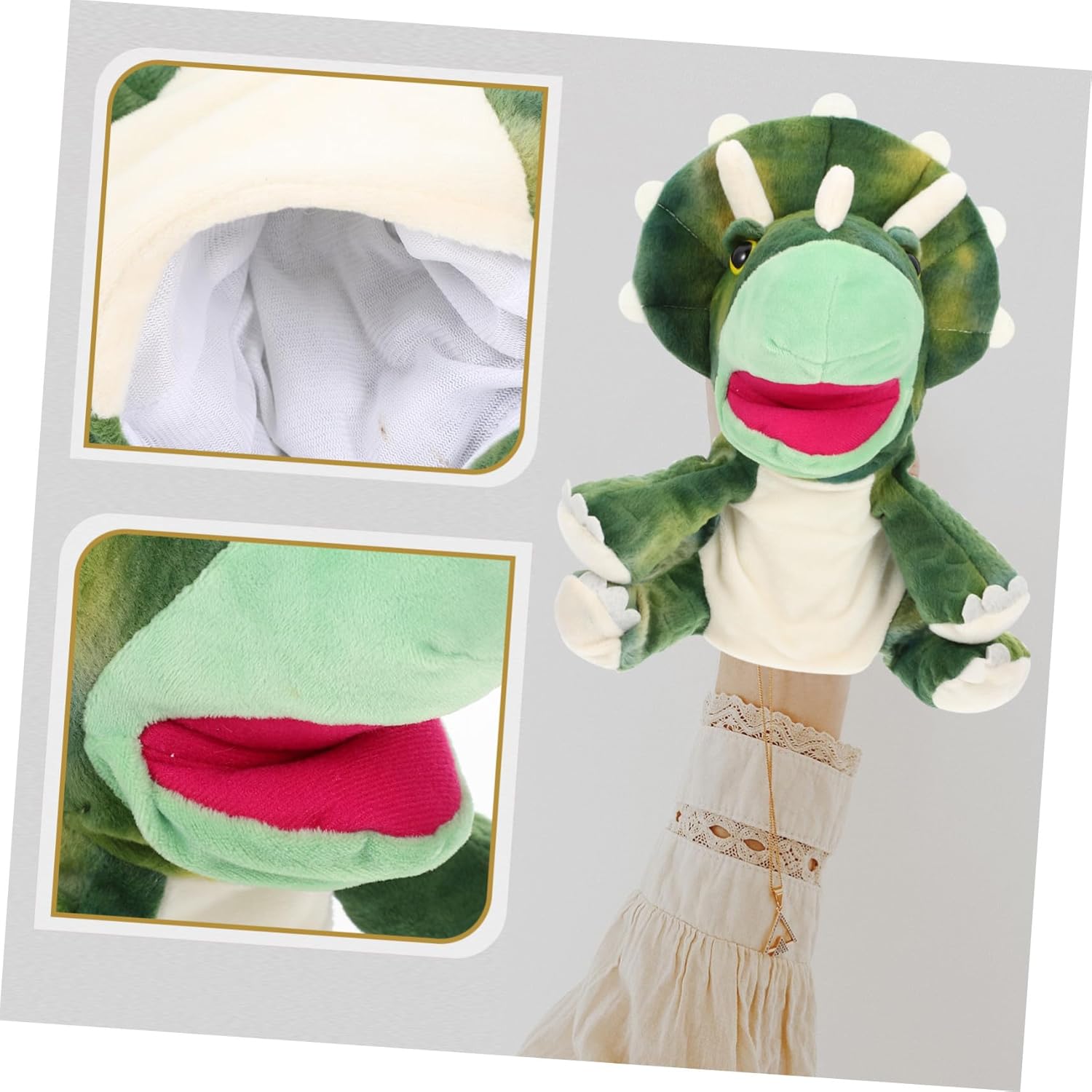 Burattino a mano per bambini - è realizzato in materiale peluche di alta qualità, ultra morbido, comodo da tenere, ha una buona consistenza ed è un divertente supporto per il gioco genitore-figlio Adorabile burattino a mano - lascia che lui e lei abbiano una bella favola della buonanotte, burattino interattivo genitore-figlio per - aiuta a sviluppare la destrezza, la creatività, il vocabolario e l'immaginazione del bambino e migliora anche la comunicazione emotiva tra lui e i genitori, adorabile burattino Dino burattino a mano - il burattino a mano è realizzato con materiali di peluche di alta qualità, è comodo e burattini per bambini durevoli burattini a mano con animali: risveglia la tua immaginazione con presentazioni divertenti e innovative, discussioni sui giochi di ruolo e burattini a mano con dinosauri