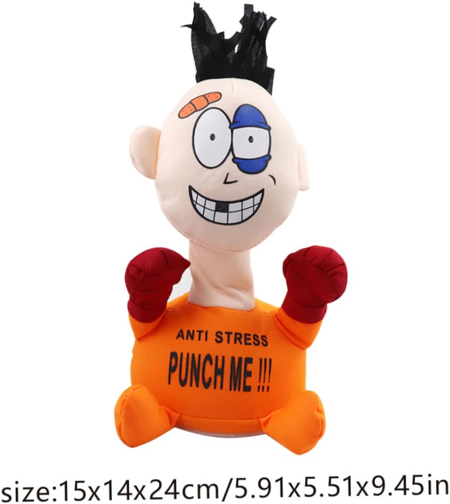 Flessibile: puoi colpire la testa del giocattolo di figura imbottita, rimbalzerà infinitamente e non cadrà mai, molto flessibile e non facile da danneggiare. Materiale morbido: le bambole Punch Me sono realizzate in PP sicuro e morbido e peluche, toccanti comodi, per molto tempo. Forma divertente: questo giocattolo di sfiato di peluche elettrico ha un aspetto molto divertente..Ha le parole che mi danno un pugno sui suoi vestiti, il che è davvero unico, e non puoi fare a meno di colpirlo..Bambola emotiva per giocattolo per sfiato di peluche elettriche Lo stress allevia: giocare con questa bambola di sfiato emotivo può rilasciare tutti i tipi di pressioni che incontri nella vita o nel lavoro e renderti più rilassato..Giocattolo bambola di figura imbottita per bambola emotiva Ambito dell'applicazione: le bambole che alleviano lo stress sono perfette adatte a tutti i tipi di persone come adulti, bambini con stress, ansia e triste..Bambole di allevamento di tocchetto per bambole figure ripieno