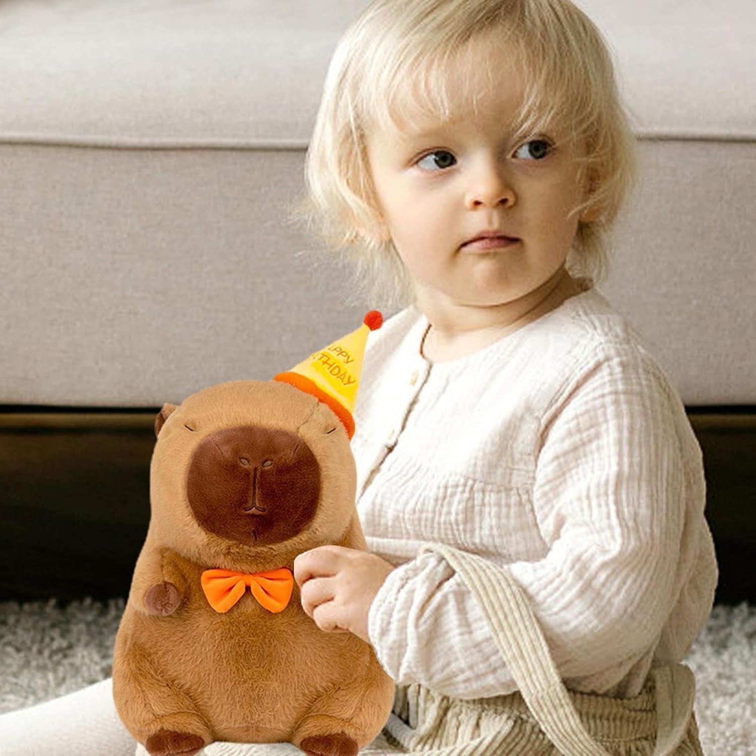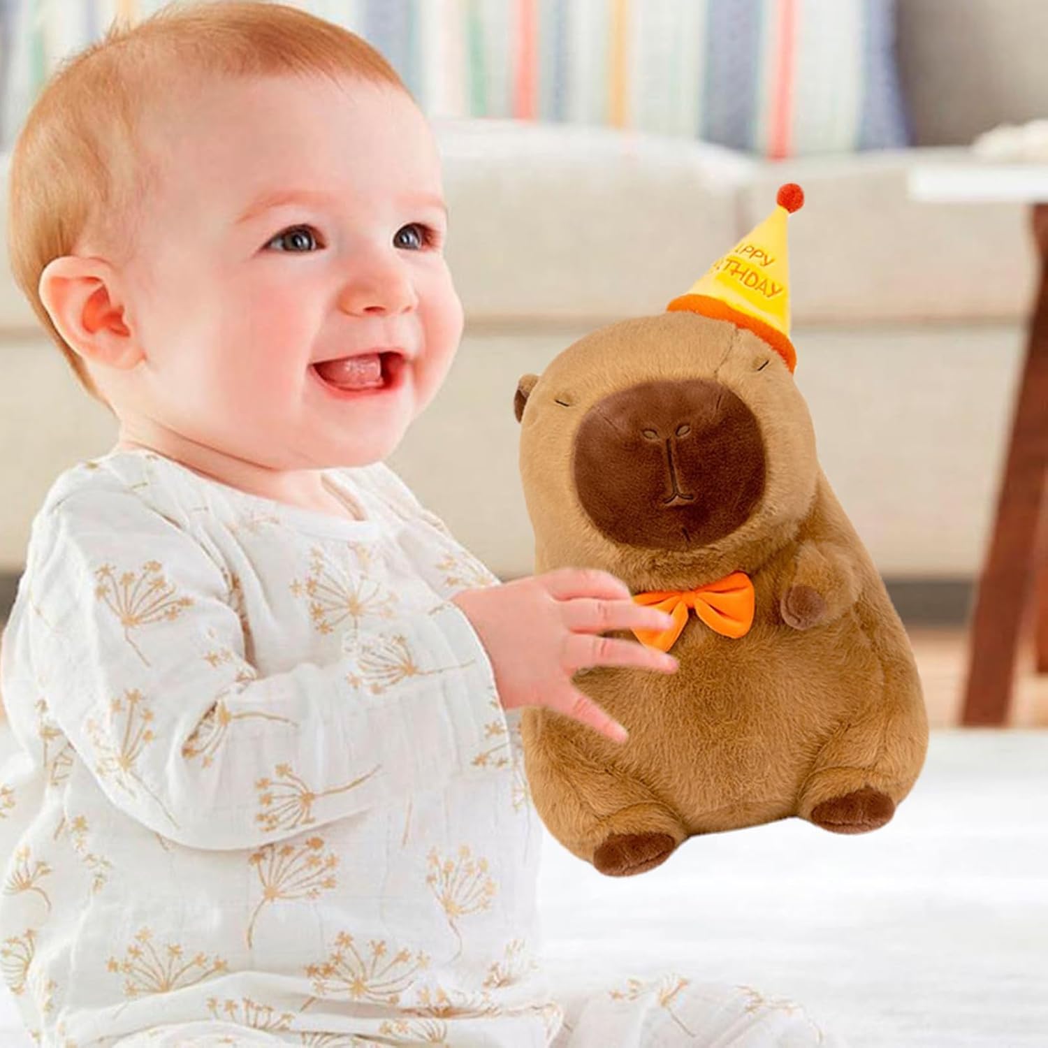 Esperienza coccolosa: il pelo corto di alta qualità combina resistenza all'abrasione e assenza di odori con un'imbottitura uniforme dell'imbottitura, garantisce un comfort affidabile grazie all'elevata elasticità del materiale. Decorazione affascinante: peluche decorativo dal look dai toni caldi per scrivania e comodino. Il cappello da compleanno aggiunge una festa giocosa a qualsiasi stanza. Perfetto per attirare l'attenzione in ufficio o in camera da letto. Percezione sensoriale delicata: il cappello di compleanno scoppiettante e il viso tranquillo che dorme aumentano il valore di gioco di questo peluche, con un corpo coccoloso che supporta la presa naturale durante le attività di gioco Durata: la costruzione con cuciture a 4 aghi e 6 fili e cuciture rinforzate resistenti al calore garantisce stabilità dimensionale. Privo di fili solubili e adatto al normale lavaggio in lavatrice. Compagno coccolone: accompagna i bambini nel sonno con dolcezza, fornisce sicurezza emotiva contro le paure e diventa un partner fidato per notti tranquille e piene di sicurezza