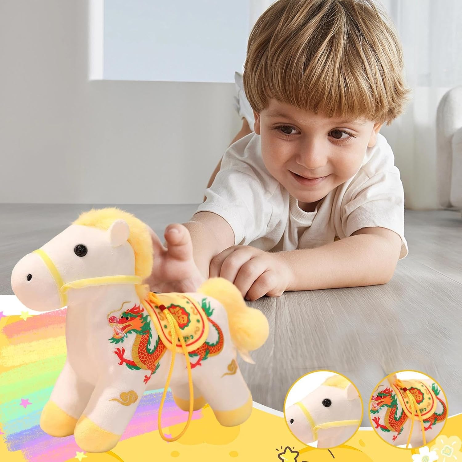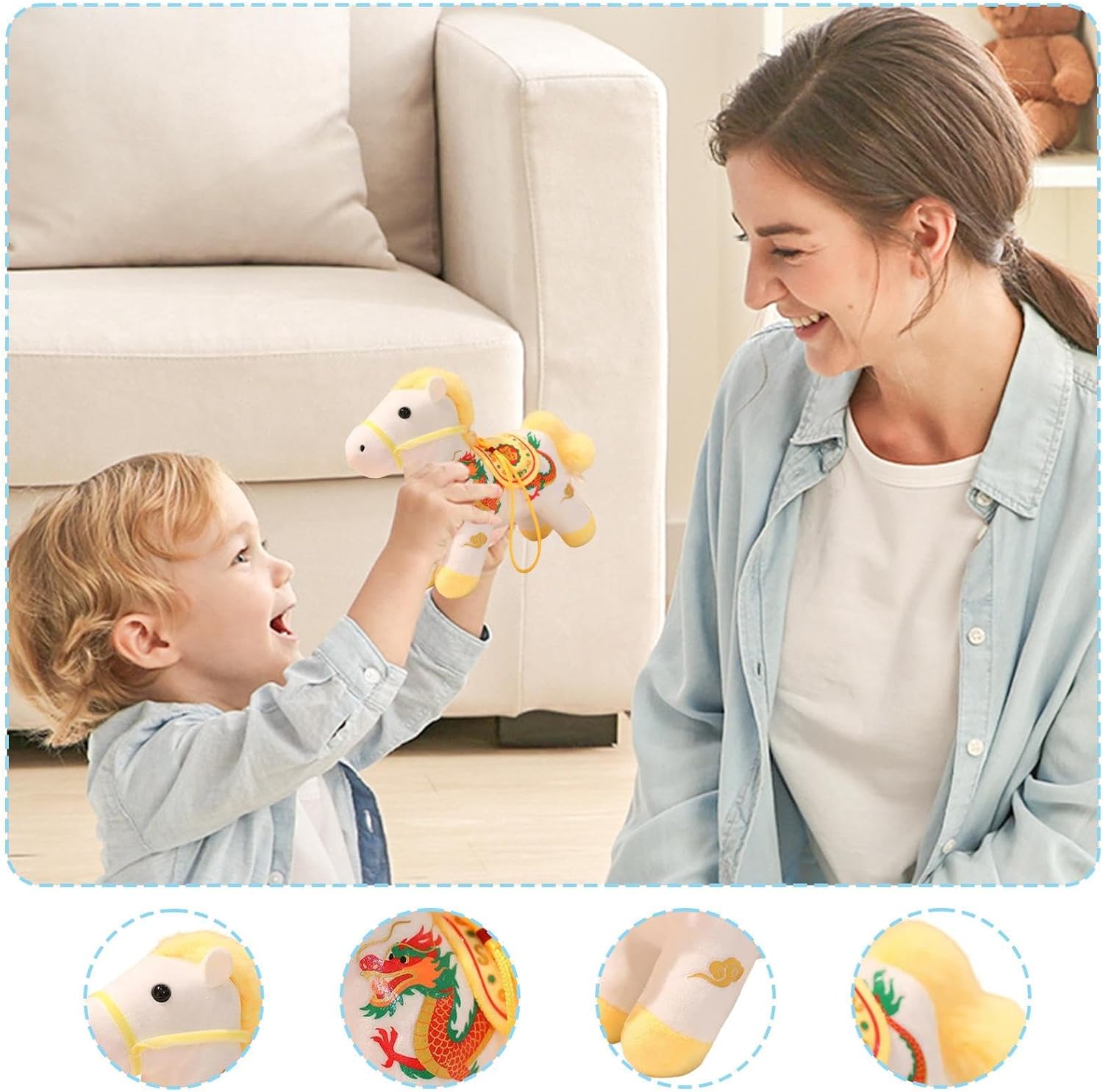 Peluche Decorative Borsa: Con il suo morbido materiale peluche, il peluche Anno del cavallo presenta una consistenza morbida per la pelle che fornisce una sensazione calpnosa e confortante, fungendo da affascinante pezzo decorativo per borsa per abbellire i tuoi accessori quotidiani. L'armoniosa fusione di morbidezza e stile lo rende un'aggiunta pratica ed estetica, perfetta per coloro che apprezzano il comfort e l'aspetto nei loro articoli di tutti i giorni. Compagno di gioco a lunga durata: il peluche cavallo incorpora giunti rinforzati e materiali resistenti alle trazioni, mantenendo la sua forma iniziale senza sforzo mentre presenta cuciture a doppio ago per una maggiore resistenza durante le manipolazioni prolungate o le occasioni di regalo, offrendo un partner affidabile e duraturo per il gioco o la collezione. Design peluche per viaggio: con le sue dimensioni mini proporzionate e la sua presenza elegante, il peluche cavallo fornisce un pezzo di accento sottile ma accattivante che si adatta armoniosamente alla maggior parte delle borse. Garantisce praticità e fascino ovunque tu vada, sia in vacanza che in viaggio d'affari. Il suo aspetto da viaggio-friendly e il formato mini lo rendono un accessorio indispensabile per illuminare i tuoi viaggi con eleganza e facilità. Design Festivo Culturale: la Peluche Cavallo Fortunato presenta una criniera decorata con un motivo e un design culturale festivo che simboleggia la buona fortuna. È ideale come regalo durante le celebrazioni dell'Anno del Cavallo, portando fortuna e ai destinatari nelle loro case o nelle riunioni. Questo prodotto decorativo unico arricchisce ogni occasione speciale con il suo tema tradizionale e il suo aspetto accogliente, perfetto per aggiungere un tocco di fortuna e Peluche leggero e portatile: progettato con un focus sul comfort, questo peluche Mascotte Cheval offre una sensazione morbida e morbida e una distribuzione del peso equilibrata, evitando qualsiasi sensazione di allenamento e permettendo una comoda manipolazione durante festival o eventi di squadra. Il design riflessivo e la struttura leggera garantiscono un utilizzo facile e confortevole in varie situazioni, con una portabilità ottimale per un uso prolungato senza fatica.