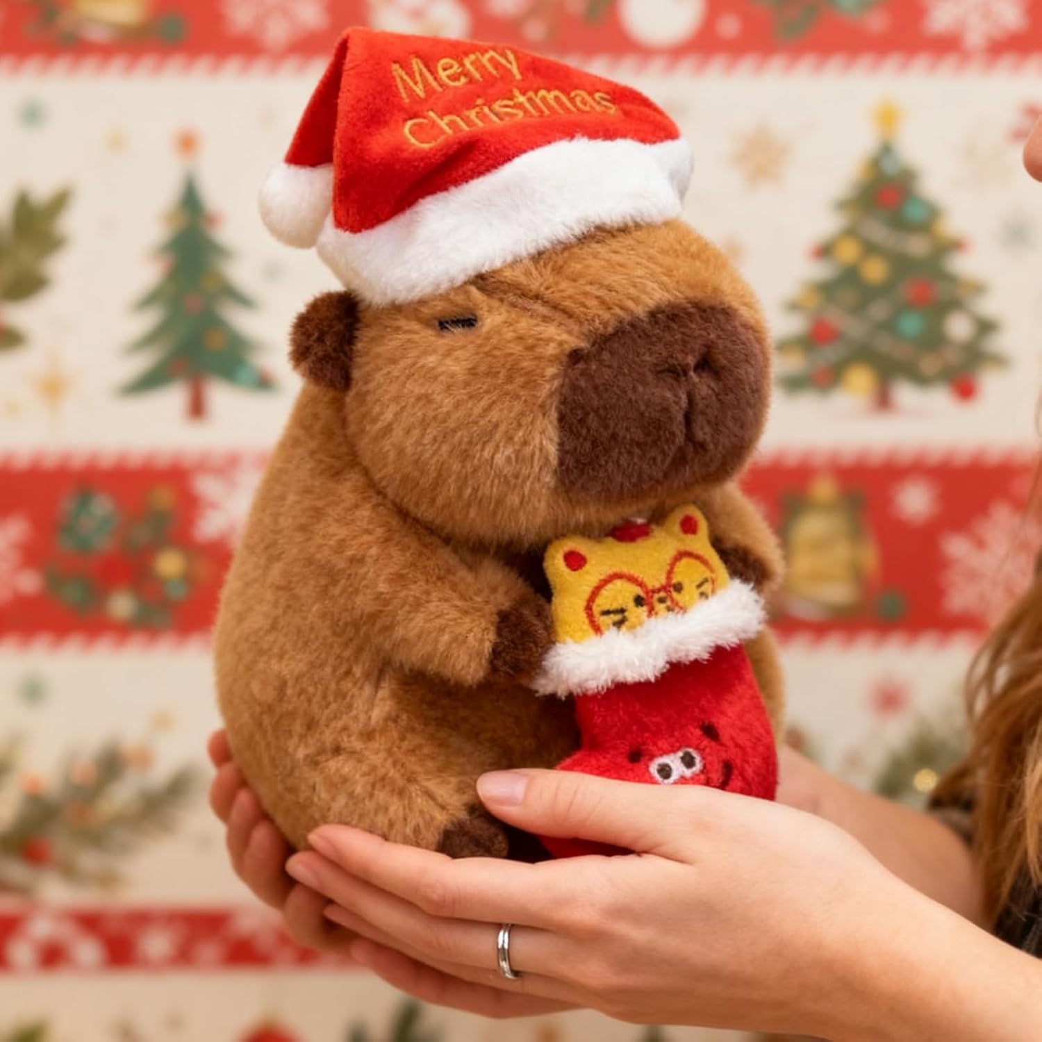 Uso Prolungato e Resistente: Il peluche capibara presenta cuciture rinforzate che garantiscono la conservazione della forma a lungo termine e la resilienza all'uso prolungato, rendendolo resistente all'usura durante il gioco quotidiano o l'esposizione, mantenendo il suo aspetto affascinante per bambini e collezionisti in vari ambienti come case o aule, con una durabilità eccellente che assicura performance durevoli nel . Morbidezza Eccezionale: Progettato con una texture in peluche morbidissima come una , il Capybara Peluche assicura il massimo comfort e agisce come un affidabile compagno di sicurezza notturna, fornendo un caldo abbraccio per calmare lo stress durante serate tranquille o riunioni familiari throughout il periodo delle festività e momenti di convivialità. Supporto Comfort Notturno: Il peluche capybara funge da peluche comfort emotivo che aiuta ad alleviare lo stress infantile fornendo un compagno calmante per uso quotidiano e supporto notturno, offrendo rassicurazione calmante durante momenti di disagio o irrequietezza, rendendolo ideale per routine della buonanotte e giochi tranquilli, con una texture soffice che incoraggia relax e sicurezza. Decorazione a Tema Festivo: Progettato con un cappello natalizio a tema capibara festivo, il Peluche Capibara l'arredamento domestico funzionando come un articolo decorativo versatile per lo spirito festivo; usalo come ornament per albero di Natale in peluche per creare atmosfere gioiose negli spazi living o per migliorare l'allegria stagionale durante occasioni speciali come feste e celebrazioni, aggiungendo un elemento di gioia ovunque. Design e Rassicurante: Il peluche capybara vanta una presenza visiva giocosa e un appeal morbido con espressione dolce, potenziando il charm della stanza mediante il suo aspetto adorabile e corpo paffuto; questo design caloroso e accattivante infonde felicità in qualsiasi spazio abitativo, ottimo per camere da letto o aree gioco comode, dona comfort e divertimento