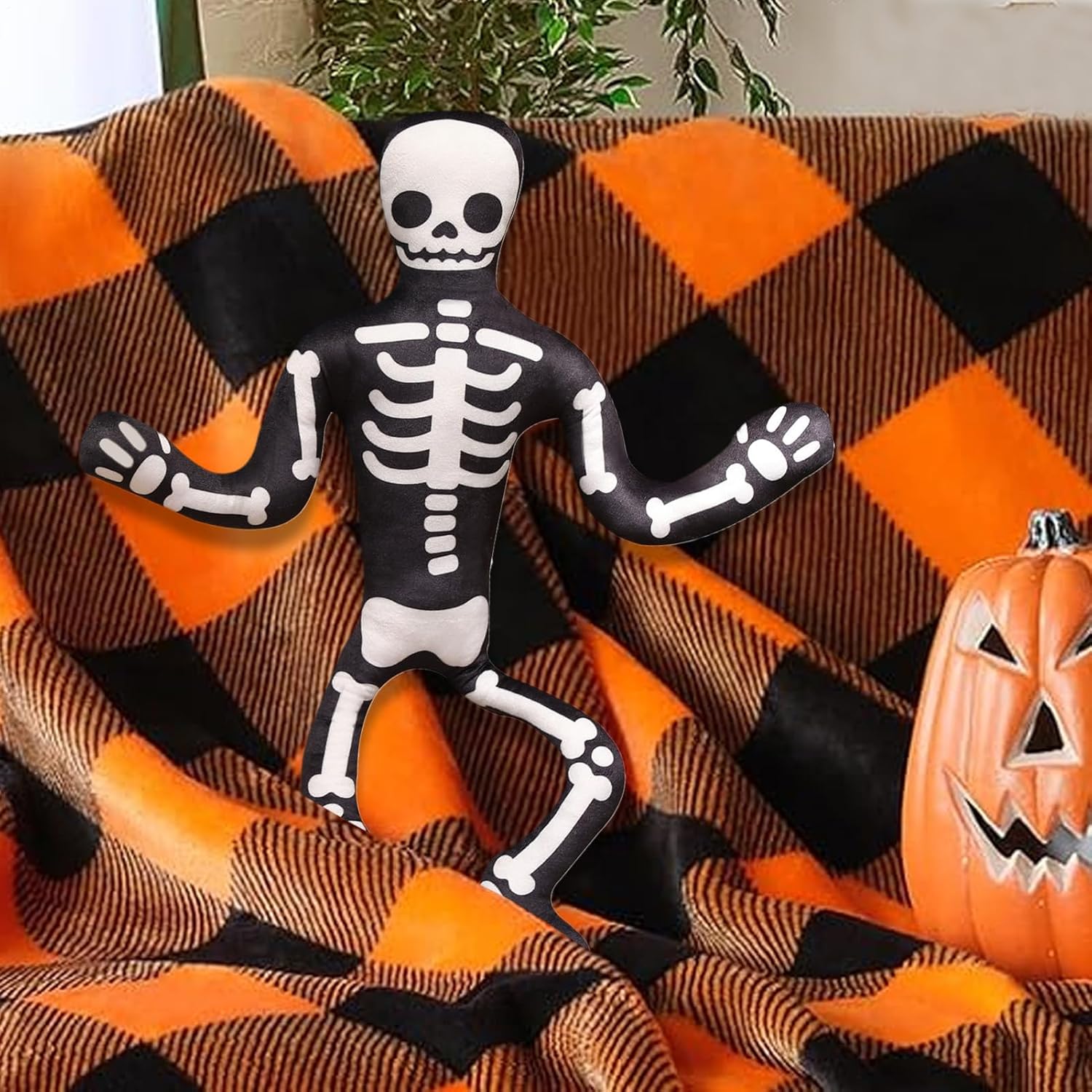Creazione di atmosfera giocosa: Progettato con occhi esagerati sorprendenti, questo scheletro di peluche di Halloween crea un'atmosfera divertente e misteriosa, perfetta come decorazione adatta per ingressi, sale giochi o eventi a tema, pur mantenendo il suo fascino. Risparmio di spazio: progettato con una struttura piatta, questo peluche squellette halloween offre una compatibilità con gli spazi ridotti per migliorare l'equilibrio decorativo; si adatta perfettamente agli scaffali o in aree ristrette, portando un'atmosfera festiva senza ingombro e riutilizzando facilmente come decorazione quotidiana Manutenzione minima: tessuto resistente alle macchie e alla polvere che consente una pulizia semplificata, questo peluche scheletro di Halloween offre una decorazione affidabile per tutta la stagione senza richiedere particolari sforzi di manutenzione Atmosfera di festa migliorata: esaltando il tuo arredamento Halloween, questo cuscino scheletro combina perfettamente funzionalità e stile, agendo come un pezzo di accento confortevole e un argomento di conversazione durante le riunioni, assicurando che gli ospiti si sentano immersi nella stagione grazie al suo design dettagliato e stravagante Rilassamento quotidiano: grazie alle sue superfici in tessuto traspirante, questo peluche decorativo di Halloween favorisce un comfort ventilato senza surriscaldamento, ideale per momenti di relax tranquillo sul divano o durante i di ozio