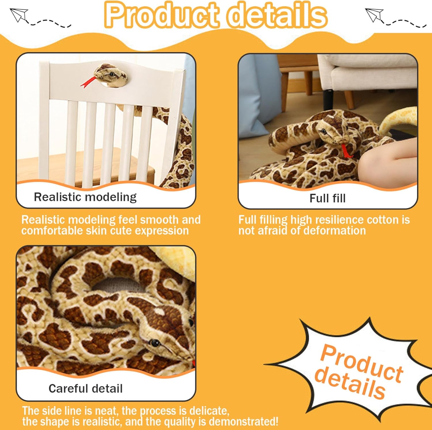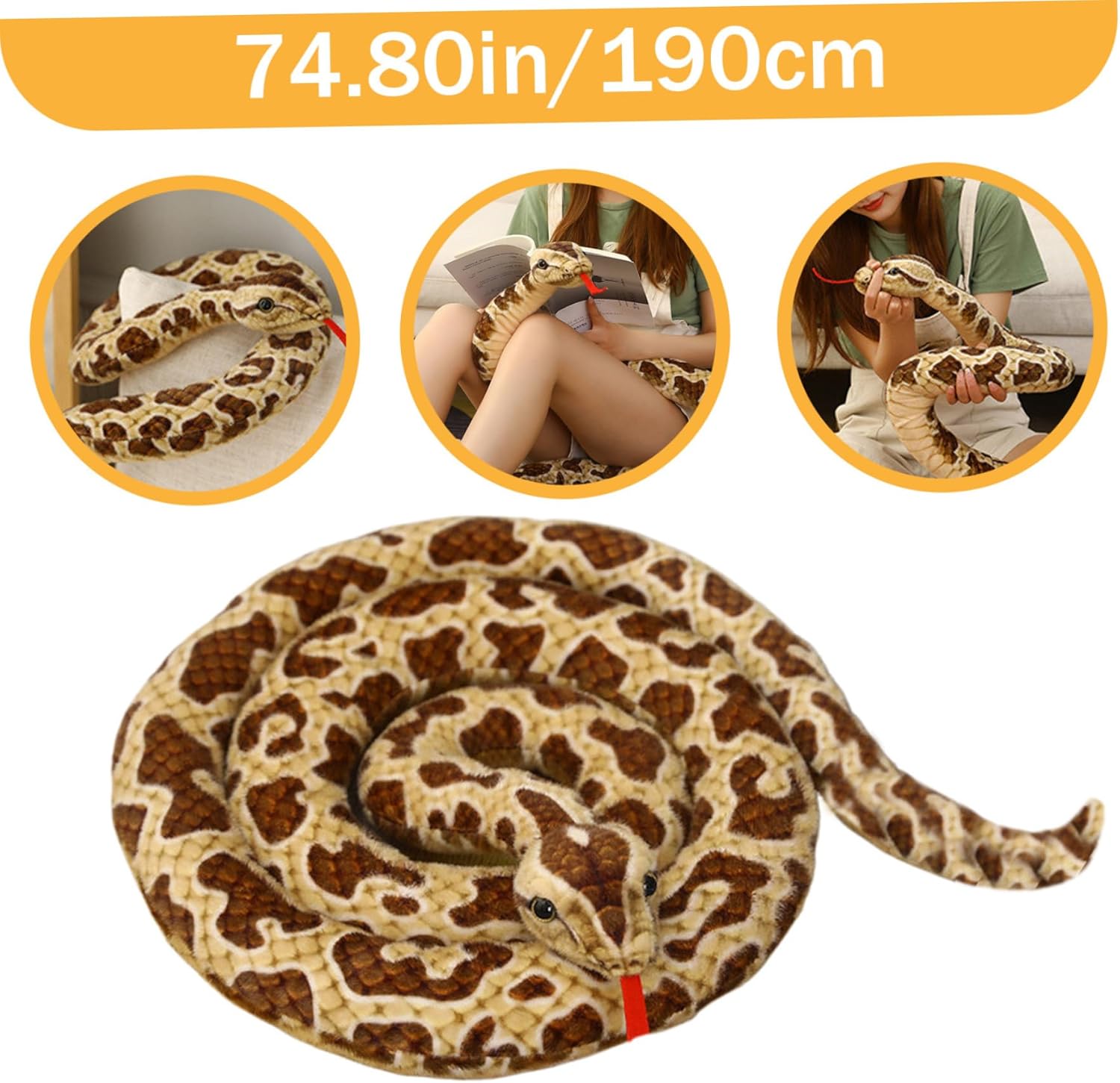 Elemento decorativo versatile: il nostro animale di pezza serpente gigante per bambini serve a vari scopi, dall'essere un delizioso giocattolo a un supporto per scherzi e fotografie..Il peluche a forma di serpente è versatile, adatto per essere posizionato su letti, finestre, alberi, automobili o qualsiasi luogo in cui desideri creare un'atmosfera sorprendente e agghiacciante. Perfetto per gli appassionati di: ideale per gli amanti dei, questo peluche serpente pitone è abbastanza da poter essere avvolto ed è straordinario..Sia il lavaggio a mano che quello in lavatrice garantiscono una facile manutenzione..Sorprendi e delizia un appassionato di con questo straordinario e tenero! Morbido e confortevole: realizzato con un tessuto morbido di qualità e generosamente riempito con cotone PP, questo morbido peluche a forma di serpente imbottito offre un tocco morbido e confortevole per abbracci e spremute infinite. Sorpresa pronta per lo scherzo: migliora il tuo primo d'aprile con il nostro giocattolo a forma di serpente!.Le caratteristiche realistiche, tra cui una testa spaventosa e occhi accattivanti, lo rendono un accessorio perfetto per scherzi creativi e per sorprendere i tuoi amici..Che tu stia cercando di realizzare un memorabile scherzo del primo di aprile o di aggiungere un tocco di avventura all'ambiente circostante, questo peluche pitone è la scelta ideale. Design realistico impressionante: questo realistico serpente di peluche presenta un design realistico che cattura l'essenza di un pitone..Il nostro animale di pezza con serpente vanta l'incredibile cifra di 74,8 pollici di dettagli realistici e realistici, che lo rendono un'aggiunta accattivante alla tua collezione.