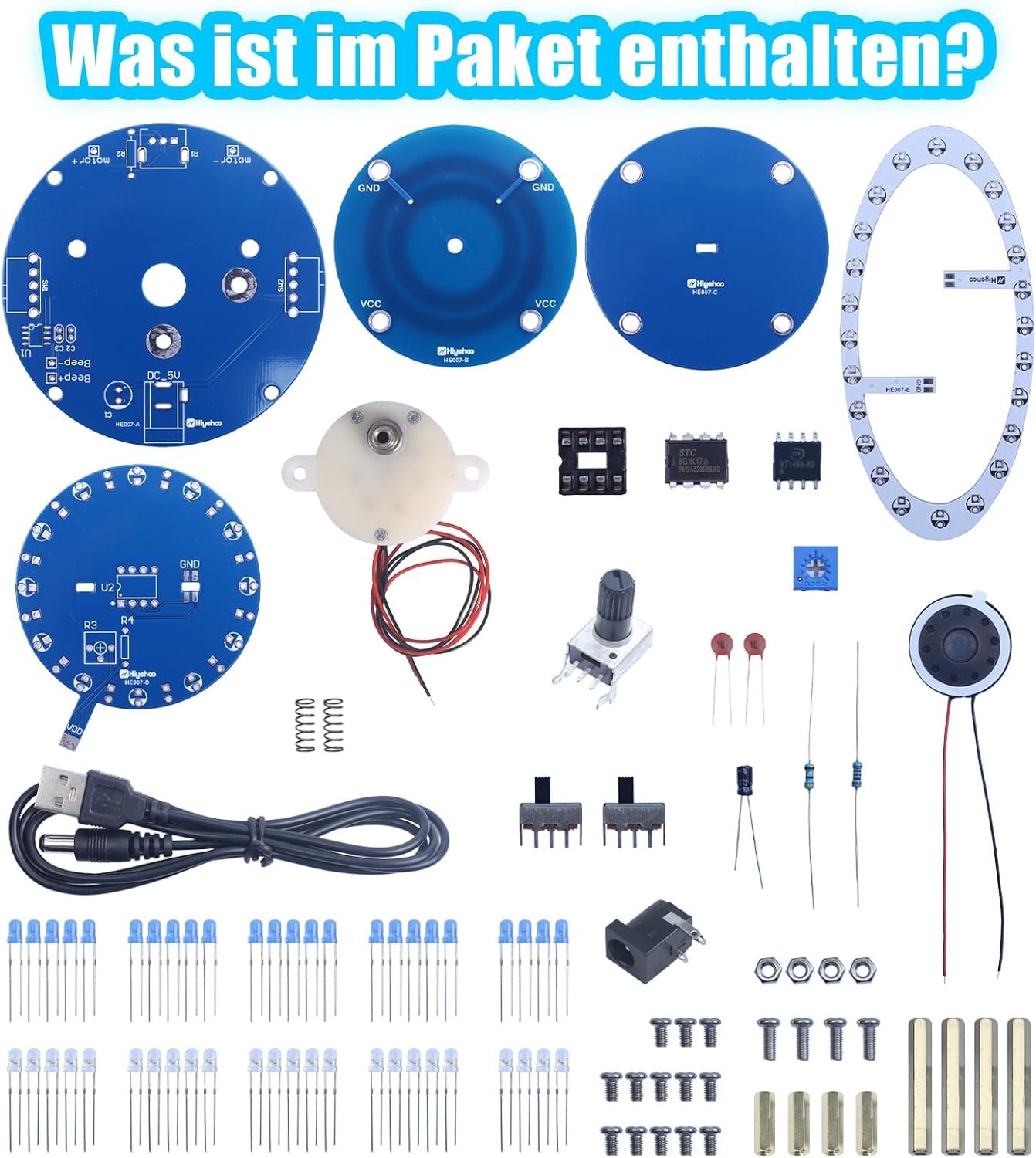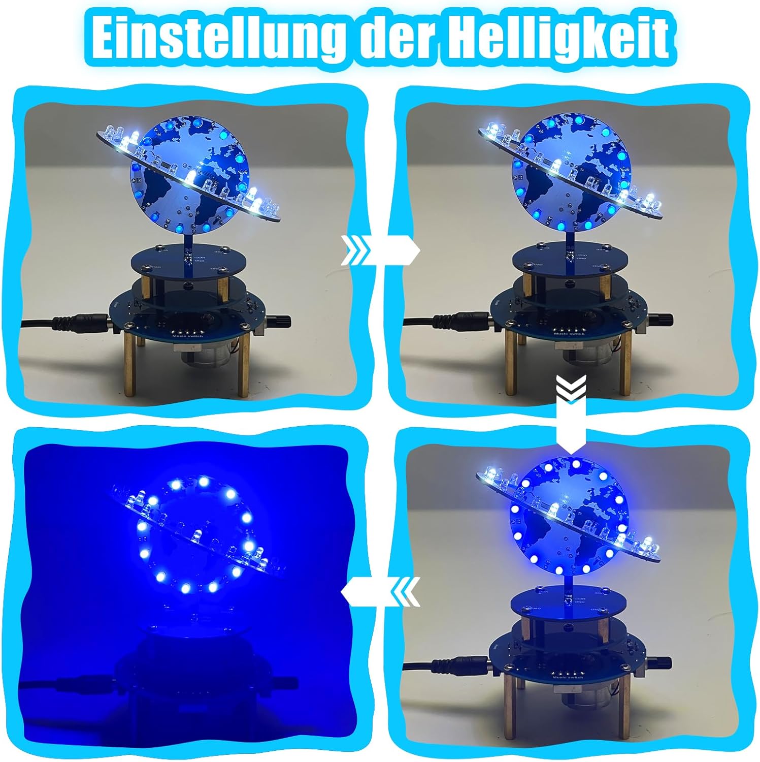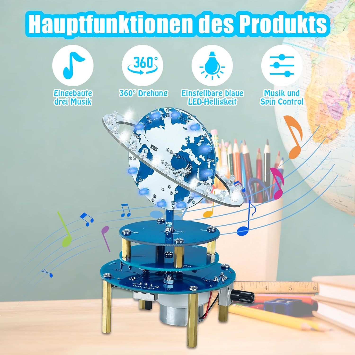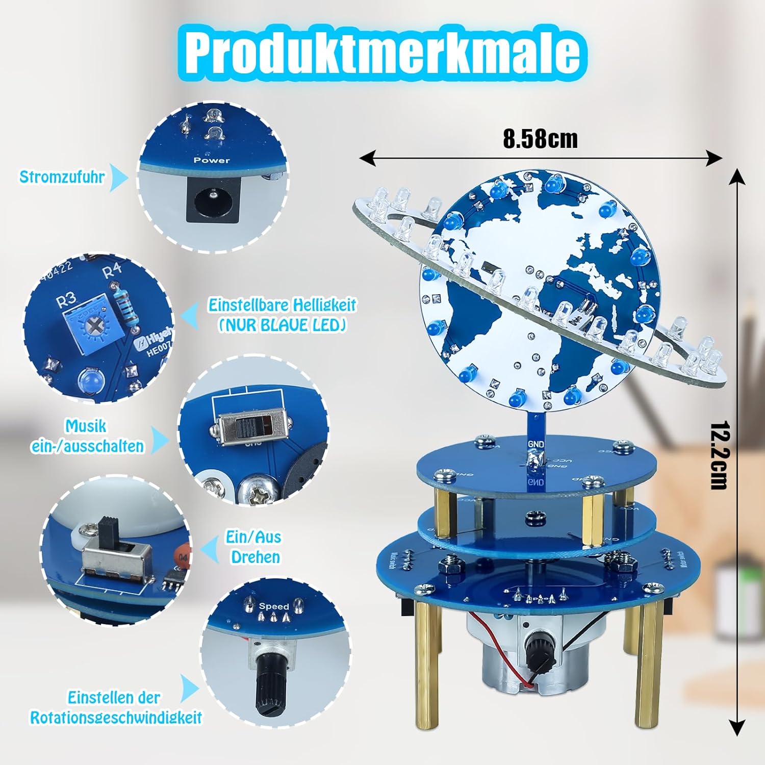 【Kit di modellazione del globo】: il kit di saldatura pratica fai-da-te ha una forma di globo unica con un aspetto accattivante e una funzione di rotazione per un'esperienza realistica. 【Effetto visivo unico】: il kit del globo ha tre tipi di musica e quattro tipi di luci, dopo aver premuto l'interruttore, il globo può ruotare con la musica e regolare la velocità di rotazione tramite il pulsante, creando bellissimi effetti sonori e luminosi nella musica e nella rotazione ritmica. 【Facile da montare】: il set di saldatura del globo LED è fondamentalmente semplice e facile da montare. La distanza tra le tavole di saldatura è sufficiente per facilitare la nostra saldatura. Il pacchetto viene fornito con istruzioni in tedesco, ci sono illustrazioni dettagliate passo dopo passo. 【Progetto educativo scolastico】: questo kit è divertente ed educativo allo stesso tempo. Una volta completata la saldatura, il globo luminoso rotante ci darà un pieno senso di realizzazione. Per i principianti, può anche aiutare a comprendere meglio la conoscenza dei componenti elettronici. 【Regalo squisito】: se vuoi fare una sorpresa ai tuoi cari, alla tua famiglia e ai tuoi amici, il kit di saldatura del globo fai-da-te è sicuramente una scelta perfetta. L'amore che investi nell'autosaldatura supera qualsiasi regalo finito: sia alle feste di compleanno che a Natale e Halloween attirerà sicuramente l'attenzione di tutti.