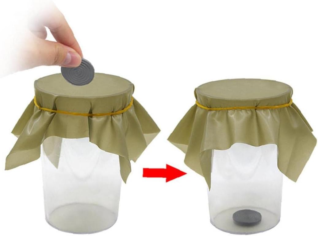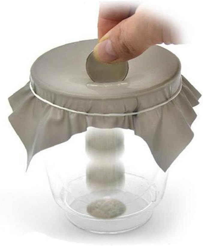 Chiedi a uno spettatore di spingere la moneta e con un colpo la moneta penetra nel foglio di gomma a destra. Tutto può essere esaminato. Fascia elastica e vetro non inclusi. È possibile utilizzare qualsiasi bicchiere di dimensioni normali. Le monete Pena penetrano attraverso la piastra di gomma, la piastra attaccata alla tazza. Istruzioni: Viene mostrata la parte superiore di un bicchiere, ricoperta da un foglio quadrato di gomma che è tenuto in posizione da un elastico. Sulla piastra di gomma un quarto un quarto. Occasione: Tipologie di Feste/Festival/Vacanze/Spettacoli/Prestazioni/Cerimonie/Proposte